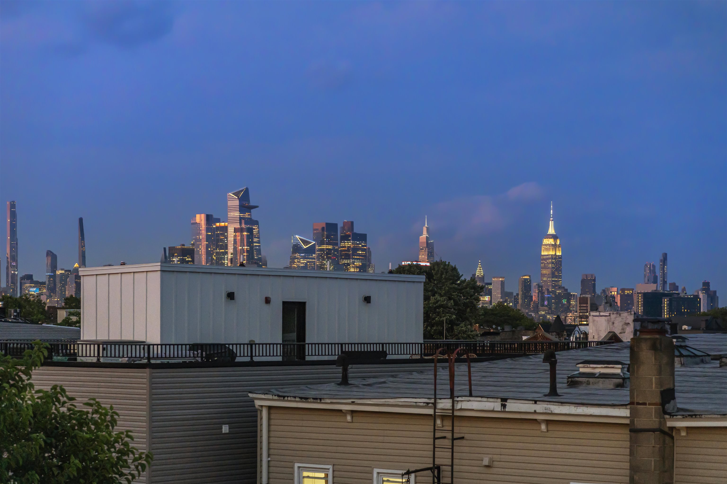 Discover sophisticated urban living in this stunning duplex at 32 Hancock in The Heights. This meticulously designed 3-bedroom, 2.5-bathroom residence offers an unparalleled blend of modern luxury and comfort. Step into a chef's dream kitchen, featuring top-of-the-line Samsung appliances, a breathtaking waterfall center island, and exquisite two-tone cabinetry adorned with elegant gold hardware. Throughout the home, you'll find a consistent theme of refined gold accents that complement the gleaming hardwood floors. The entertaining level also boasts a convenient powder bathroom with crisp white hardware and accents. The space is flooded with natural light from stylish black-framed windows, creating a bright and inviting ambiance. Enjoy seamless entertainment with built-in ceiling speakers, and experience ultimate comfort with a dual-zone HVAC system. Practical amenities abound, including an over-range pot filler for culinary convenience. The primary bedroom is a true retreat, offering a spacious walk-in closet and a luxurious ensuite bathroom. All bathrooms throughout the home feature modern lit and anti-fog mirrors, adding both style and functionality. Security and peace of mind are paramount, thanks to a Honeywell Home alarm system and a Ring video doorbell. Venture upstairs to your private rooftop oasis, where you'll be captivated by panoramic New York City views, perfect for entertaining or quiet reflection. The rooftop is further enhanced with speakers, gas, water, and electric hookups, providing everything you need for the ultimate outdoor experience. Garage parking adds an invaluable layer of convenience to city living. This is more than a home; it's a lifestyle. Don't miss the opportunity to experience the epitome of modern elegance at 32 Hancock.