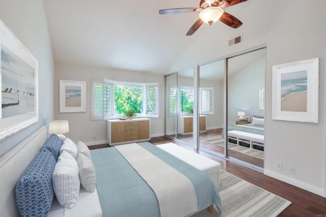 Move-In Ready - Welcome to 8037 Caminito Mallorca, a beautiful townhome nestled in the highly desirable La Jolla Village Southpointe community. This elegant residence offers 3 bedrooms, 2.5 bathrooms, and 1,467 square feet of thoughtfully updated living space designed for comfortable coastal living. Step inside to discover an abundance of natural light throughout. Tile flooring downstairs transitions to rich wood floors upstairs, creating a warm and welcoming atmosphere. Energy-efficient dual pane windows with timeless plantation shutters are featured in every room, ensuring comfort and style year-round. The attached two-car garage includes a recently installed A/C-ready furnace and convenient in-unit laundry with washer and dryer included. Upstairs, the primary and secondary bedrooms provide tranquil peek-a-boo views and refreshing ocean breezes—your private retreat at the end of the day. The third bedroom boasts a spacious walk-in closet, offering flexible space for guests, a home office, craft room, or additional storage. Relax by the cozy fireplace in the living area or prepare gourmet meals in the kitchen featuring granite countertops, recessed lighting, and quality appliances including electric stove/oven, built-in microwave, dishwasher, and refrigerator. The kitchen opens to a private patio with beautiful greenbelt views and direct access to a serene open space—no neighbors behind for enhanced privacy and tranquility. Perfect for morning coffee, outdoor dining, or simply unwinding after a busy day. Southpointe residents enjoy exceptional resort-style amenities including three sparkling community pools and spa, with the closest pool just steps from your front door. Well-maintained grounds, walking paths, and lush landscaping create a peaceful neighborhood atmosphere. The location offers unparalleled convenience for daily living and recreation. UCSD is only 1.5 miles away, making this ideal for faculty, staff, or students. World-renowned beaches are minutes away: La Jolla Shores Beach, La Jolla Cove, Black's Beach, and Torrey Pines State Beach. Golf enthusiasts will appreciate proximity to Torrey Pines Golf Course, home to PGA Tour events. The Shops at La Jolla Village and nearby Westfield UTC provide premier shopping, dining, and entertainment including AMC Theatres, restaurants, and retail. Everyday conveniences are truly at your fingertips. Grocery shopping is effortless with Trader Joe's, Ralph's, Vons, Whole Foods Market, and Sprouts Farmers Market all nearby. Costa Verde Shopping Center offers additional retail and services. Enjoy your morning routine at local favorites like Starbucks, Peet's Coffee, and The French Gourmet. CVS Pharmacy for convenient prescription services. Banking needs are easily met with Wells Fargo, Bank of America, and Chase branches in the immediate area. This turnkey townhome combines prime location, exceptional features, low-maintenance living, and the best of La Jolla's coveted coastal lifestyle. Come experience the vibrant Southpointe community and make this wonderful home your own!