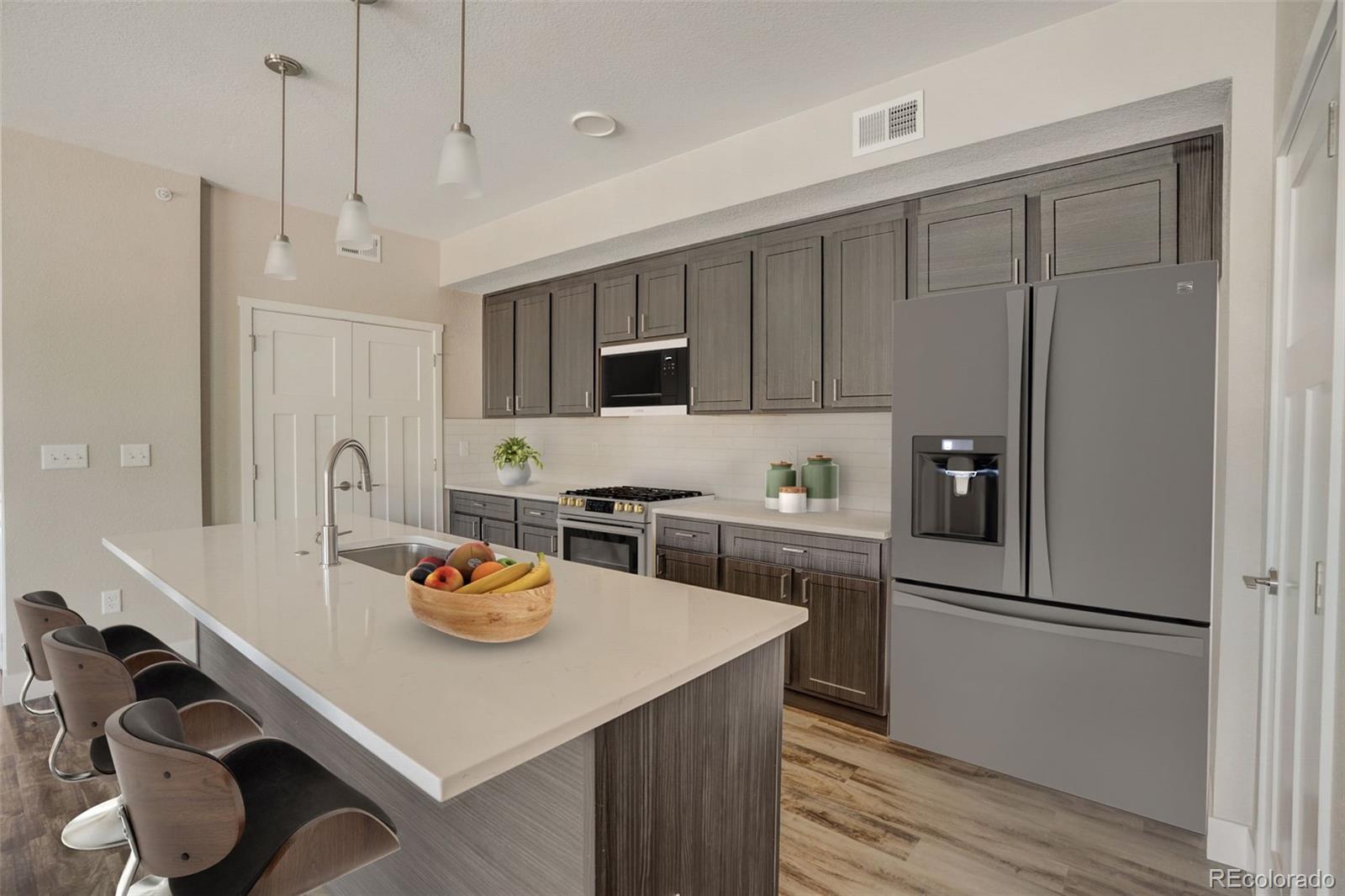 Incredible opportunity to own a brand-new condo in Lafayette, Colorado! Stainless steel appliances, modern cabinetry and 3 panel doors add beautiful finishes. Open living space with great light, some with mountain views from their balcony. Walk-in closets, Linen closets and generous kitchen pantries to store everything away. PLUS- A deeded one-car garage with loft storage area for your skis and other toys. An additional outside, deeded parking space for each unit. Continuous (tankless) hot water heater AND a stackable washer and dryer included. HOA fee includes energy and water bills. The complex offers amenities such as a dog park, bocce ball area, bike storage, and BBQ areas. The next two buildings to be completed will be three floors, with an elevator. The proximity to downtown Lafayette, downtown Louisville, and Boulder allows for easy access to a variety of entertainment, dining, outdoor and shopping options. FIRST 6 MONTHS OF HOA FREE!