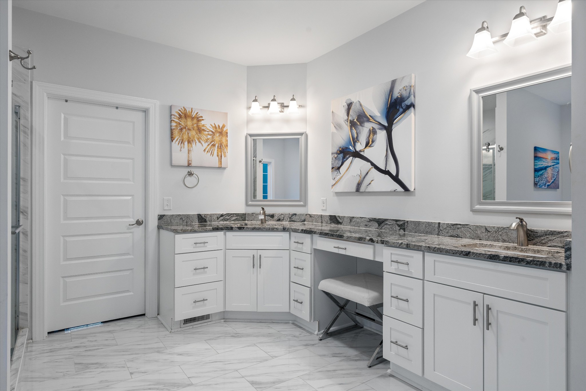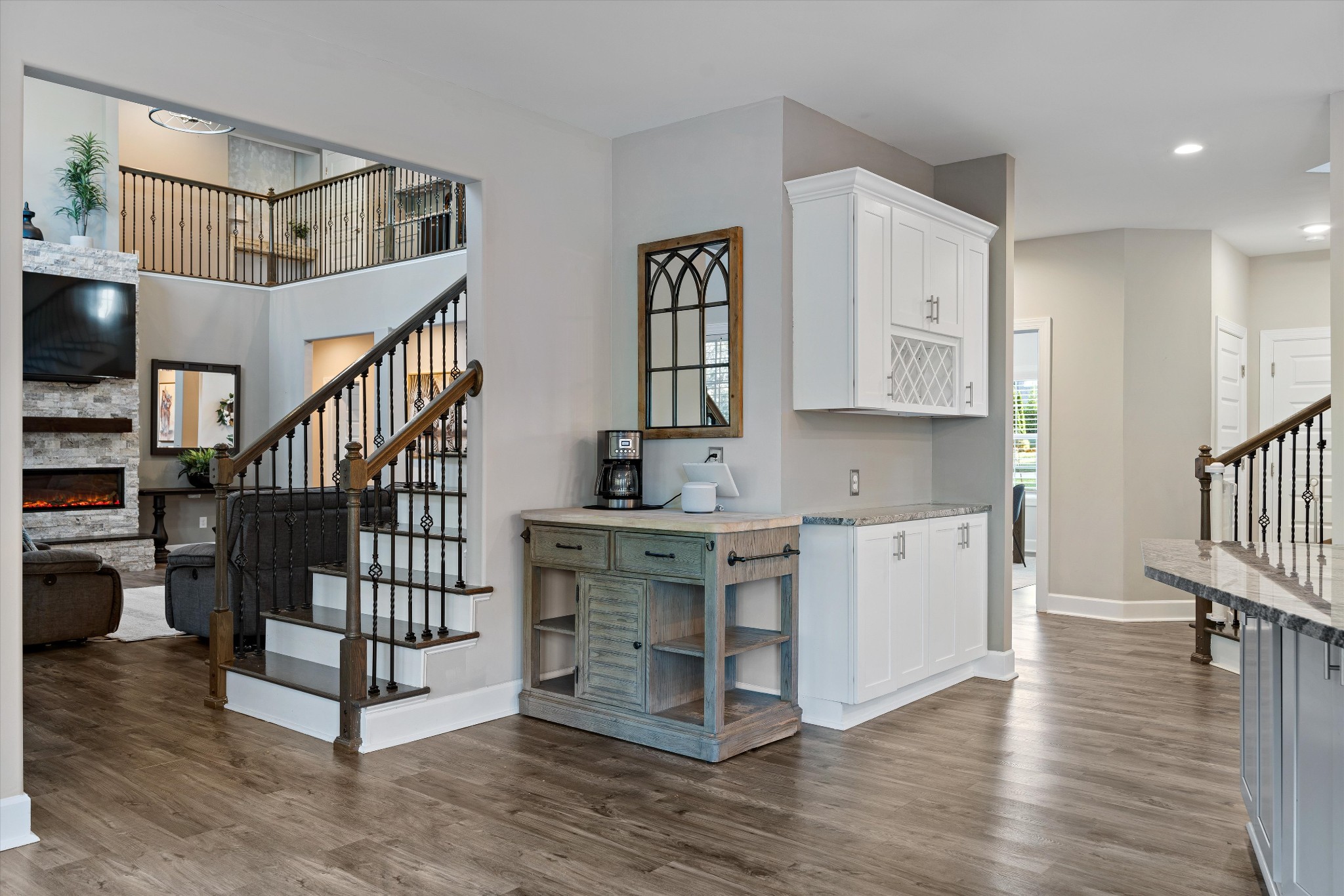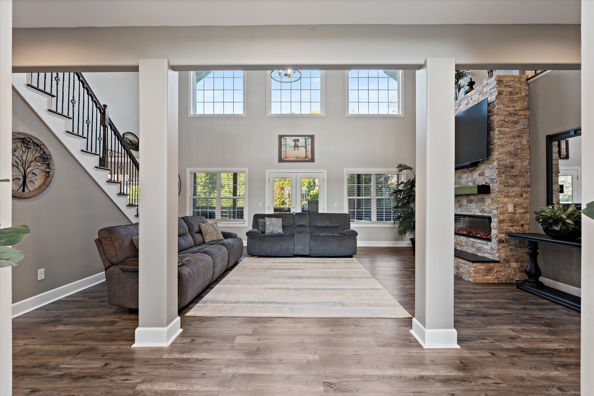 Located in the prestigious Five Oaks Golf & Country Club community, this 5,900 sq ft home sits on a quiet half-acre cul-de-sac lot offering exceptional privacy. This flexible floor plan includes 5 bedrooms and 4.5 baths, with a primary suite on each level — an ideal layout for multigenerational living or evolving household needs. Upon entry, a formal office and formal dining room create a welcoming and refined first impression. Bay windows fill the main living areas with natural light, creating bright, open spaces that flow well for both everyday living and entertaining. The fully finished basement functions as a true apartment-style living space or in-law suite, offering private quarters complete with a bedroom and full bath, living room, full kitchen, dining area, and laundry. This setup is ideal for extended family, long-term guests, or anyone needing independent living space while remaining connected to the main home. Two wraparound decks overlook mature trees, wildlife, and private green space, enhancing the home’s peaceful and secluded setting. Residents of Five Oaks enjoy resort-style amenities including golf, tennis, swimming, dining, and walking trails, along with a strong sense of community — all conveniently located near shopping, schools, medical facilities, and local restaurants.