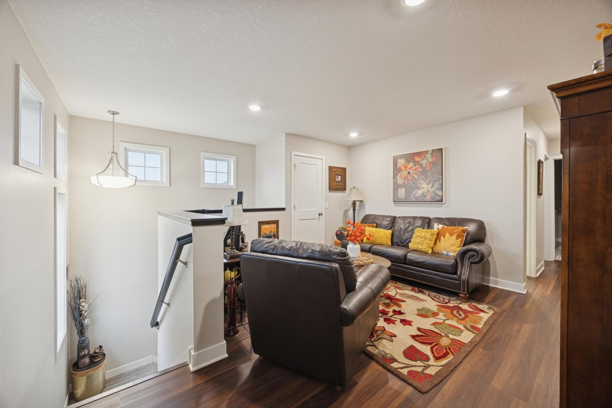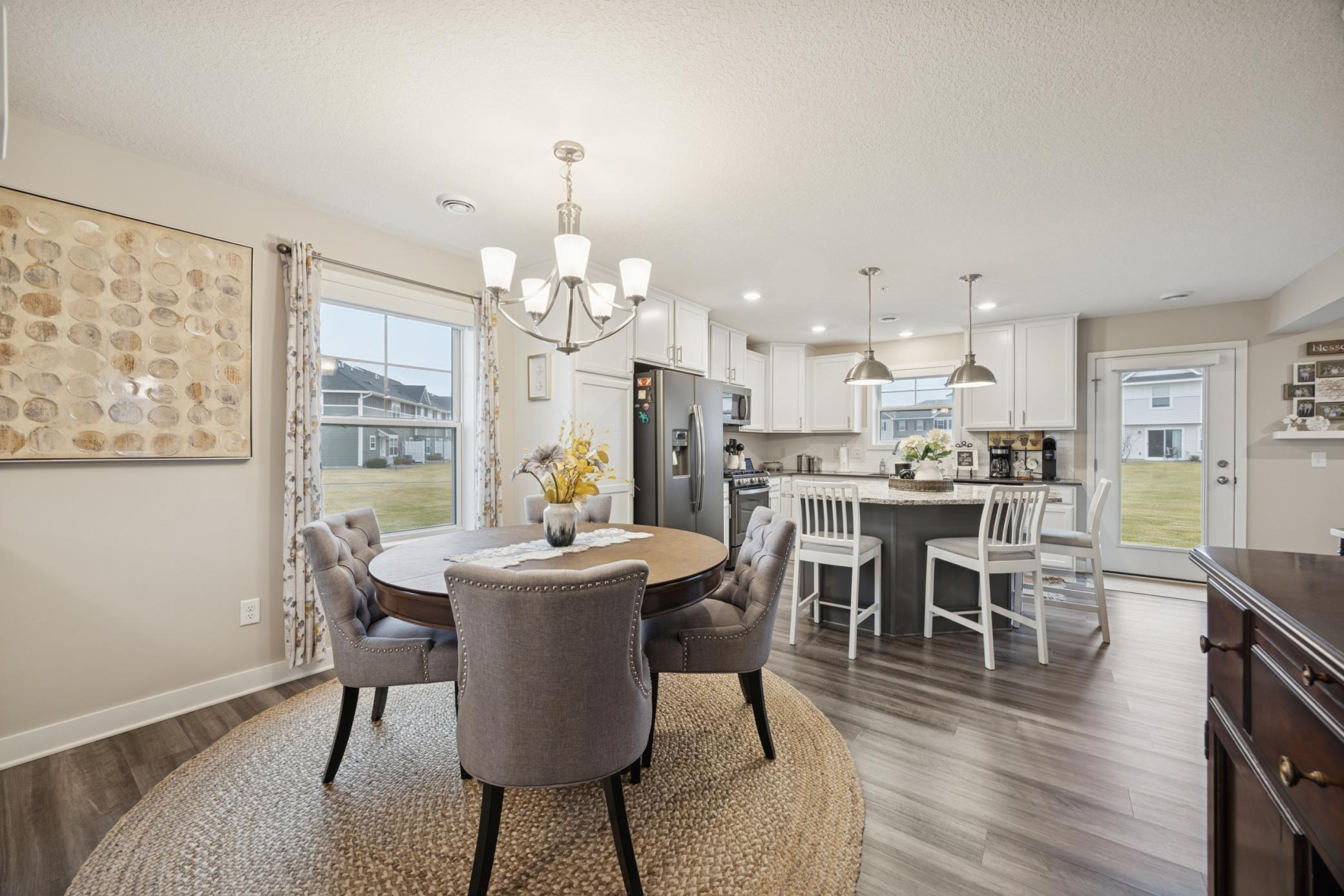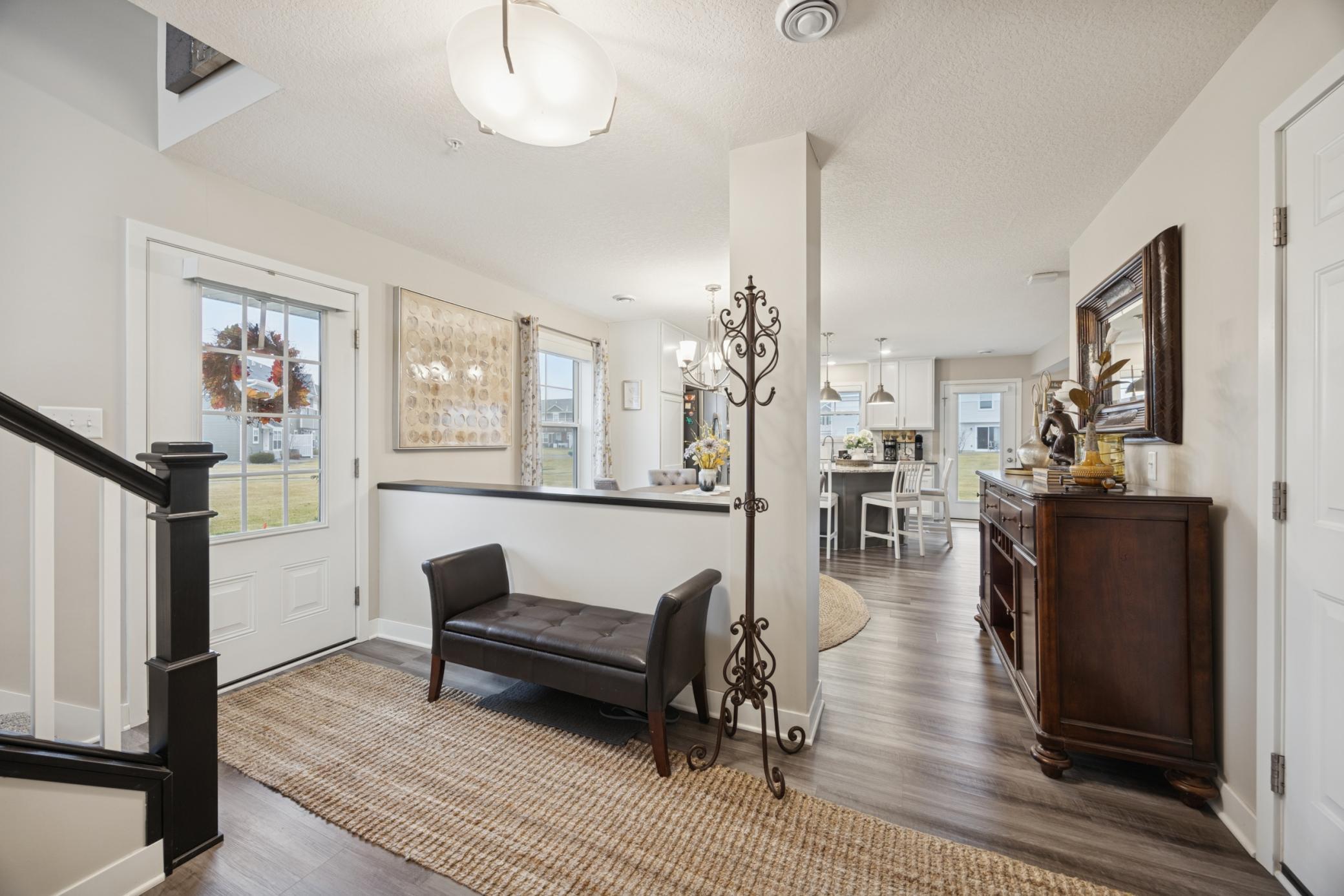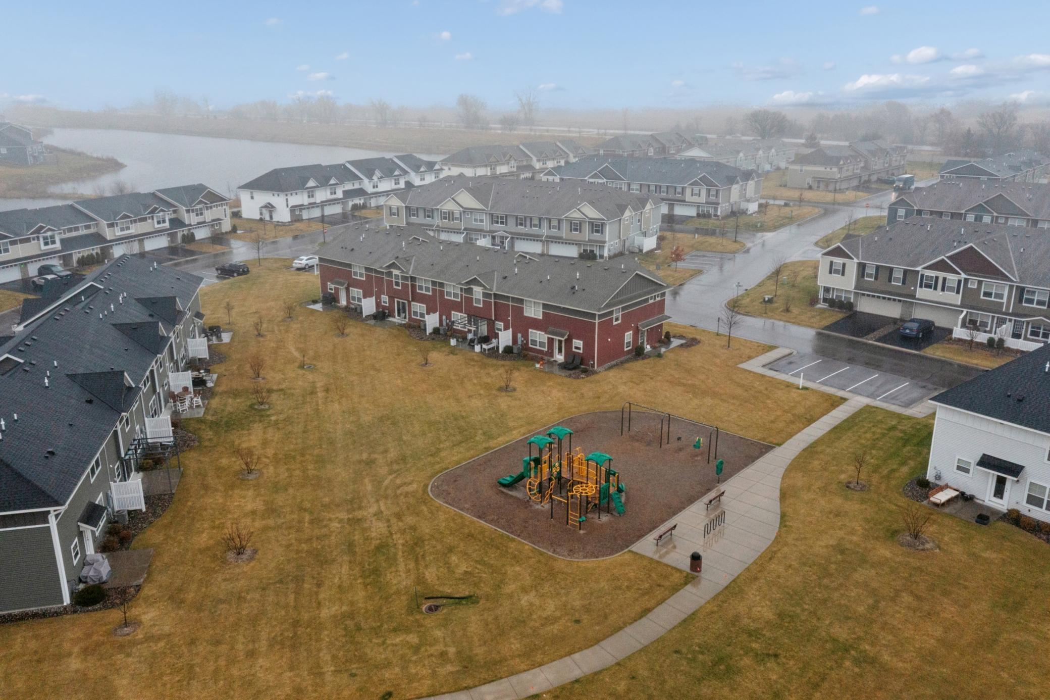 Beautifully maintained end-unit townhome located in the sought after Watermark neighborhood in Lino Lakes! The main level features a cozy living room with a stunning stone-accented corner fireplace. Enjoy a bright dining area and an updated kitchen with a sunrise-facing window, ample cabinet space, stainless steel appliances, a modern island with granite countertops, and stylish lighting throughout. Step out to the east-facing patio and enjoy a spacious, private-feeling yard thanks to the generous distance between neighboring townhomes. Upstairs, a versatile loft provides space for an office or additional living area, and the large primary suite includes a ceiling fan, custom closet organizer, and private ¾ bath! Fresh Sherwin Williams paint throughout! Updated dark vinyl plank flooring! Enjoy overhead storage space in the garage! Located close to Centerville Lake, shopping, dining, and quick access to 35E, this home also includes Watermark’s impressive amenities - two playgrounds, pickleball courts, basketball court, a fully equipped fitness center, a rentable clubhouse with fireplace and meeting rooms, and miles of scenic walkways surrounding a pond with its own dock!