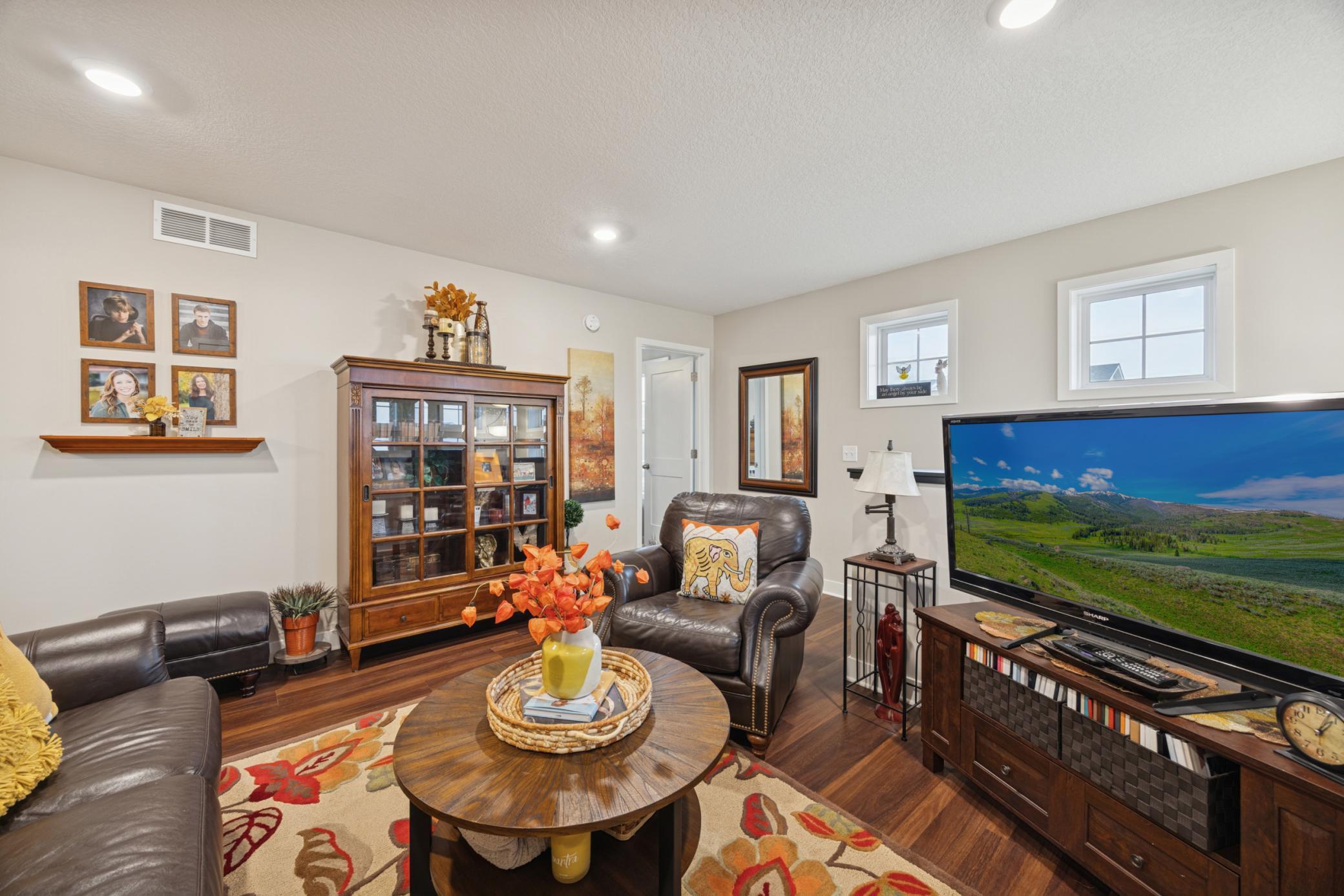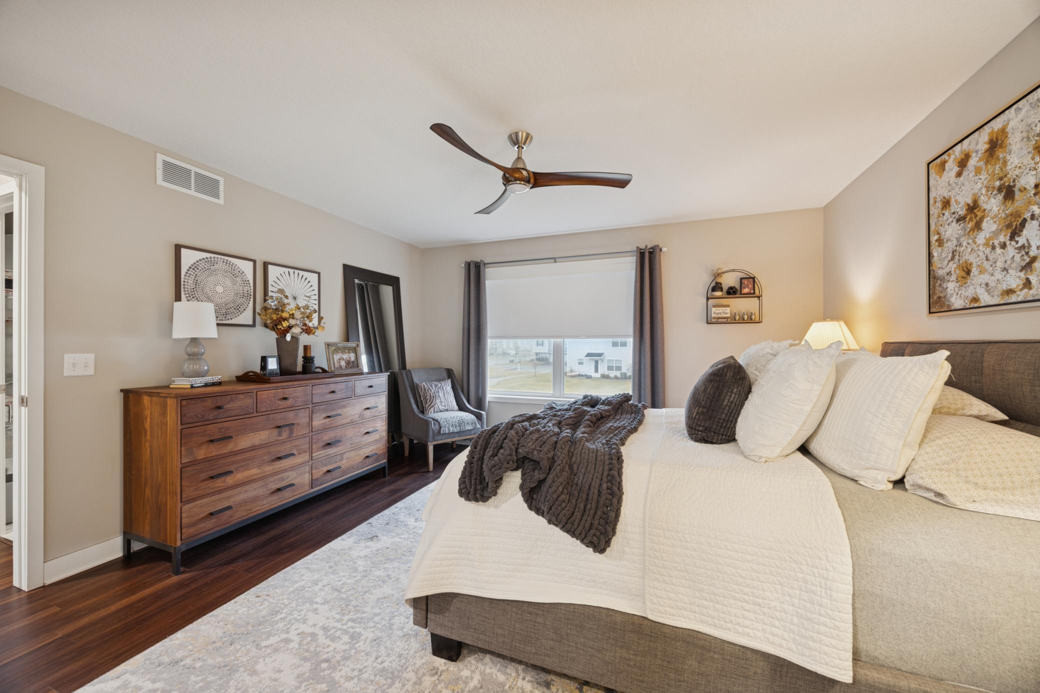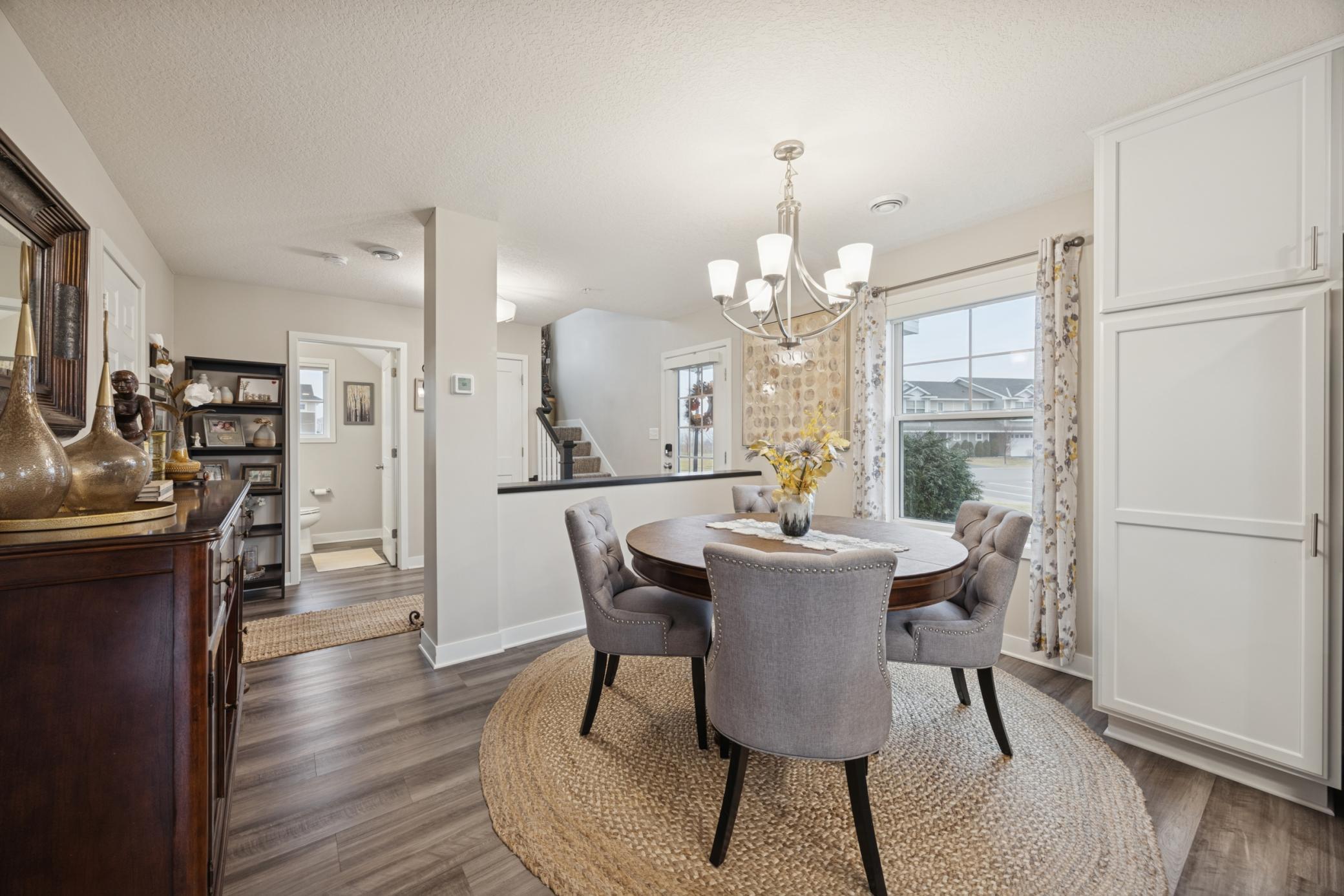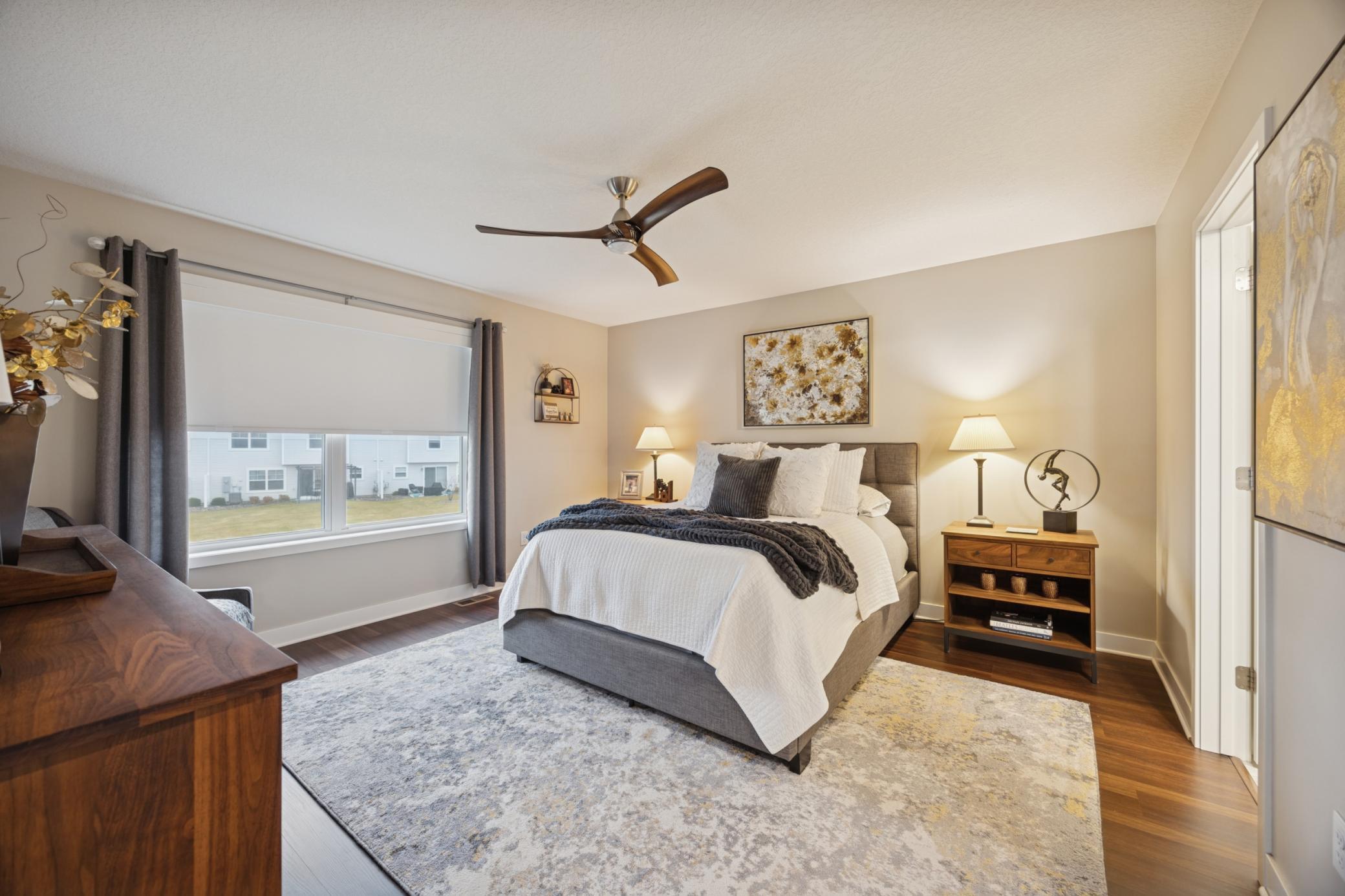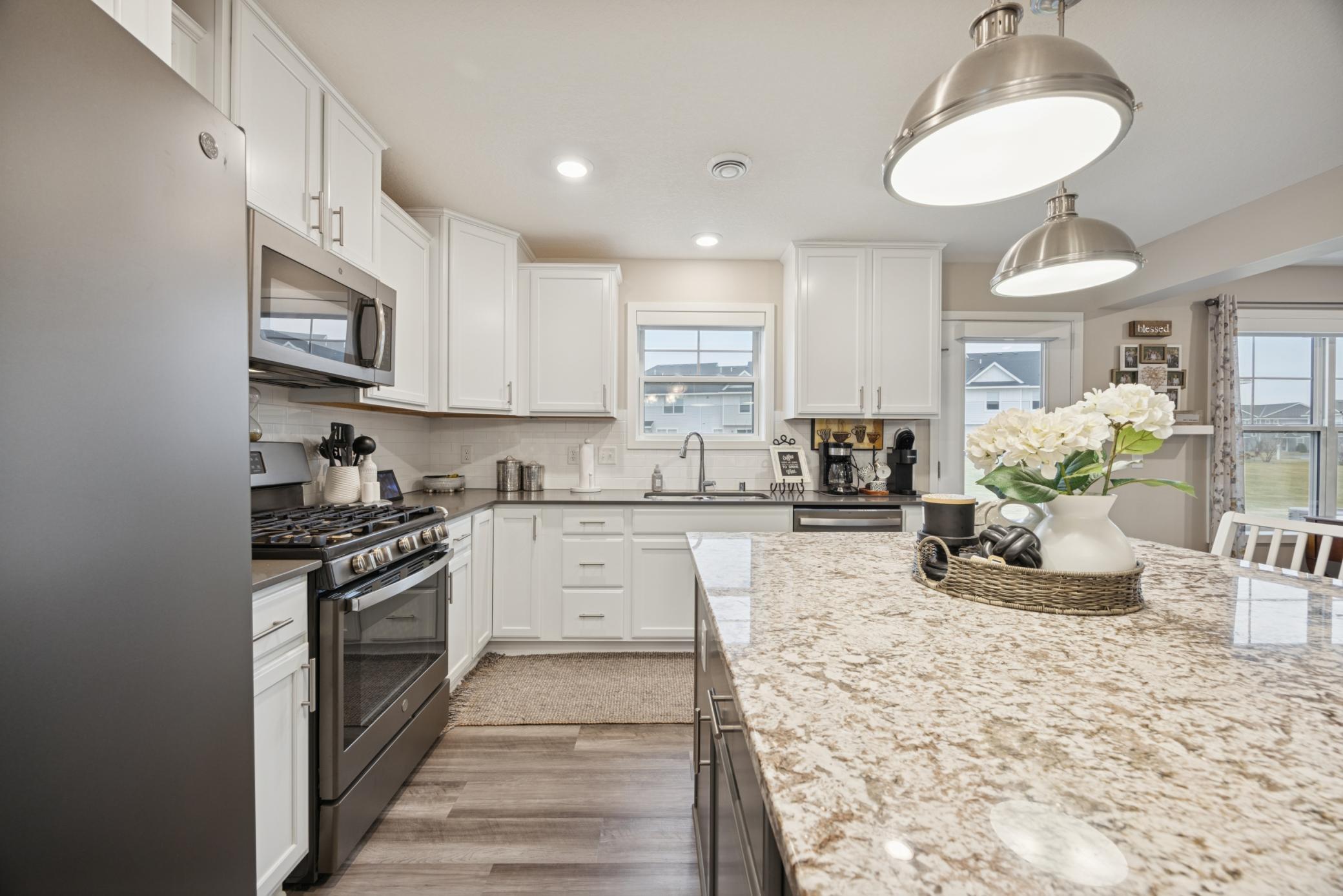 Beautifully maintained end-unit townhome located in the sought after Watermark neighborhood in Lino Lakes! The main level features a cozy living room with a stunning stone-accented corner fireplace. Enjoy a bright dining area and an updated kitchen with a sunrise-facing window, ample cabinet space, stainless steel appliances, a modern island with granite countertops, and stylish lighting throughout. Step out to the east-facing patio and enjoy a spacious, private-feeling yard thanks to the generous distance between neighboring townhomes. Upstairs, a versatile loft provides space for an office or additional living area, and the large primary suite includes a ceiling fan, custom closet organizer, and private ¾ bath! Fresh Sherwin Williams paint throughout! Updated dark vinyl plank flooring! Enjoy overhead storage space in the garage! Located close to Centerville Lake, shopping, dining, and quick access to 35E, this home also includes Watermark’s impressive amenities - two playgrounds, pickleball courts, basketball court, a fully equipped fitness center, a rentable clubhouse with fireplace and meeting rooms, and miles of scenic walkways surrounding a pond with its own dock!
