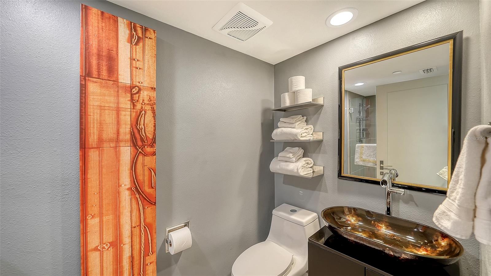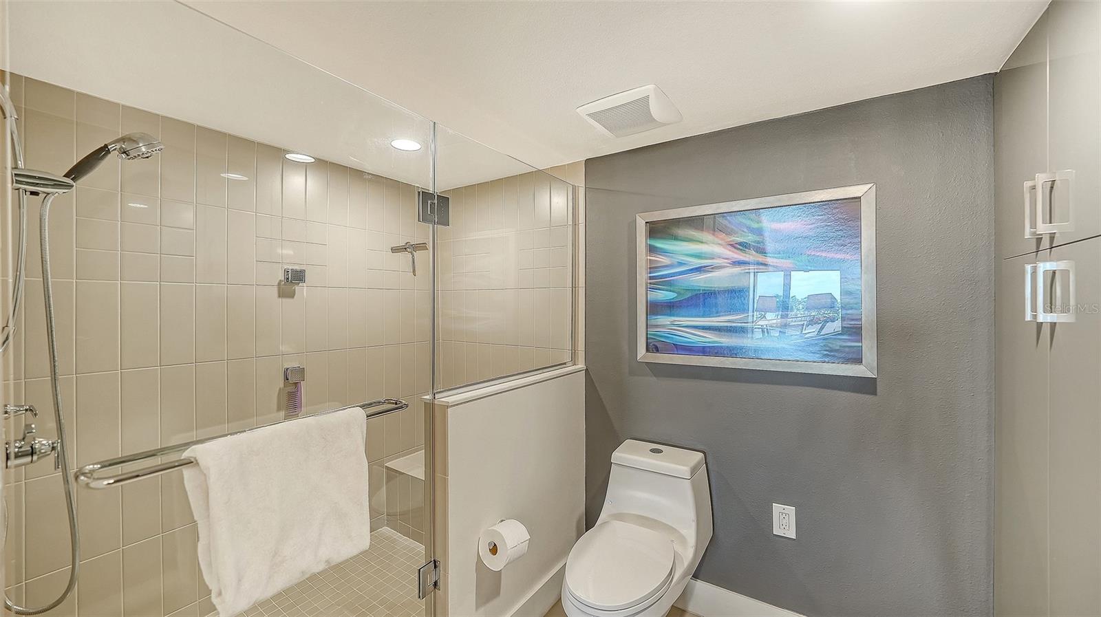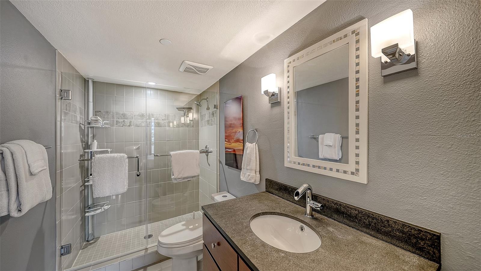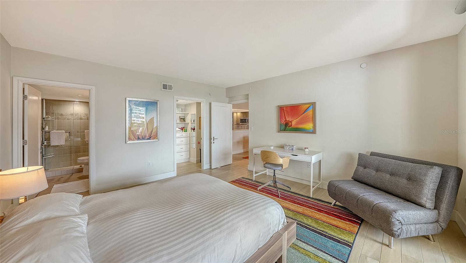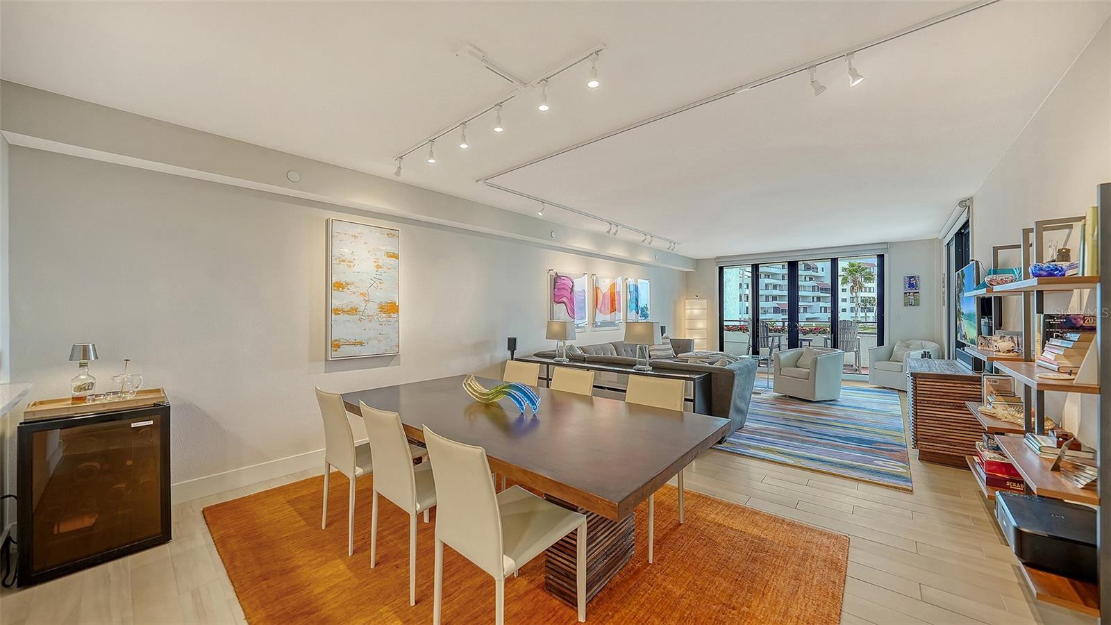The great room layout with two master suites, each providing water views and private access to the extended terrace. Impact-resistant windows and sliding doors have been installed to comply with the latest building codes. For convenience, the unit includes both an assigned under-building parking space and an enclosed garage, accompanied by an external storage room.