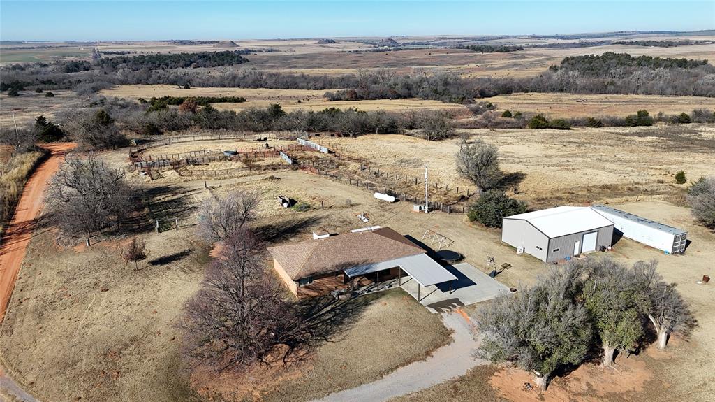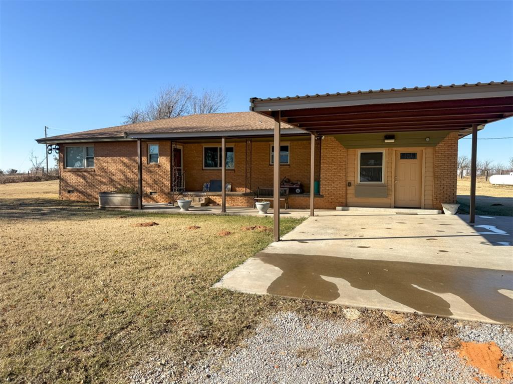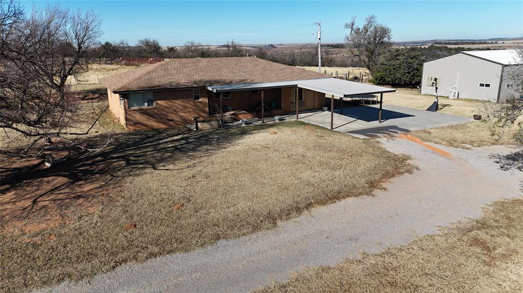 Nestled on County Road 1110 in the Lookeba-Sickles area, this single-family residence offers a unique opportunity to own a piece of the American dream. Built in 1962, this brick home holds the promise of comfortable living. With two bathrooms and three bedrooms (one being a converted garage), mornings can be calm and unhurried, while evenings offer peaceful retreats for everyone with masterful sunsets to enjoy. The property features a metal roof carport that's connected to the covered porch providing cover from inclement weather. Consider the potential for a workshop, a hobby area, or simply a place to keep your belongings organized and protected. The shop is 30' x 40' is equipped with an additional 12' x 30' finished office that could easily be converted into an apartment, considering the bathroom, sink and mini split! Also, this 10 acre property has what I consider some convenient traits. Theres a retired insulated semi trailer that has a a window installed and serves as great additional storage. Next the property has a whole home generator, propane tank, storm shelter and plenty of area to house livestock, chickens or build additional structures.
