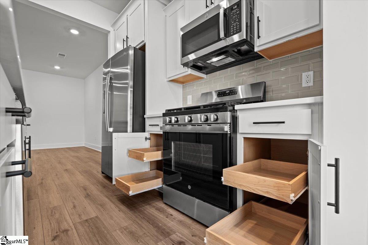 Make your move today! Place just a $1 deposit to reserve your home! Welcome to Aspen Ridge, the only luxury townhomes minutes from Downtown Greer. SIMPLIFY YOUR MOVE! All homes feature the move-in package boasting a refrigerator, washer, dryer, dishwasher, microwave, in-sink disposal and white faux wood blinds. This craftsman style Litchfield home with 1600 square feet of living space is ready for you to make your own. Once you enter from your covered front porch you will appreciate the spacious foyer which is perfect for greeting your guests. Continue down the hall and you will enter the open kitchen and living space, great for entertaining. The kitchen features beautiful white cabinetry, a 9 foot island with white Quartz countertops, tiled backsplash, and stainless steel gas appliances including a refrigerator! Off of the breakfast area you have a patio with a storage closet that overlooks your more private yard area. The staircase off of the family room takes you up to the second level with the large Primary Suite that features an expansive walk-in closet and bathroom with a dual vanity and 5 foot shower with glass doors. Two additional bedrooms, full bathroom, and laundry with washer/dryer included complete the second floor. Blinds are also included throughout the home! The 1 car garage and double parking pad give a convenient and versatile combination for car storage and parking. Smart home technology, energy-efficient design, and a dedicated local warranty team ensure long-term comfort and convenience. An added plus is your lawn maintenance is taken care of so you will have more time to enjoy your new home! Live effortlessly in your new home with easy access to Greenville, SC, I-85, nearby schools, shops, parks and restaurants. Desirable open-concept floorplans with craftsman style exteriors. Main level or second level primary suites available with many premier features floorplans including, 2-story ceiling, 9-foot kitchen island, spacious primary suites, LVP flooring, and plentiful large windows allowing an abundance of natural light. Come visit us today and be one of the first ones to call Aspen Ridge home! See Sales Agent for additional pricing information.