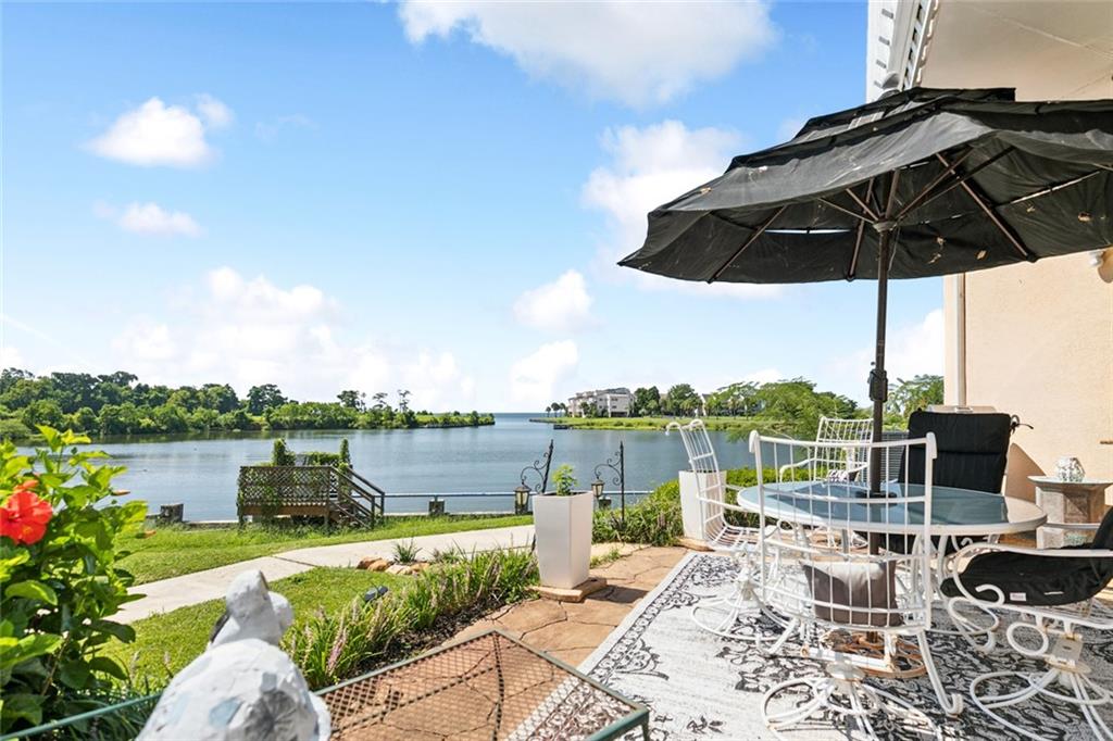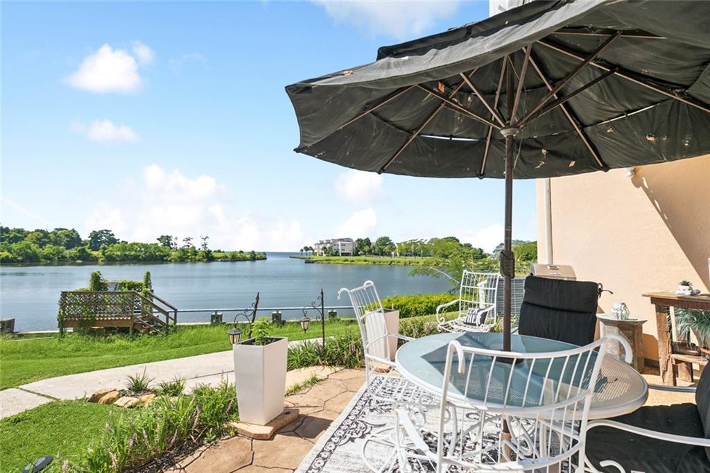 Amazing rare find waterfront condo location that is truly a diamond in the rough with a million dollar view! Although this condo needs some TLC and updating it's located on the water with an open-air patio overlooking Lake Pontchartrain for breathtaking views! New roof May 2025; excellent location for commuters situated at the foot of the Causeway Bridge, there aren't many places where you can live on the water and not be mandated to carry flood insurance with a mortgage but here it is! Located in preferred flood zone X and has never flooded; 9-ft ceilings throughout and no carpet; two fireplaces: one with gas starter in the living room and one that's wood-burning in the primary bedroom; both large bedrooms are upstairs each with a full bath, walk-in closet, and balcony; the primary bedroom balcony overlooks the lake for that million dollar view! Much of the interior has been newly painted but the condo still needs some love and updating plus some windows are fogged but the potential is tremendous and a definite choice waterfront location! Condo dues are $475/month which include structure insurance, exterior and common area maintenance, lawn care, water/sewer/garbage services, and termite contract; the buyer would need an H-06 condo insurance policy for interior and contents coverage; the property is being sold in its as-is condition, refrigerator stays with the property