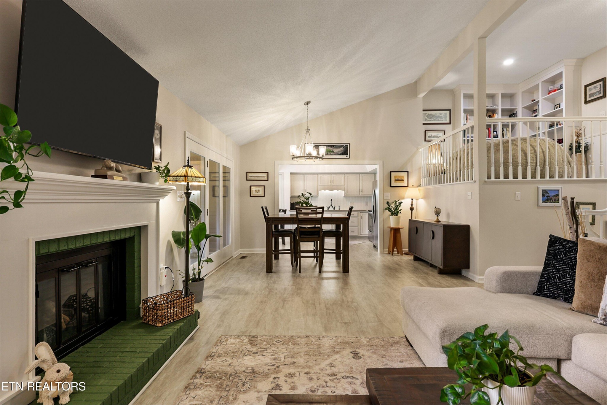 A rare opportunity to own in highly desirable Turnberry Square Condos, in the heart of Maryville - where properties seldom become available for good reasons. This immaculately maintained 3-bedroom, 3-bath split level condo offers updated comfort and easy living in a prime location. The vaulted great room serves as the heart of the home, featuring a brick gas fireplace and an open flow into the dining area and adjoining sunroom - a bright, inviting space that feels like your own private retreat. The kitchen is light filled and functional, offering ample cabinet space and stainless-steel appliances. Each of the three bedrooms includes its own private ensuite bath, providing flexibility and privacy for guests or multi-generational living. The primary suite stands out with beautifully updated, high-end finishes, including a tile walk-in shower. Up a half flight of stairs, there is a spacious landing with a custom bookshelf, creating the perfect reading nook or sitting area. Laundry is conveniently located on the upper level, and abundant storage throughout the home adds to its practicality. The roomy garage provides additional storage and convenience. Ideally located near Sandy Springs Park, close to schools, shopping, and the Maryville-Alcoa Greenway, this home offers comfort, convenience and community all in one. Move in and start enjoying the lifestyle!