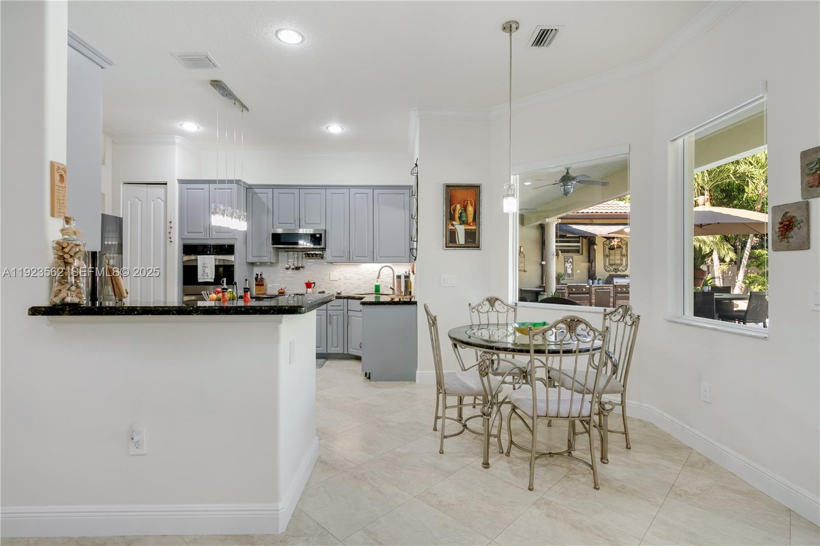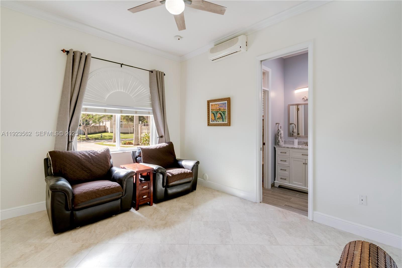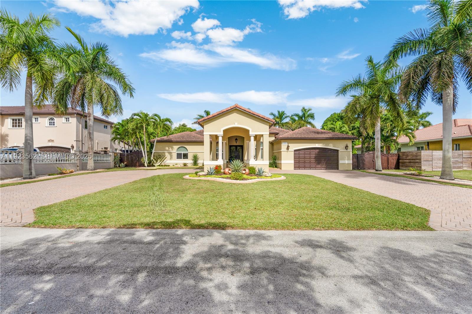 Beautiful home situated on a spacious 16,025 s/f lot featuring a circular driveway, porte cochere, and a 2-car garage. This property offers 4 bedrooms and 3 bathrooms across 4,579 total s/f, plus an additional 1/1 apartment. Upgrades include impact windows and doors, porcelain floors, and a kitchen equipped with granite countertops and wood cabinetry. The home also features 2 central A/C units and 4 mini-splits. Enjoy a heated saltwater pool with spa in a family-friendly neighborhood. No HOA.
