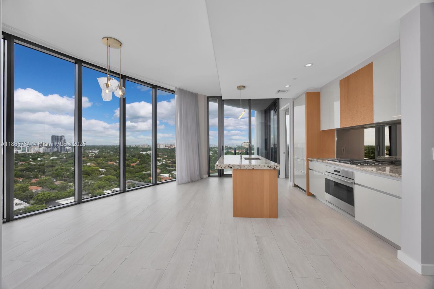 Live in the heart of Coconut Grove in this beautifully appointed 2-bd + den, 2-bth residence at Park Grove, the visionary creation of renowned architect Rem Koolhaas/OMA. This light-filled home features 10’ ceilings, floor-to-ceiling glass windows, and a balcony showcasing sweeping sunset and city views. The modern kitchen is outfitted with Sub-Zero and Wolf appliances, a gas cooktop, marble countertops with a mirrored backsplash, and custom Italian cabinetry. The master has a bathtub with dual sinks, and walk-in shower. A versatile den, ideal as a home office, as well as washer/dryer and porcelain flooring throughout. Resort-style living at Park Grove: rooftop pools, spa, fitness, yoga, pilates, theater, kids’ playroom, 24/7 concierge, valet & more amid lushly landscaped acres.