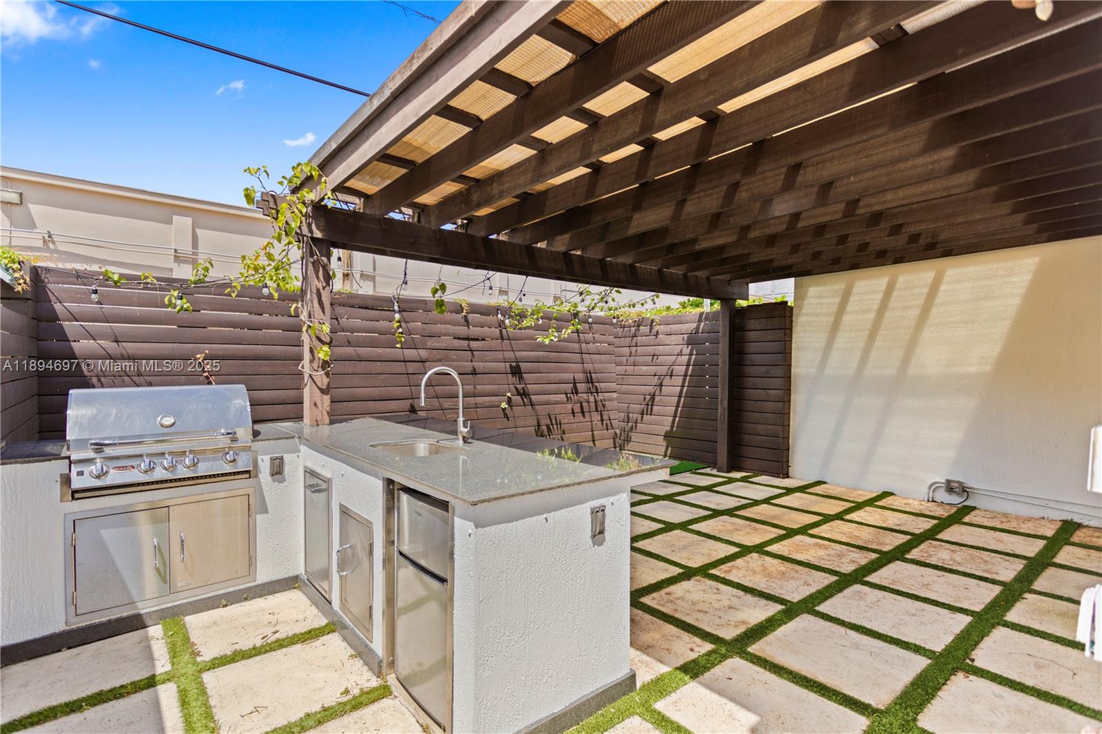 Modern and completely renovated townhouse in a unique Coconut Grove location! This 3-bed, 2.5-bath home features an open-concept layout filled with natural light, sleek finishes, and porcelain tile flooring throughout. The chef’s kitchen boasts quartz countertops, premium stainless-steel appliances, and custom cabinetry. Enjoy outdoor living with a private patio, pergola, and summer kitchen—perfect for entertaining. Includes a one-car garage with Tesla charger. Upstairs features a large master suite with double vanities, custom California closet, and balcony, plus spacious second and third bedrooms with custom closets and blackout blinds. Steps from groceries, top-rated schools, parks, and the Grove’s best dining and shops.