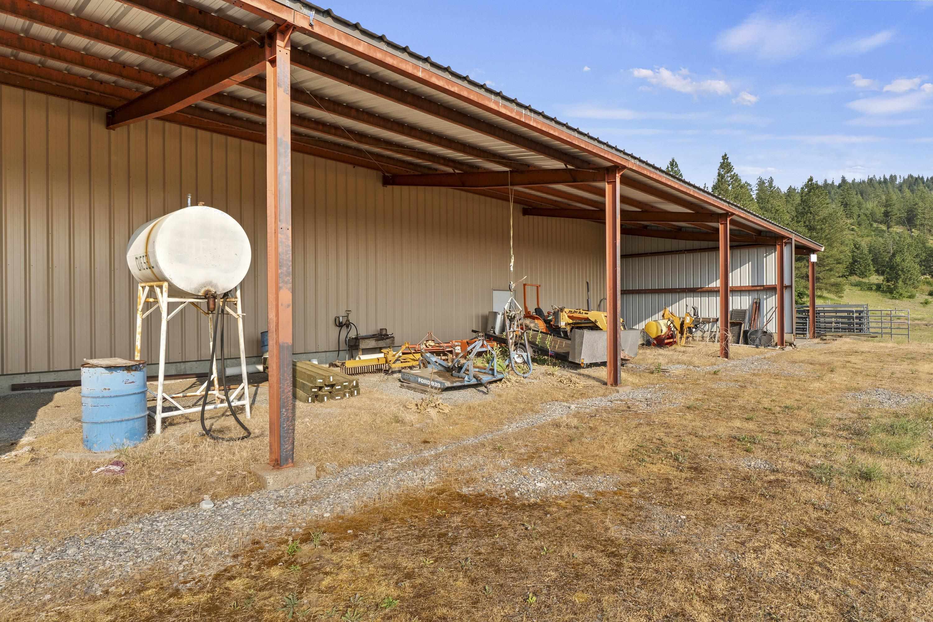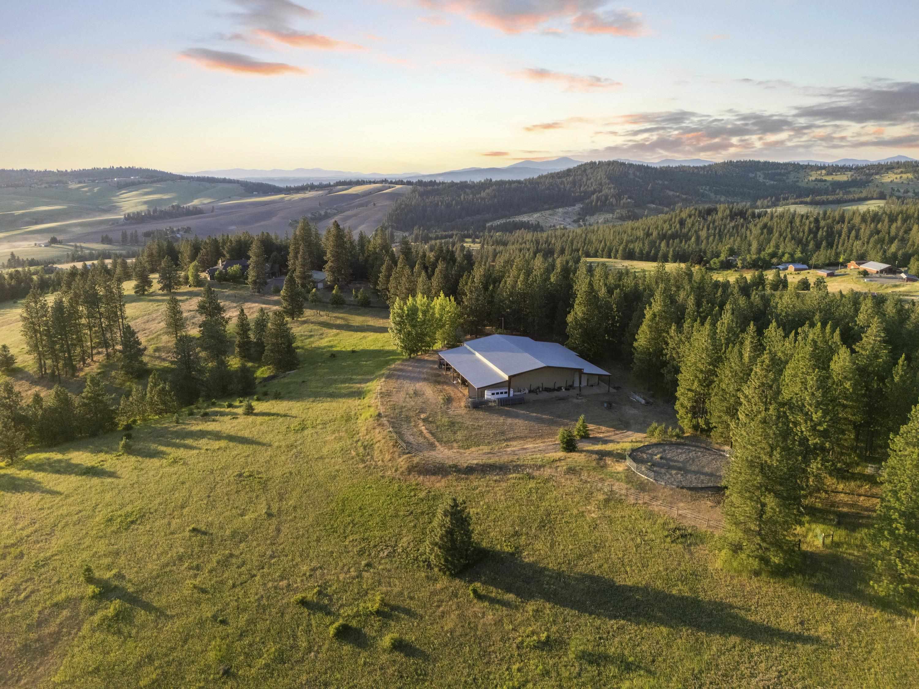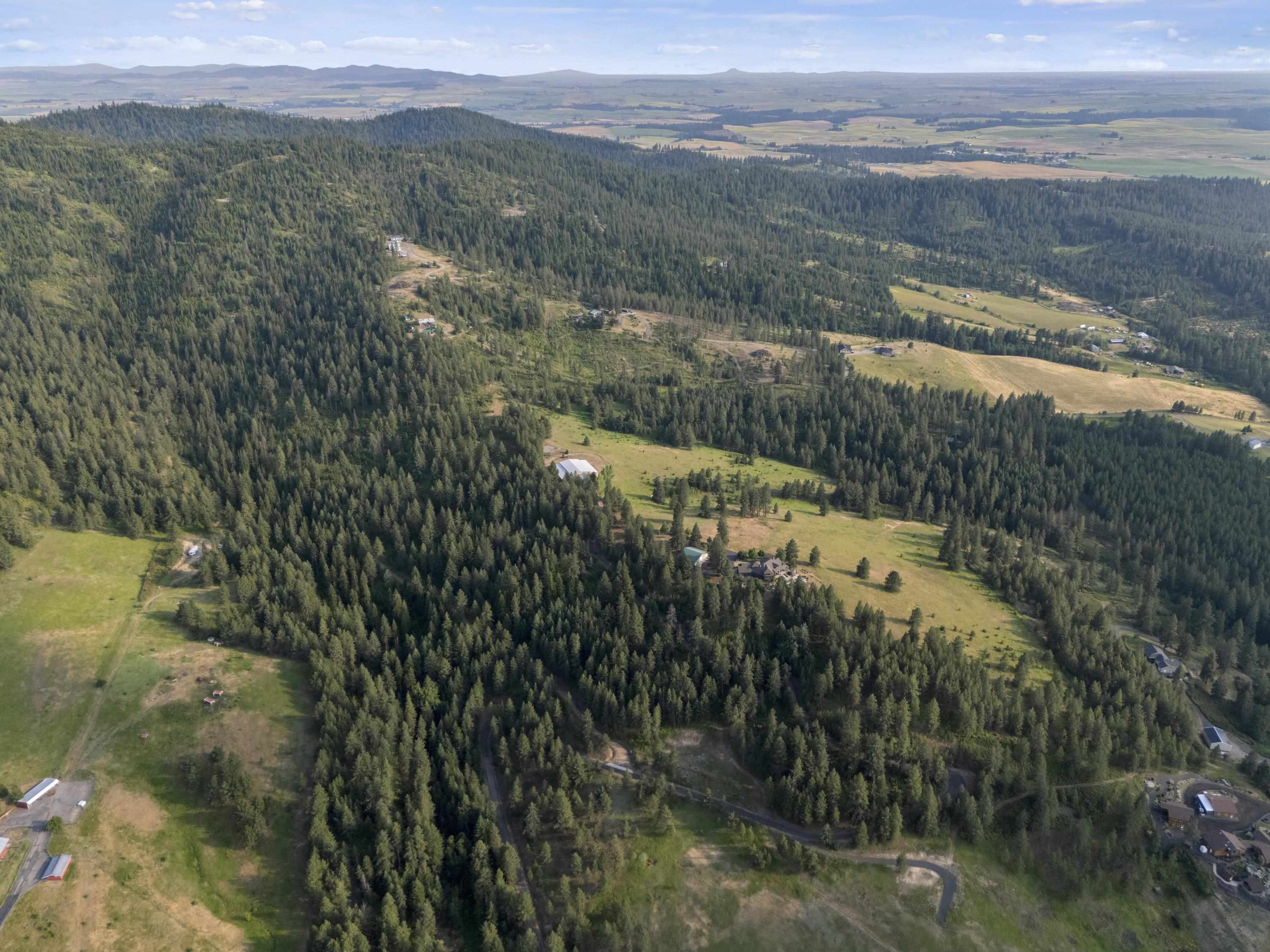 Barndo/Shome perfection. Year round or seasonal getaway. Multi-Family development potential w/ incredible future home site(s). Minimal maintenance. Sweeping views. Mica Peak Conservation/Trails just down the road. Close to the Valley. End of Private Paved road. Gated. Undergrnd power. Private well, 7gpm. Natural springs. Wildlife. All steel building with concrete floor, concrete lean-to and graveled lean-to. Apartment is super insulated. Electric + propane stove heat. Wall AC. 2 bedrooms, 2 baths, full kitchen w/ island, office area, full laundry room. Outdoor garden/patio escape. Shop space +workshop setup to be envied. Bring your horses, too. Current owners offer winter boat storage for addt'l income. Timbered + open spaces tax classification savings (to remain upon sale). Three parcels with home for $1.75m = 66.33 acres: #1 (Lot 7) is the home on 26.23 ac; #2 (Lot 6) is 20.04 ac; and #3 (Lot 5) is 20.06 ac. Optional listing offers Lot 7 + Lot 6 together for $1.45m. Qualified buyers, call to view.