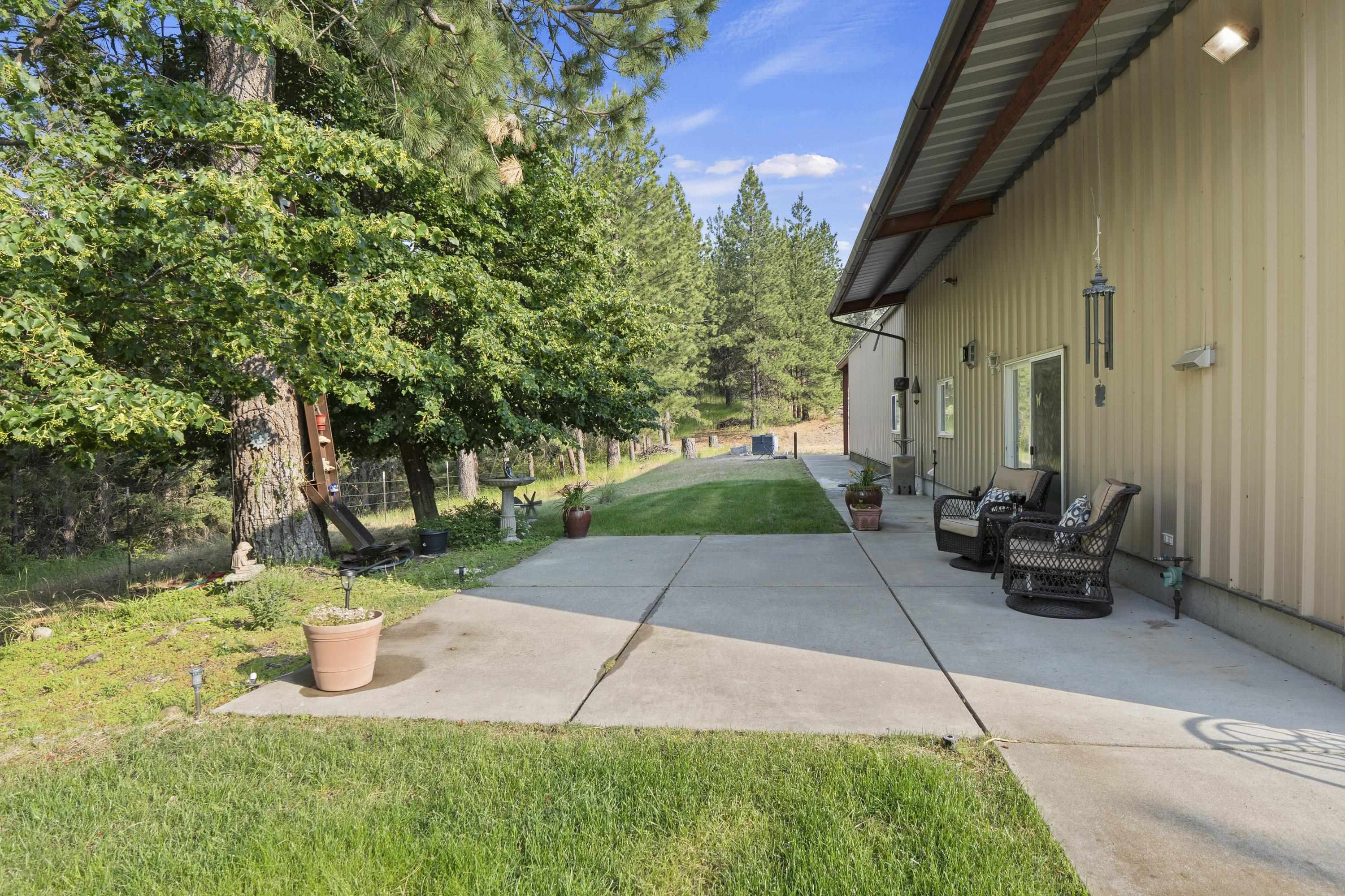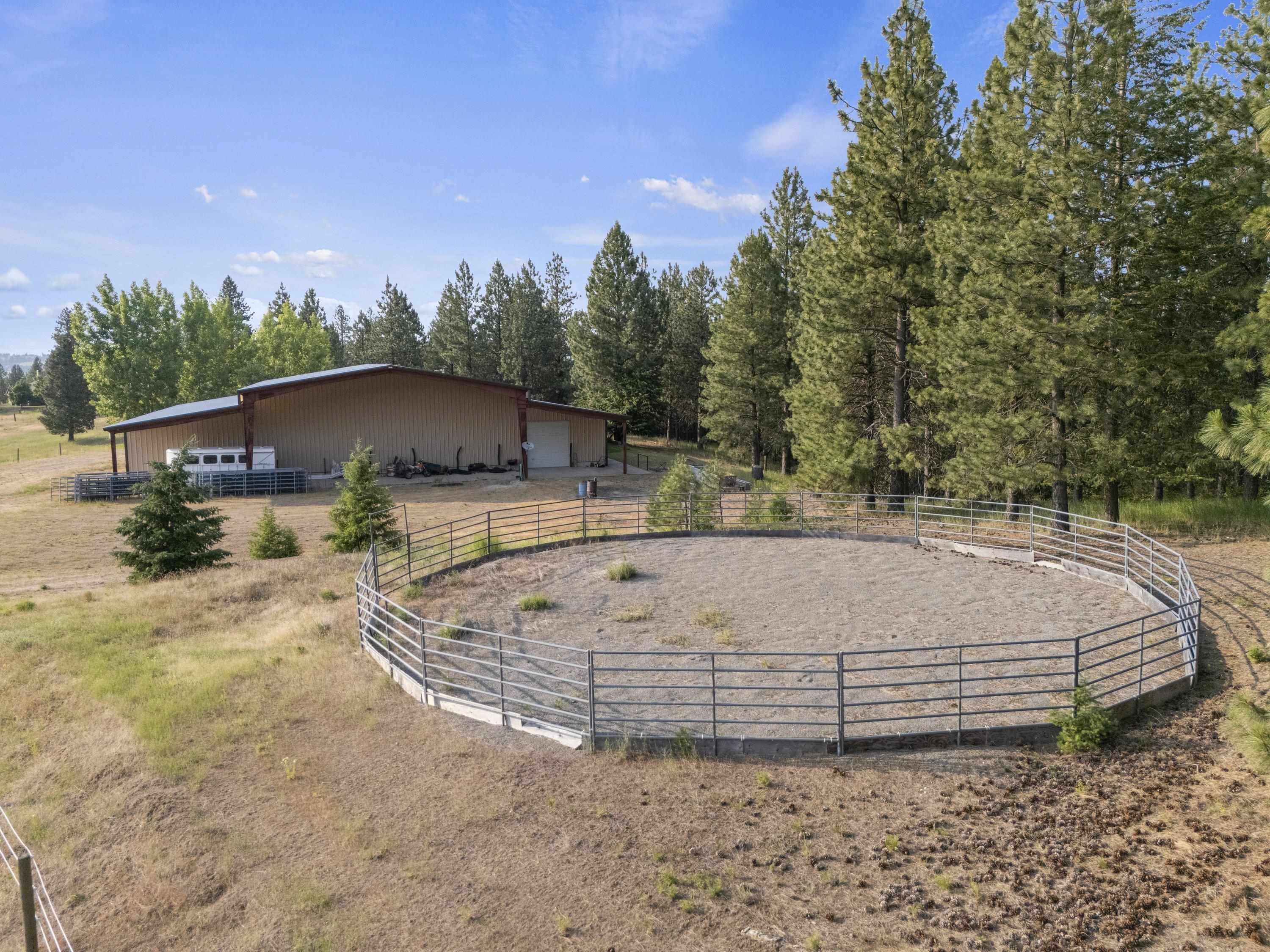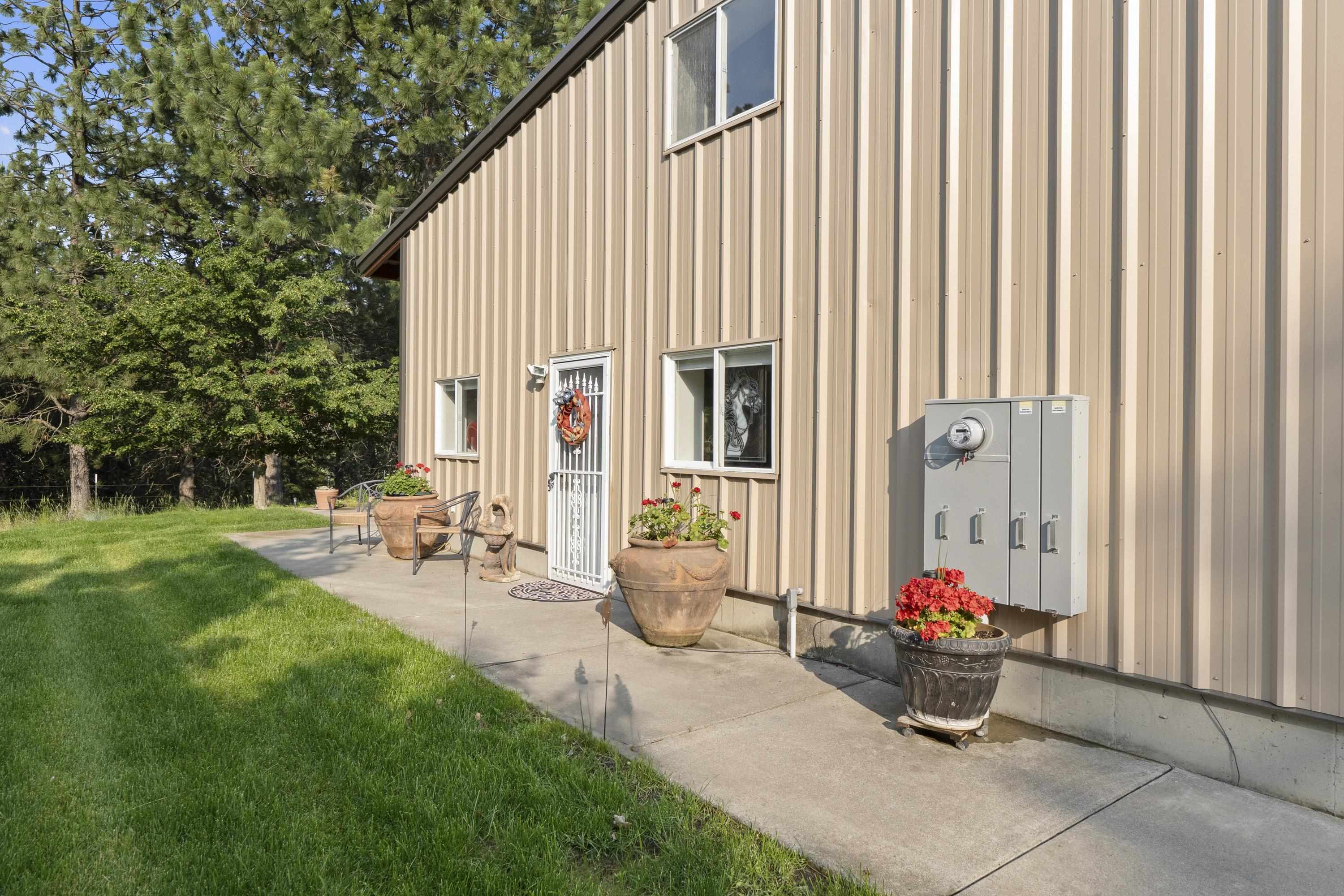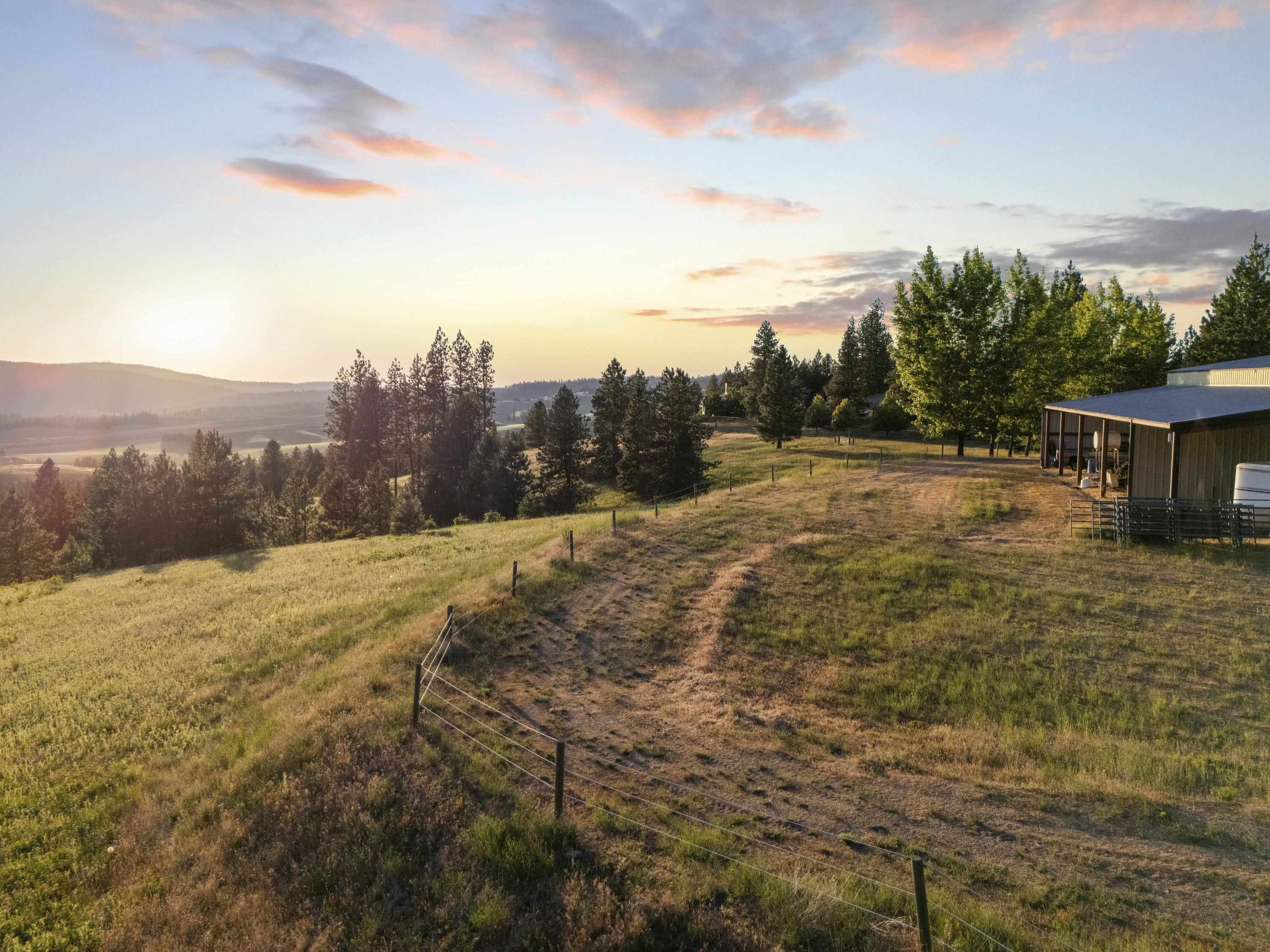 Barndo/Shome perfection. Year round or seasonal getaway. Multi-Family development potential w/ incredible future home site(s). Minimal maintenance. Sweeping views. Mica Peak Conservation/Trails just down the road. Close to the Valley. End of Private Paved road. Gated. Undergrnd power. Private well, 7gpm. Natural springs. Wildlife. All steel building with concrete floor, concrete lean-to and graveled lean-to. Apartment is super insulated. Electric + propane stove heat. Wall AC. 2 bedrooms, 2 baths, full kitchen w/ island, office area, full laundry room. Outdoor garden/patio escape. Shop space +workshop setup to be envied. Bring your horses, too. Current owners offer winter boat storage for addt'l income. Timbered + open spaces tax classification savings (to remain upon sale). Three parcels with home for $1.75m = 66.33 acres: #1 (Lot 7) is the home on 26.23 ac; #2 (Lot 6) is 20.04 ac; and #3 (Lot 5) is 20.06 ac. Optional listing offers Lot 7 + Lot 6 together for $1.45m. Qualified buyers, call to view.