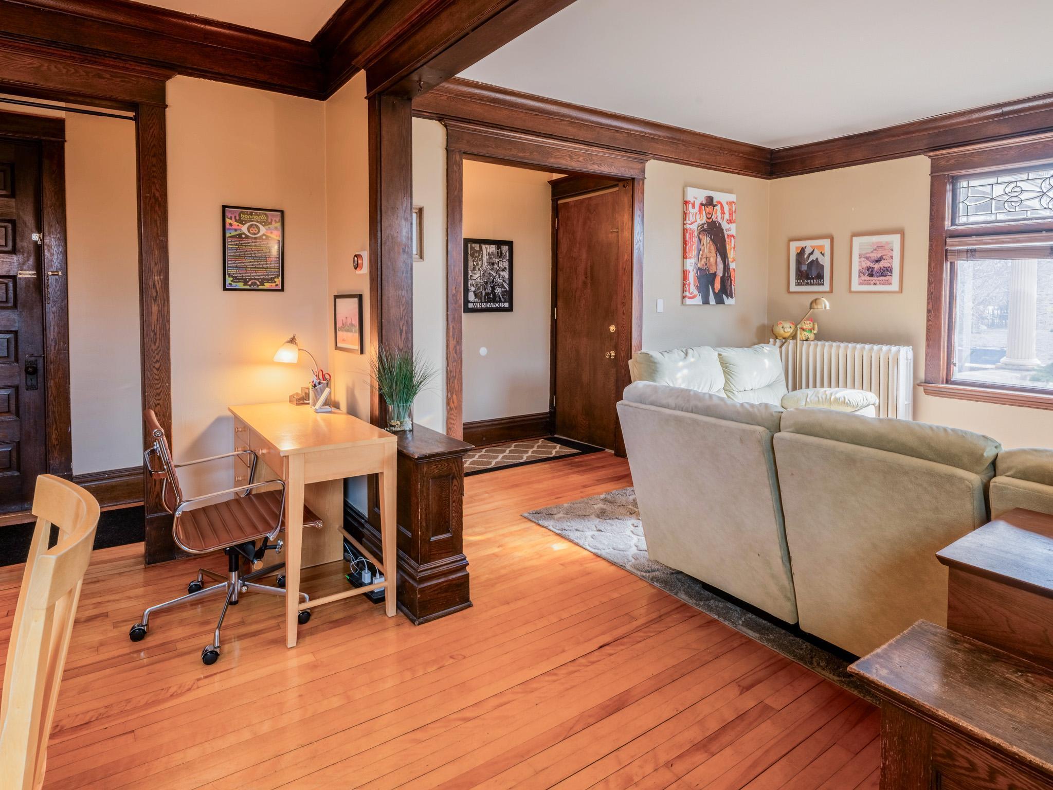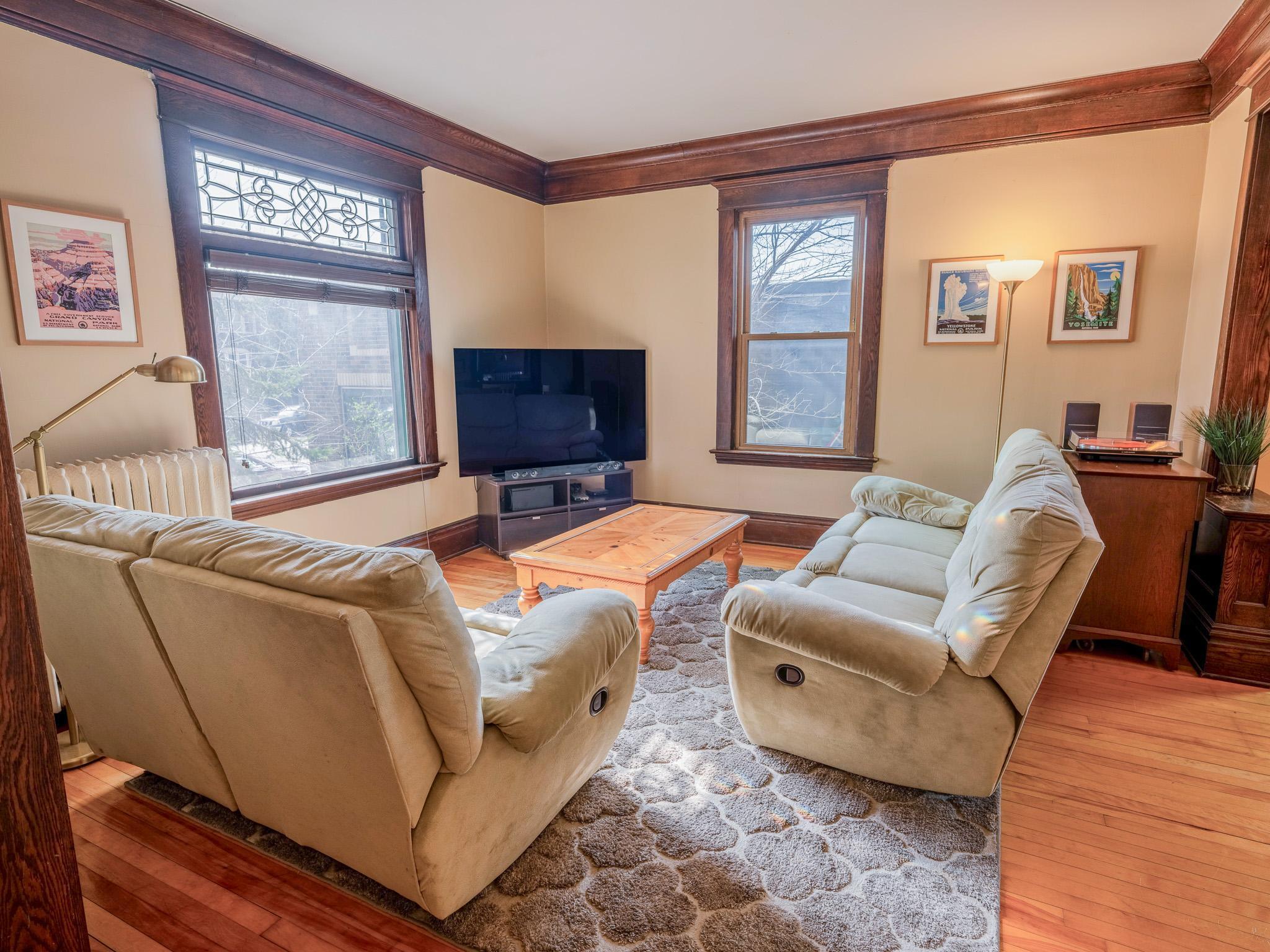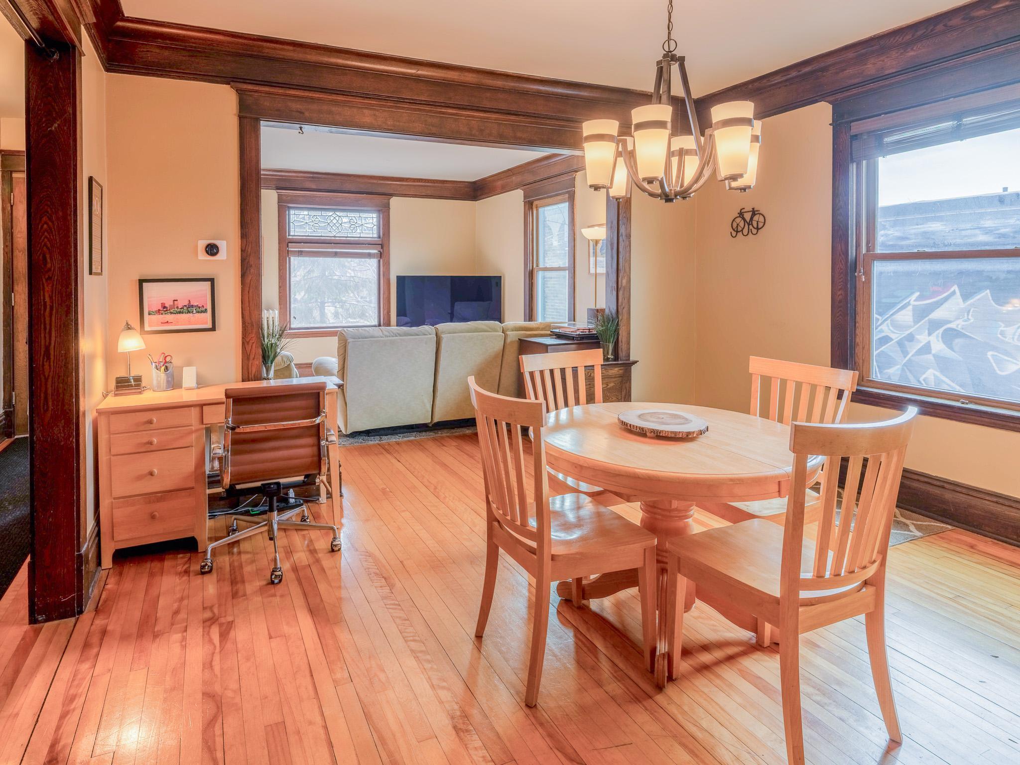 Welcome to 2636 Lyndale Ave S #1, a charming and updated condo in the heart of Minneapolis’s vibrant Whittier neighborhood. This 2BR, 1BA home offers just under 1,000 sq. ft. of thoughtfully designed living space that blends vintage character with modern updates. Inside, you'll find original hardwood floors, large windows that flood the space with natural light, and classic details like built-in shelving and a decorative fireplace. The kitchen features tile countertops, ample cabinet storage, and a stainless steel refrigerator. The living and dining areas offer a warm, functional layout perfect for relaxing and entertaining. 2 spacious BRS with ample closets. Additional amenities include shared laundry, a dedicated storage unit in the basement, new boiler in 2022, one assigned off-street parking space behind the building and one guest space. Residents also enjoy use of the welcoming front porch, perfect for morning coffee or evening chats. Located just steps from local restaurants, coffee shops, grocery stores, and public transit—with easy access to Uptown, the lakes, and downtown—this home offers unbeatable convenience in one of Minneapolis’s most walkable neighborhoods. Ideal for first-time buyers - low association fees!