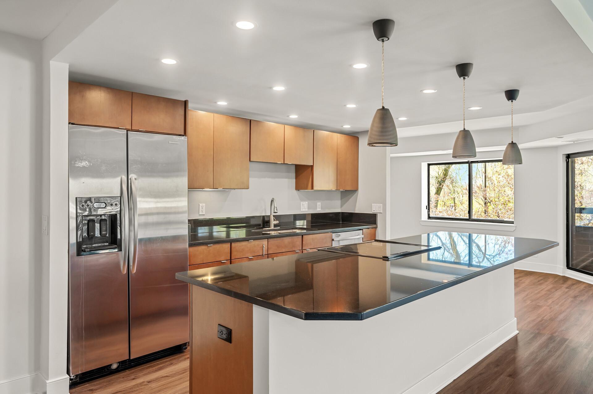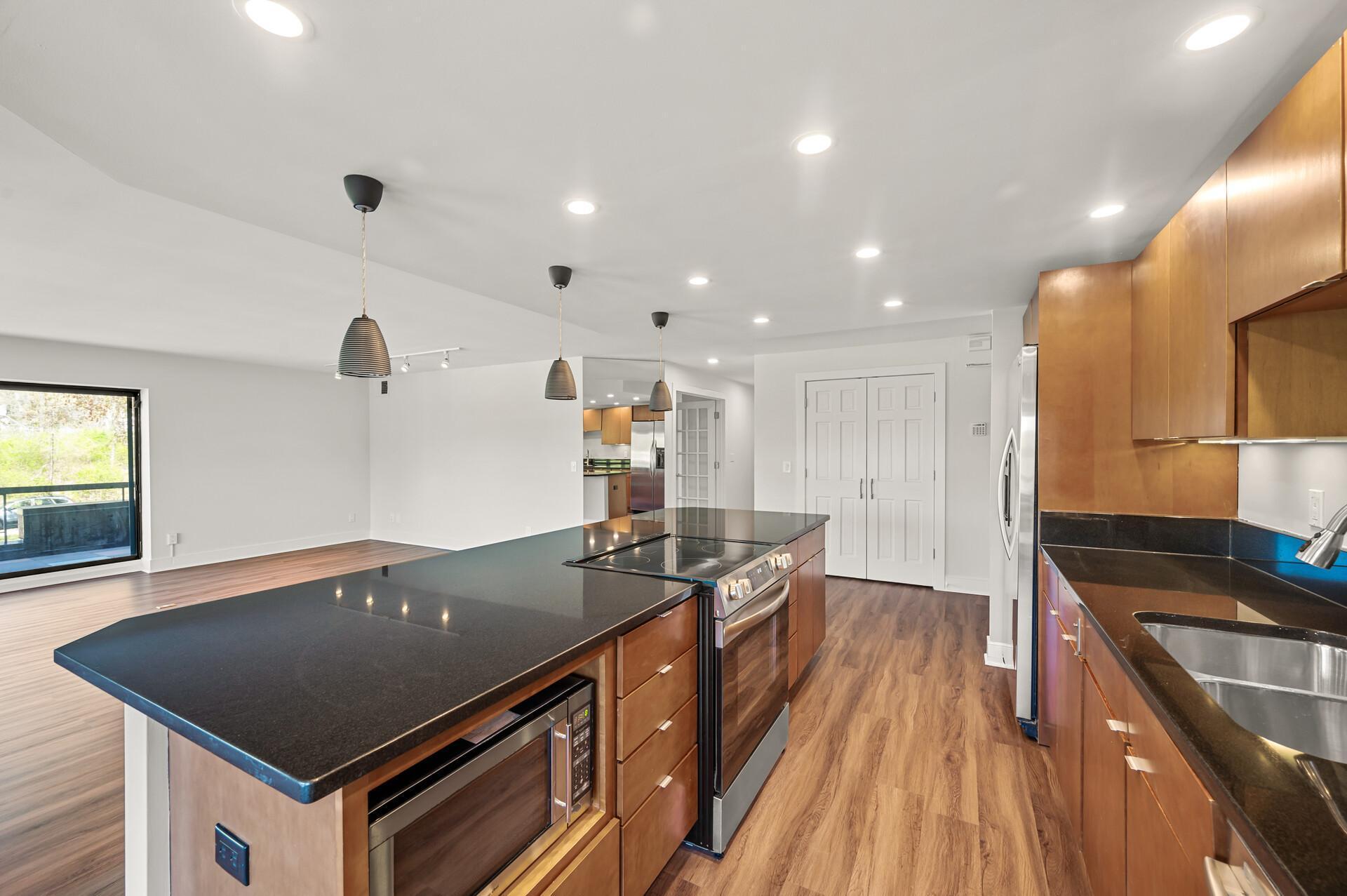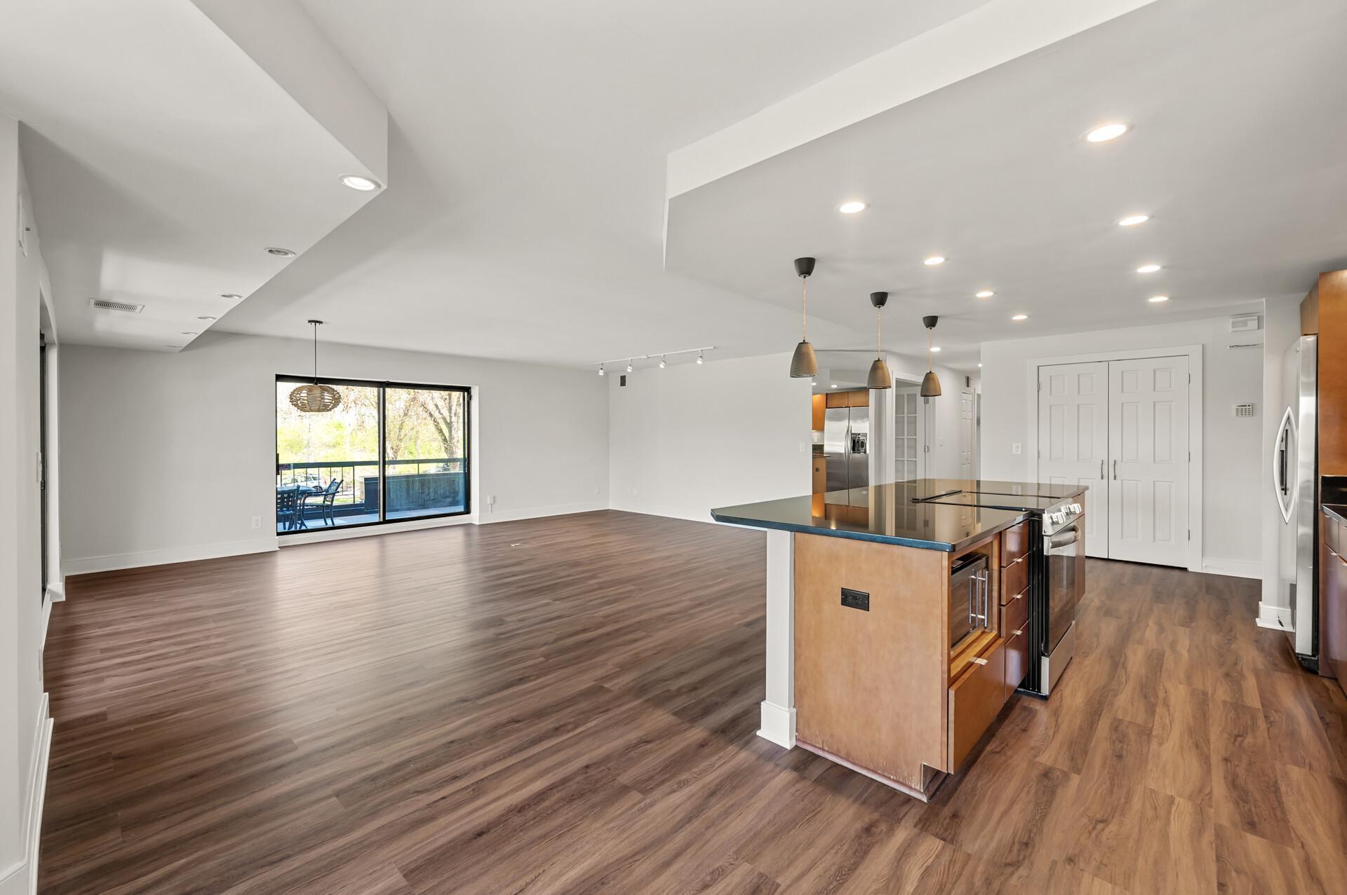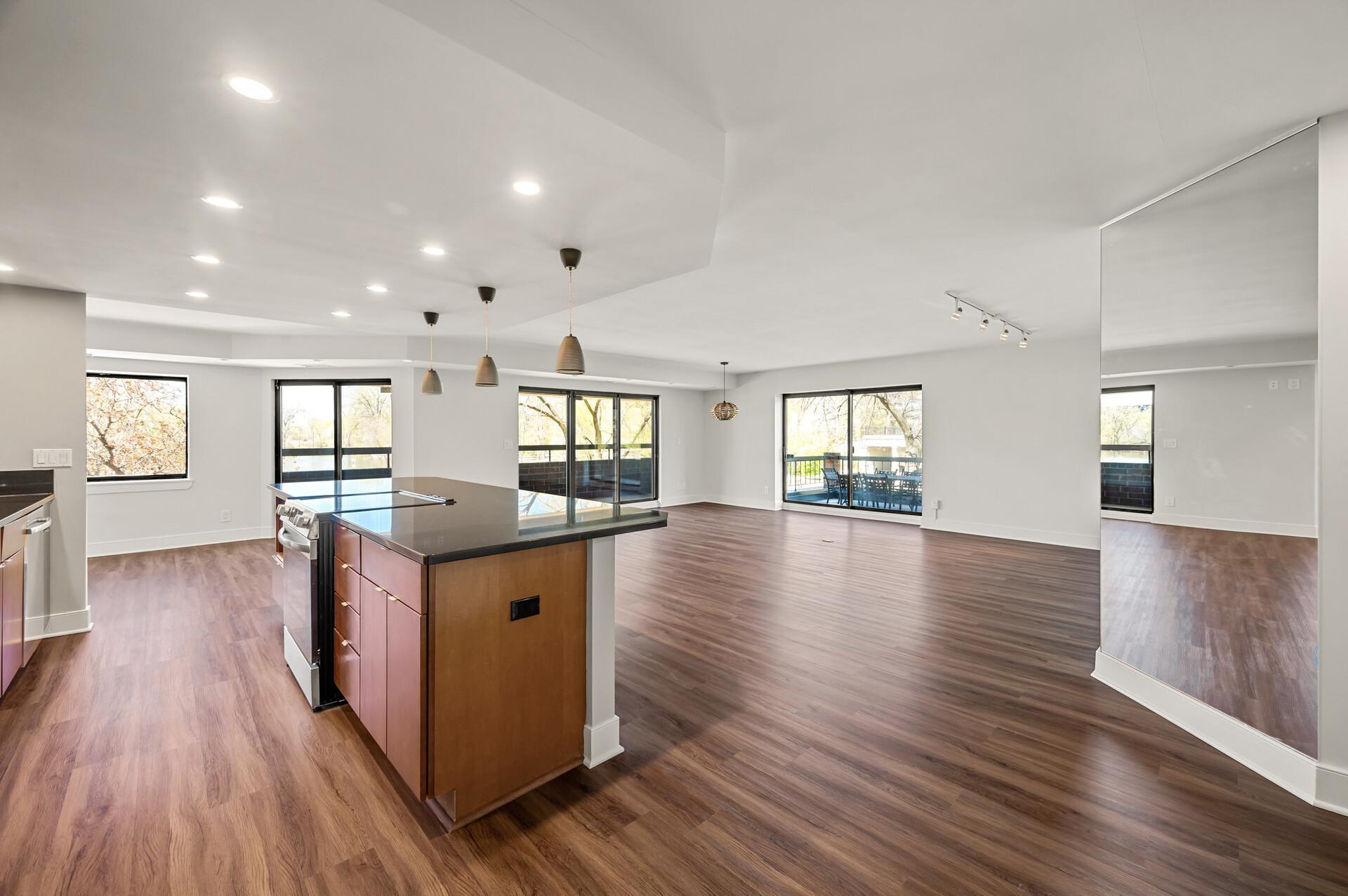 Enjoy breathtaking lake views from your private balcony and the soon-to-be-updated rooftop deck. Inside, a bright, open floor plan showcases fresh paint, luxury vinyl plank flooring, an updated kitchen with stainless steel appliances, and a large center island—ideal for cooking, gathering, and entertaining. The spacious layout includes a Primary Suite with a private spa-style bath, generous second bedroom, and in-unit laundry for everyday ease. Additional perks include a heated garage with bike racks and a car wash station, and a community/party room with large deck (under construction). Best of all, you're just steps from trails, cafes, shops, restaurants, and grocery stores. Enjoy year-round recreation—bike, canoe, kayak, sail, or cross-country ski right outside your door. Association dues include heat, A/C and cable. This is more than a home—it's a lifestyle. Don’t miss your chance to own a slice of Minneapolis paradise!