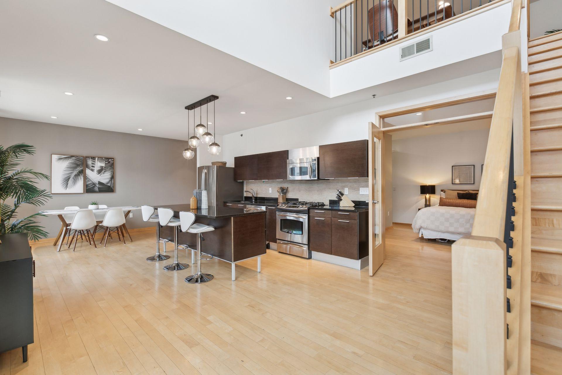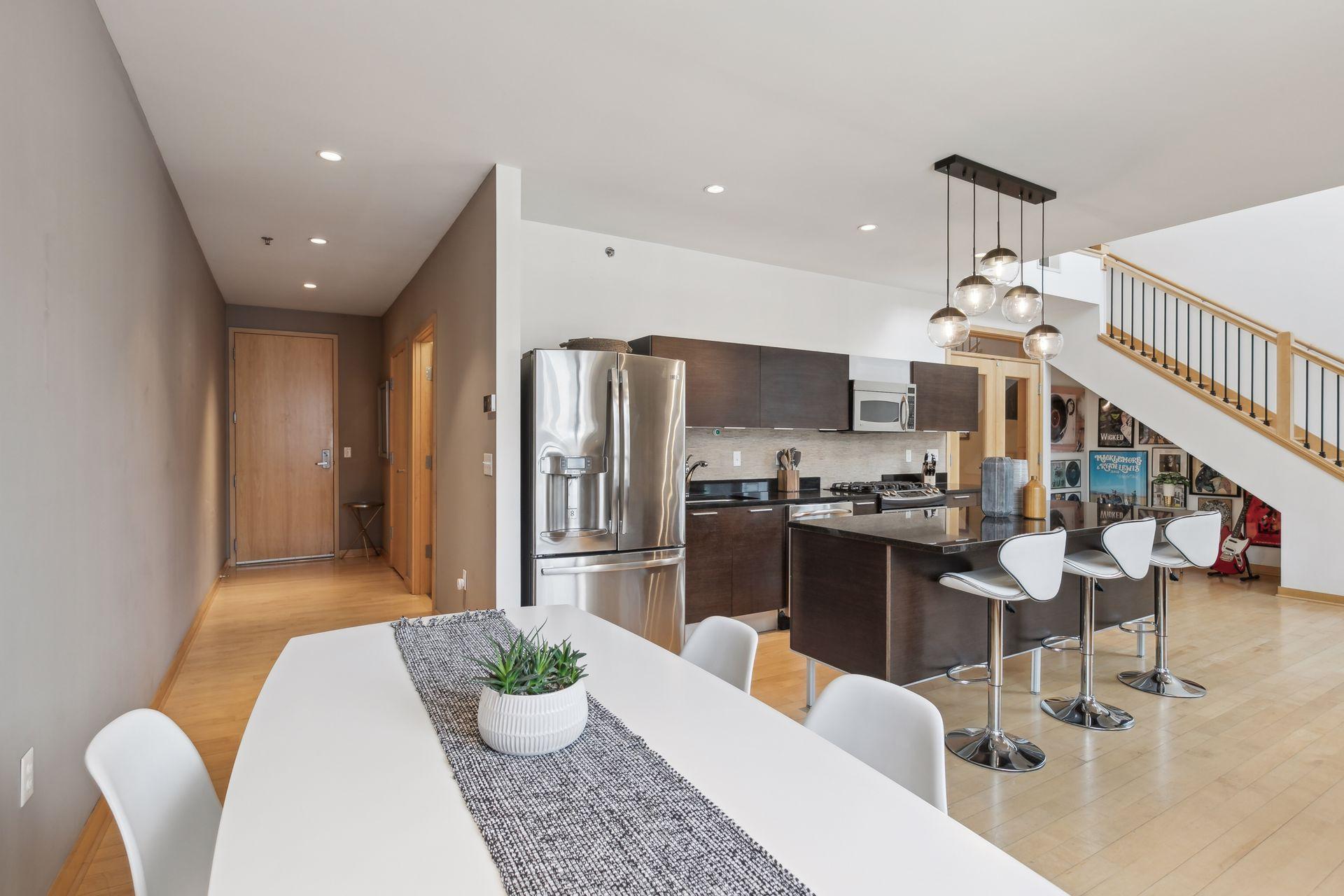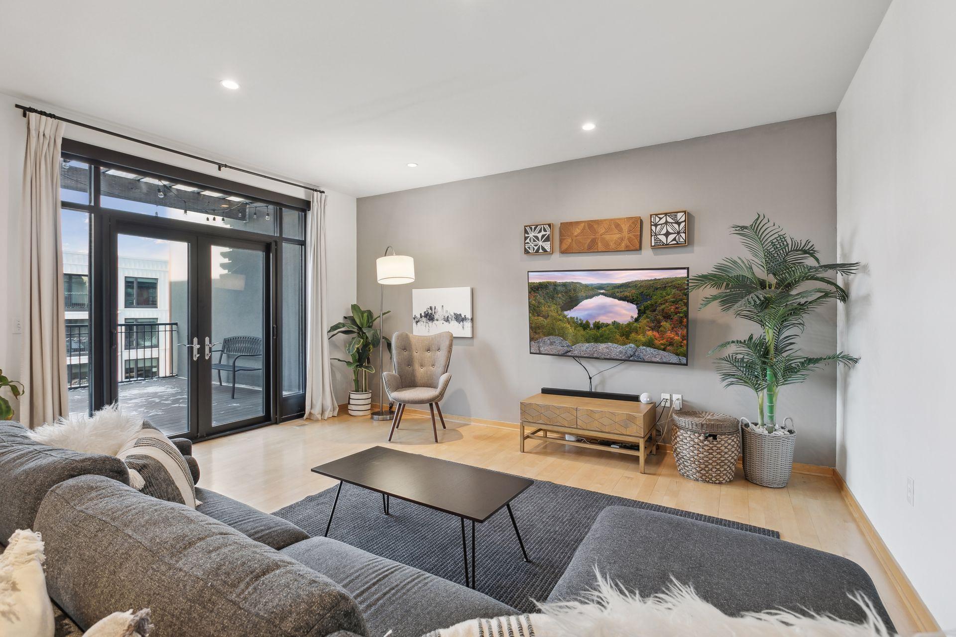 Experience modern living in this top-floor, 1 bed / 1 bath, two-story condo at Loop Calhoun! Designed for both comfort and style, this home features an open floor plan, a spacious center island, sleek stainless steel appliances, and abundant natural light from top to bottom. The primary bedroom boasts an en-suite bathroom with a dual vanity, separate tub and shower, and direct access to a walk-in closet. Upstairs, a versatile entertainment room offers endless possibilities and opens to a private balcony, perfect for enjoying fresh air and a relaxing night in. With in-unit laundry and two assigned parking spots in a climate-controlled garage, convenience is at your fingertips. Loop Calhoun offers outstanding amenities, including a fitness studio, community room, and conference spaces, all designed to elevate your lifestyle. Just outside, enjoy miles of scenic trails along the Greenway or take a short stroll to Lake Bde Maka Ska and Lake of the Isles. Plus, you’ll be minutes from top-rated restaurants, shopping, and cozy cafes. Don’t miss the opportunity to make this exceptional condo your new home!