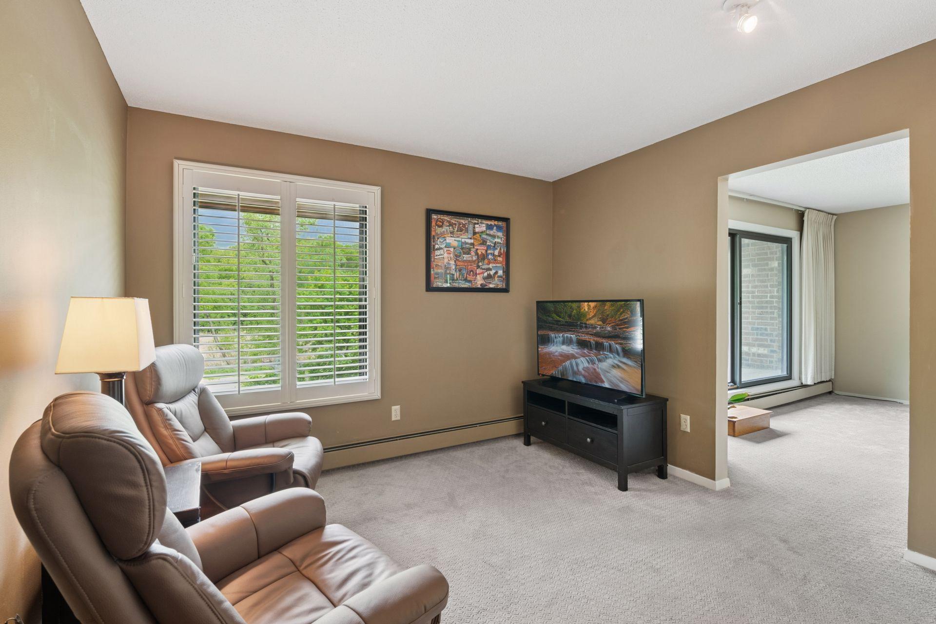 Welcome to 7520 Cahill Road Unit 121A in the Windwood Condominium complex. This wonderful condo features a well-equipped kitchen, a separate dining room and a spacious living area. The primary suite includes a 3/4 bath and a generous walk-in closet, plus there’s an additional bedroom/den and full hallway bath. Enjoy your morning coffee on the private balcony. This unit also includes a storage unit on the same floor and an underground parking stall. Experience a wealth of amenities, including indoor and outdoor pools, a hot tub, sauna, tennis court, game room, fitness room, party room, library, craft room, and woodworking shop. This condo offers comfort and convenience. Located near parks, shopping and restaurants. Don't miss this one!
