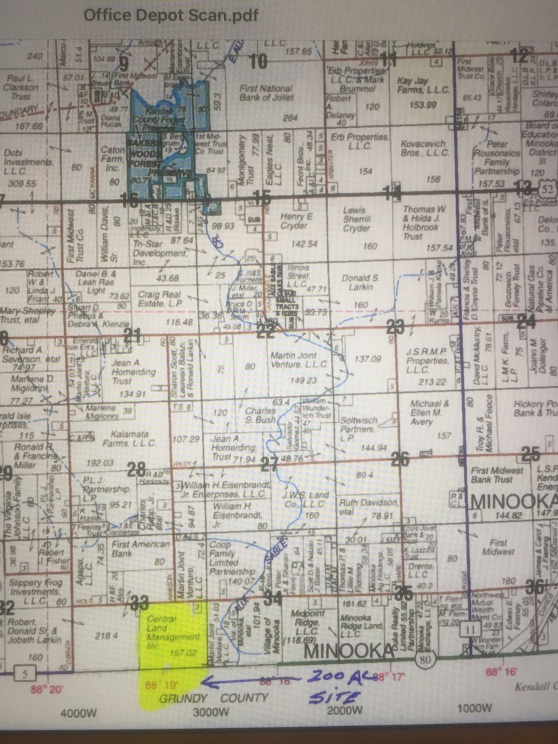 Up for sale is this 194 acre farm property near Minooka Illinois. This property is annexed into the Village of Minooka and is currently zoned M-1. Frontage on both Holt Rd. & Interstate 80. In an area of BIG Box distribution centers. QUICK and Easy access to all Metro-Chicago and all parts Midwest via I-80 and nearby I-55. Currently being farmed. Priced to sell. Earn generous farm cash rents while holding. Great southwest suburban metro-Chicago investment opportunity. Property includes all of Kendall County PIN 0933400002, all of Kendall County PIN 0934300004, all of Grundy County PIN 0303100001 and part of Grundy County PIN 0304200005. Copy of survey is in attached photos. Motivated seller will consider all serious offers. SEE and COMPARE.