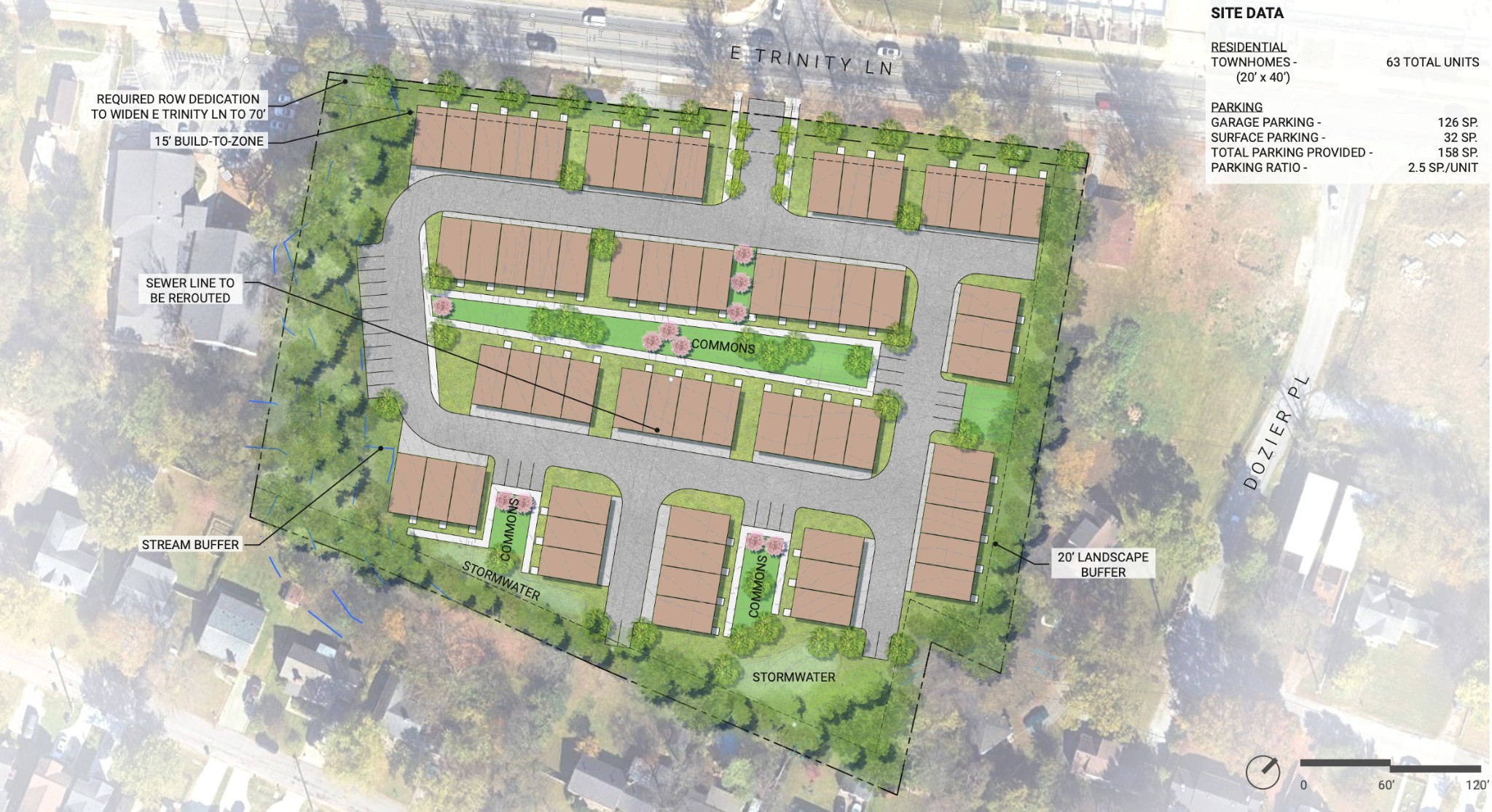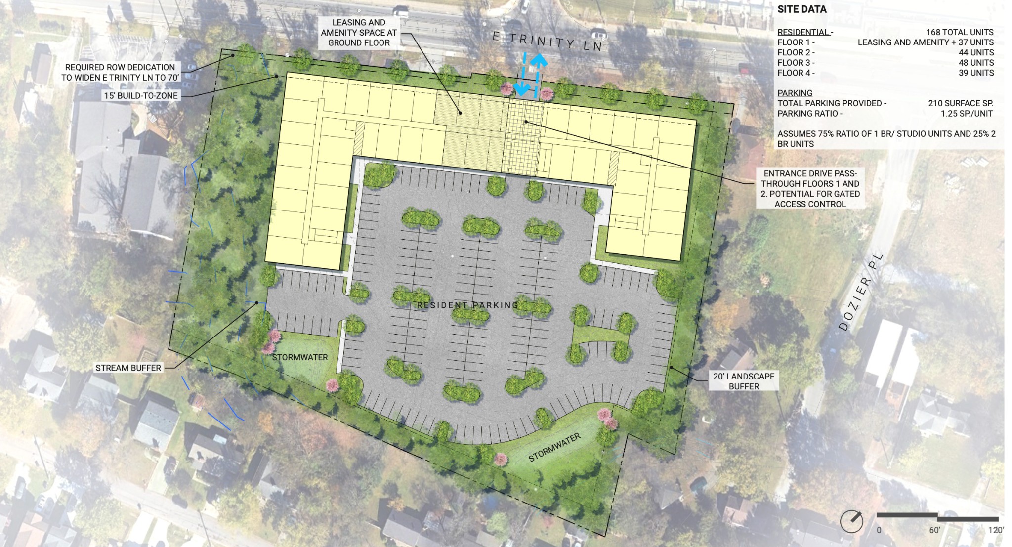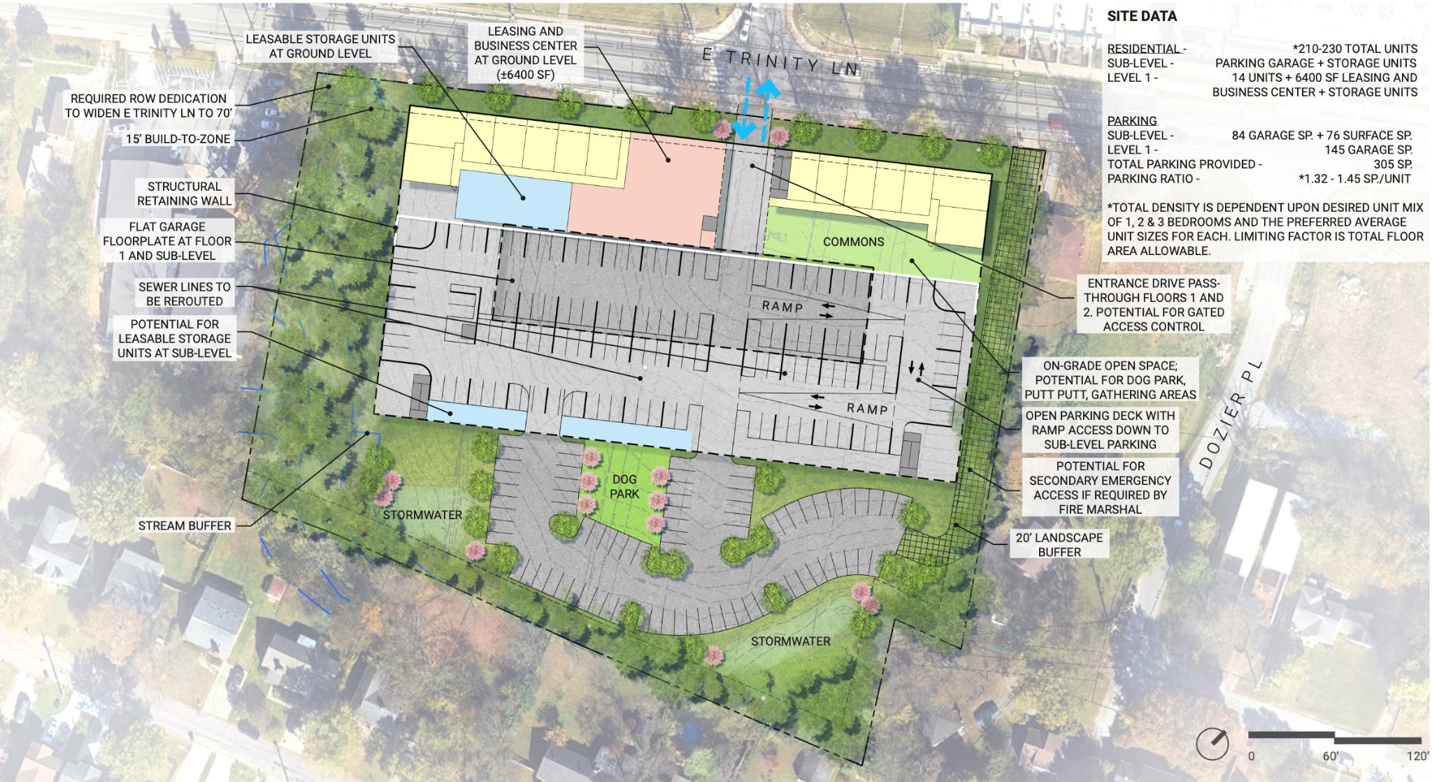 SVN Accel Commercial Real Estate is pleased to present a rare assemblage in the heart of East Nashville. This ±4.27-acre site, recently rezoned to MUL-A (Mixed Use Limited - Alternative), consists of eight contiguous parcels spanning 1012 to 1028 East Trinity Lane, strategically assembled over nearly a decade. It represents one of the largest and most strategic development opportunities along the rapidly evolving E. Trinity Lane corridor. Located just minutes from Downtown Nashville, the property is ideally suited for residential or mixed-use development. MUL-A zoning supports a broad range of urban, pedestrian-oriented uses— including multifamily housing, townhomes, and neighborhood-scale commercial or office space. This zoning flexibility, combined with the site’s substantial scale, street frontage, and high-growth location, makes it a premier opportunity in one of Nashville’s most active and sought-after submarkets. Catalyst Design Yield Study Projects the Below Potential:
