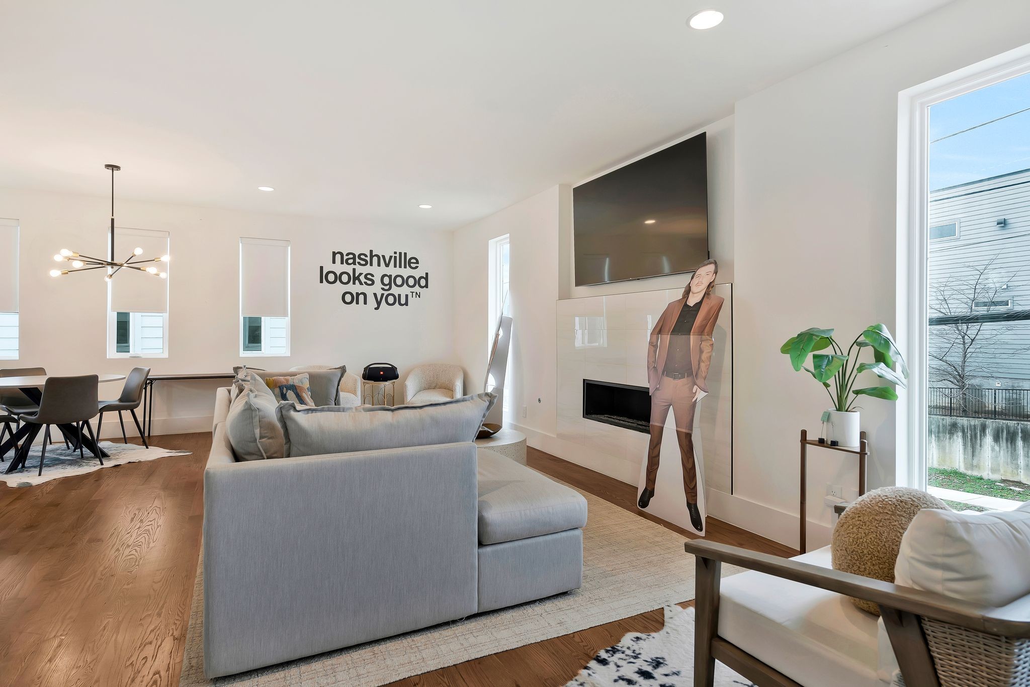 Rare opportunity to own a fully furnished 4 bedroom, 4.5 bath NON OWNER OCCUPIED STR eligible property featuring exceptional rooftop views of the Nashville skyline from the third level bonus room. Uncommon for short term rentals, this detached home offers unmatched functionality compared to typical STR townhomes or condos and is only 5 mins to Broadway, Top Golf, Nissan Stadium and right around the corner from Nashvilles new 550 acre East Bank development.
