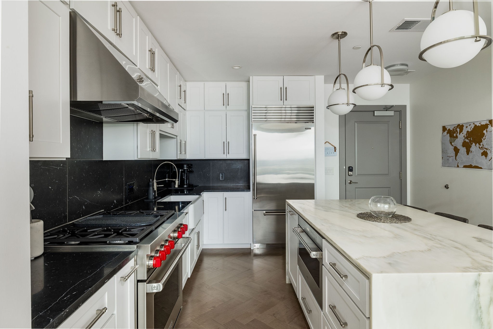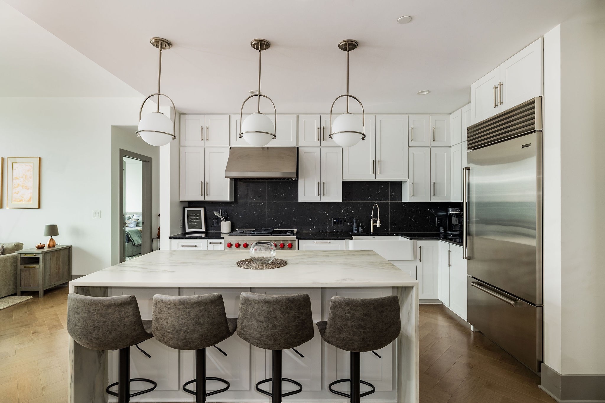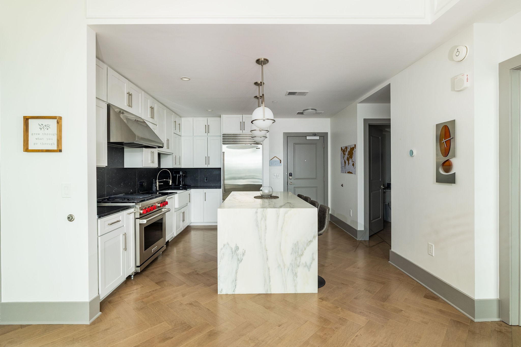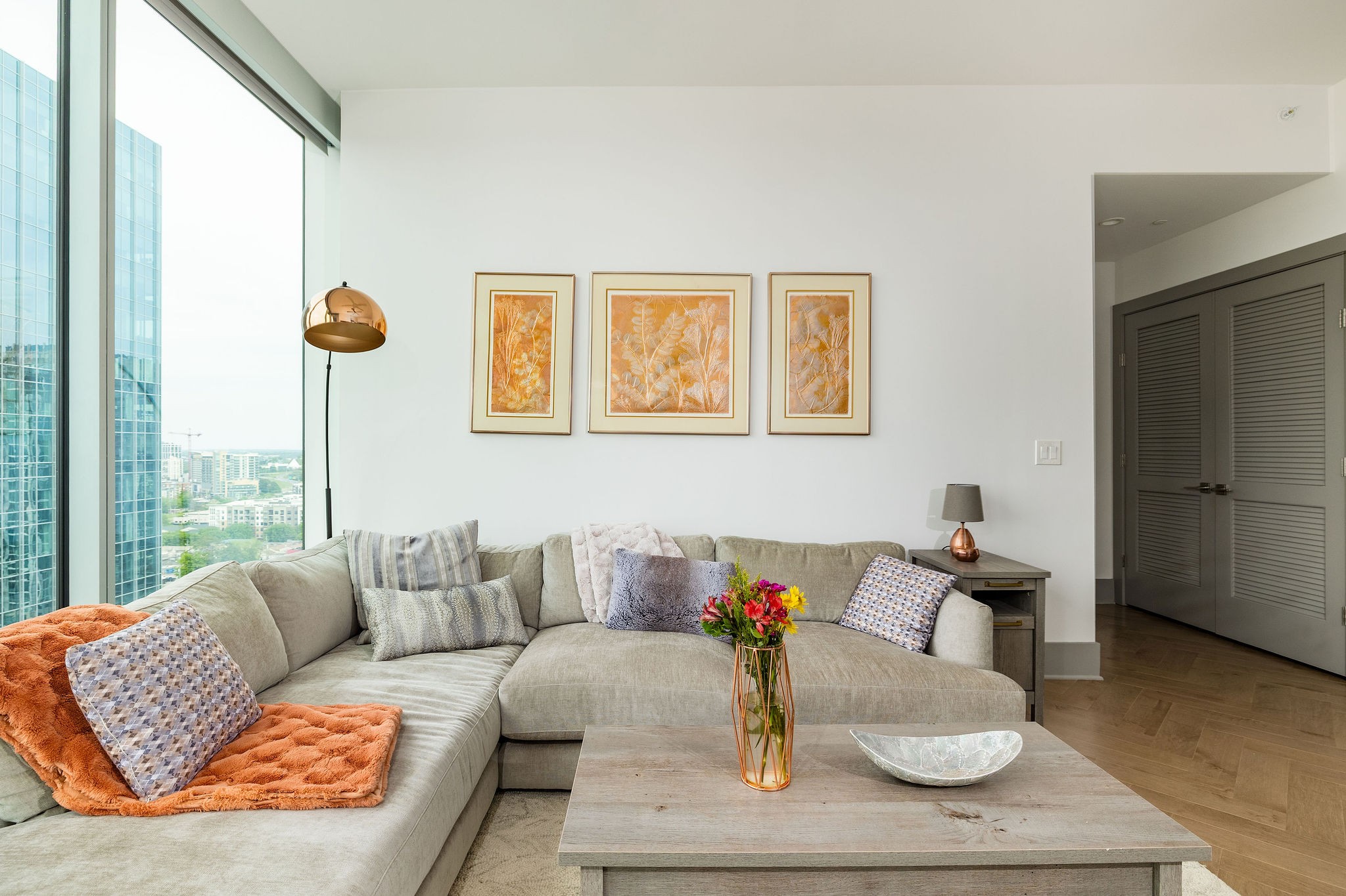 Experience luxury living in this stunning 2-bedroom, 2.5-bath high-rise condo located in the prestigious Broadwest Residences. This sophisticated midtown Nashville home features an open-concept layout designed for entertaining, highlighted by a chef’s kitchen with marble countertops, a waterfall island, and top-of-the-line Wolf and Sub-Zero appliances. The spacious living area includes a custom built-in bar and floor-to-ceiling windows that flood the space with natural light. Step out onto your private balcony to enjoy sweeping views of the Nashville skyline. The primary suite is a serene retreat, showcasing custom lighting, automated shades, a walk-in closet, and a spa-inspired bath with dual marble vanities, double rain head showers, and a luxurious soaking tub. As a resident, enjoy exclusive access to Broadwest’s Five-Star Rooftop Amenities on the 34th floor, including: Rooftop Pool, Billiards Room, Golf Simulator, Library & Meeting Rooms, State-of-the-Art Fitness Center with Sauna, Outdoor Kitchen & Fire Pit, Indoor and Outdoor Fireplaces, Elegant Bar Area