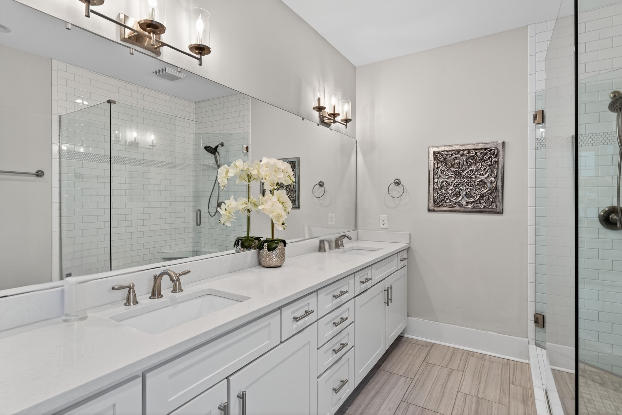 Upstairs, all three bedrooms are ensuite, offering privacy and convenience. The luxury primary suite includes a soaking tub, walk-in shower, and an oversized custom closet rarely seen in this area.