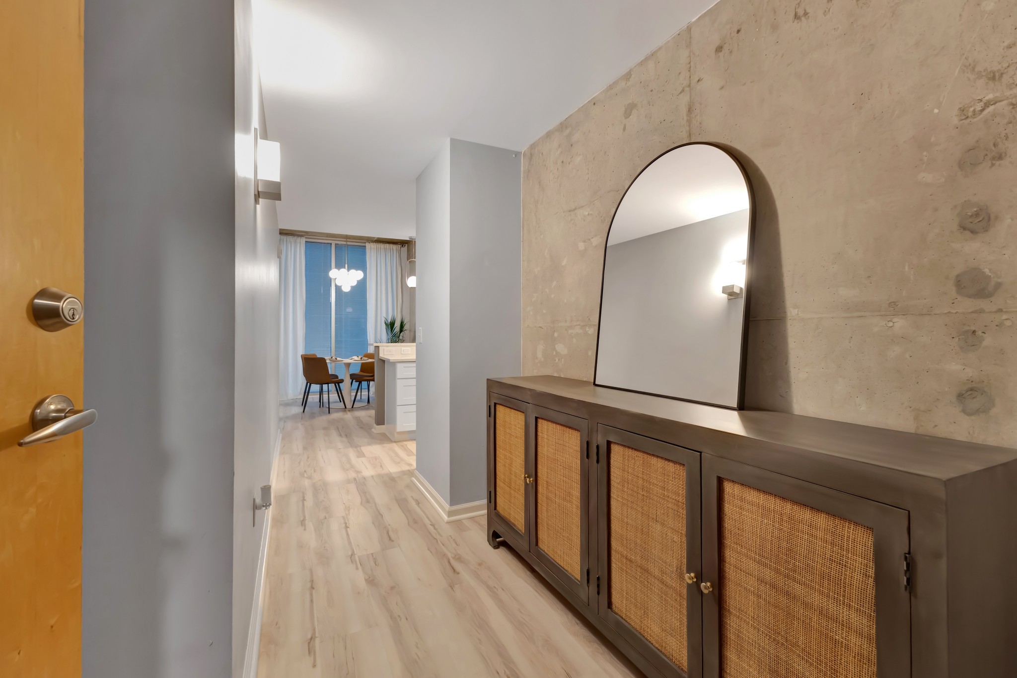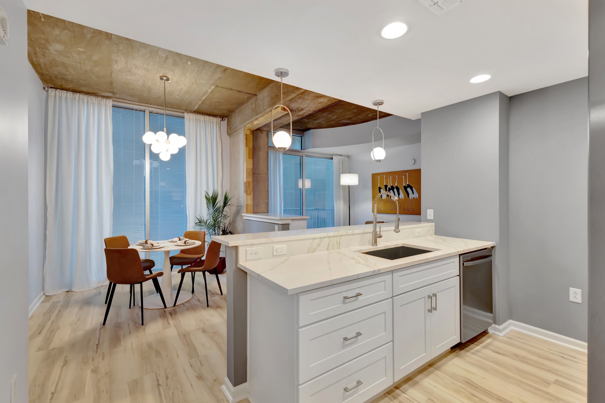 Soaring high on the 18th floor, this stunning 1 bedroom, 1 bath condo delivers breathtaking, uninterrupted skyline views framed by dramatic floor-to-ceiling windows. Step inside to an all-new, designer-curated renovation featuring: