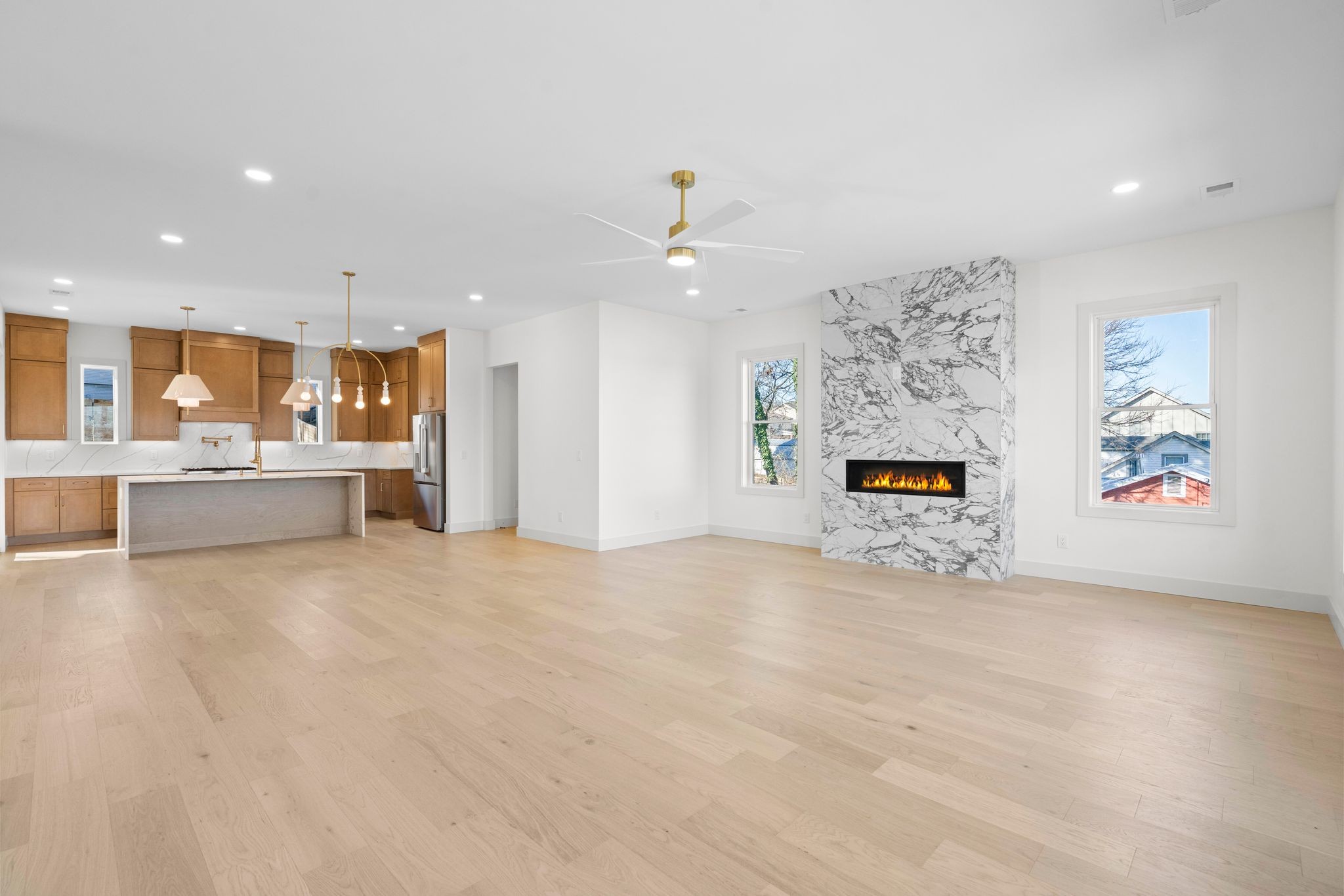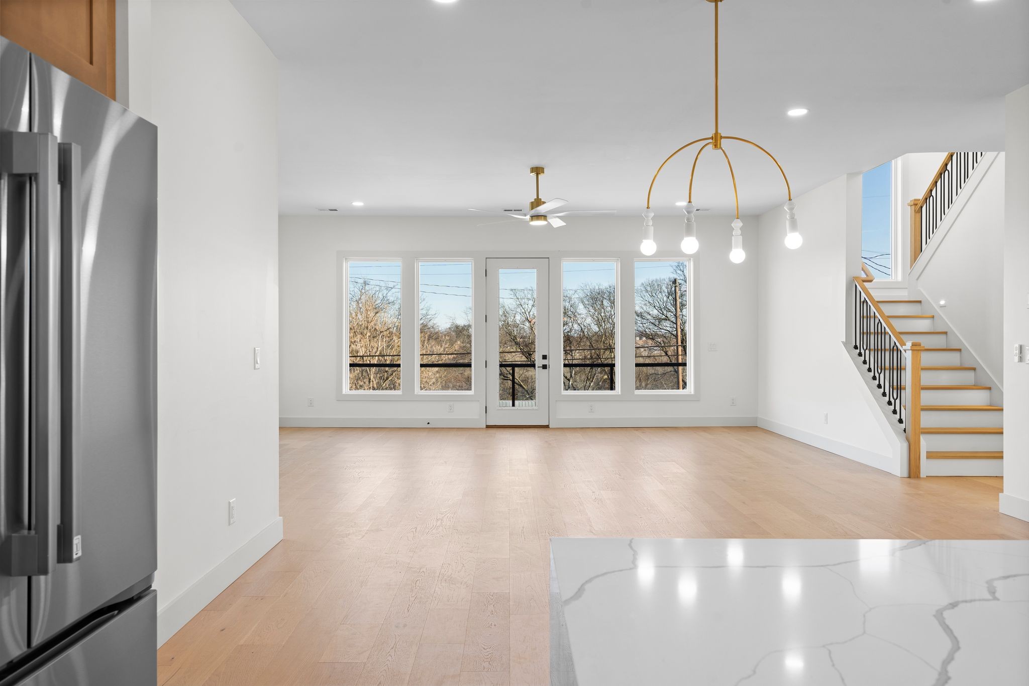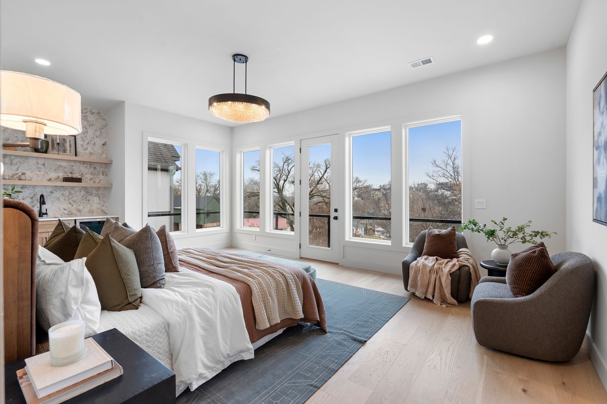 Modern architecture, MOVE-IN READY new construction by Brass Tacks Construction just 2.5 Miles from the future Oracle Campus and River North, and 1.5 Miles from the future Central Waterfront district! The 3,795 SF home features 5 bedrooms, 4 full baths, 1 half-bath, and showcases a thoughtfully designed layout with high-end finishes throughout. The designer decorated open living area/kitchen/dining floor plan is perfect for entertaining, and the prep-kitchen allows additional space to keep the mess out of sight of your guests. The main level features a panoply of windows, fireplace, bedroom with an entrance to the rear covered patio, and covered front balcony. The second level features the primary bedroom with incredible views, plus a wet-bar and private owner's balcony! The basement features a 1 bed 1 bath studio apartment for use as an office, in-law suite, or *owner-occupied Airbnb*!