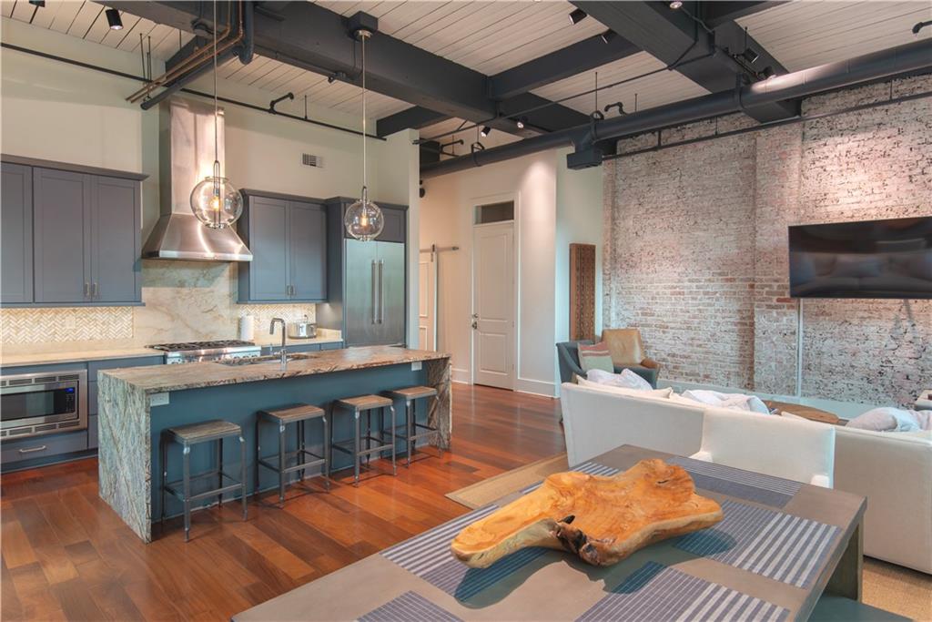 Take an elevator straight into your luxury condo, perfectly situated in the heart of the vibrant South Market District. This historic warehouse has been beautifully transformed into a luxury mixed-use property permitted for short-term rental. The unit’s private elevator access, controlled entry, refined interior, and limited number of total units (3) provide unmatched sophistication, privacy, and security. Inside, exposed brick, original wood beams, and oversized industrial windows frame a sleek modern design, elevated with Brazilian walnut floors, stunning uniquely selected marble baths, granite and marble countertops in all bathrooms and kitchens, professional grade Thermador appliances with gas cooking, two Nest thermostat controlled HVAC zones, and designer Delta and Brizo fixtures and lighting accents throughout. Windows are custom sized, large, double hung, and double paned/insulated, allowing for excellent insulation benefits. With award-winning restaurants, lively bars, shopping, and a full-service grocery just outside your door, every convenience is only steps away. Just three blocks away, the Caesars Superdome and Smoothie King Center bring world-class events like Saints and Pelicans games, tailgating, and concerts to your backyard. The nearby French Quarter and Warehouse/Arts District offer endless opportunities to explore, from Julia Street art galleries and The Ogden Museum to the National WWII Museum, plus hundreds of restaurants and bars within walking distance. Furniture can be made available for additional purchase. HOA includes exterior property and flood insurance, pest control, water, gas, fiber optic internet (1GB Speeds), security, and common area utilities/maintenance, including the elevator. STR revenue and occupancy rates available upon request.