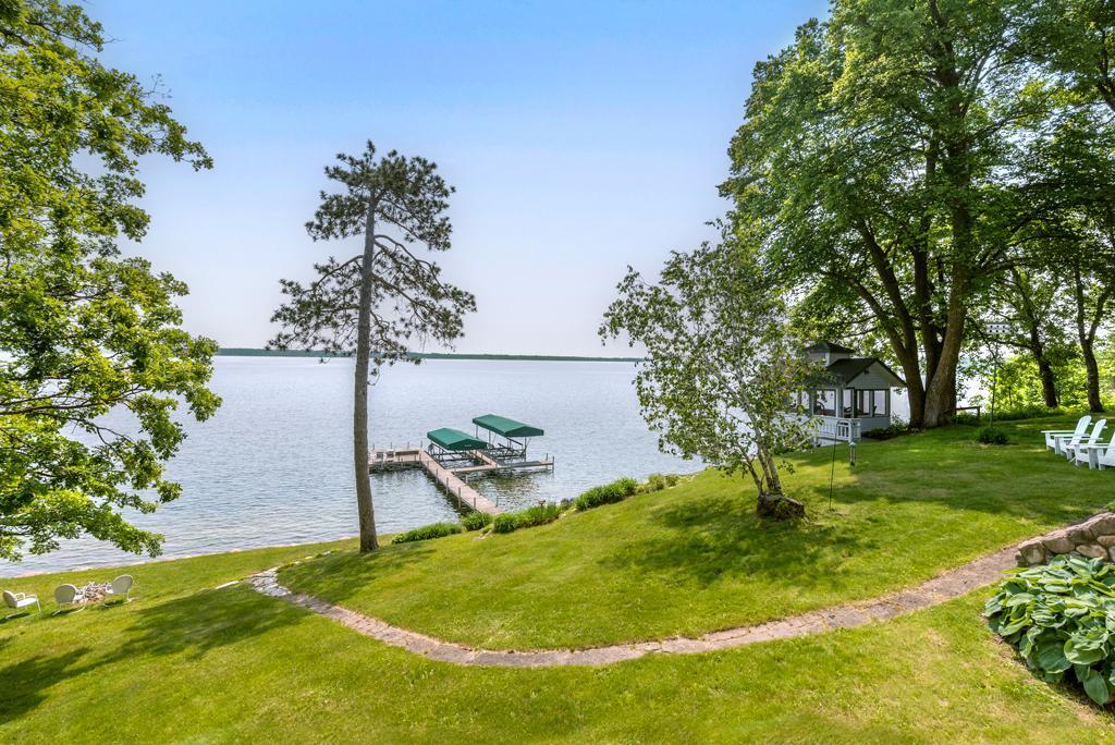Discover timeless charm with modern comforts in this beautifully updated 5-bedroom, 3-bath Gull Lake Cottage situated on 133’ of premier lakeshore with easy elevation to an excellent sand lake bottom, a rip-wrapped shoreline with stunning Big-Lake views and it’s located on one of the most sought-after areas on the entire chain. Step into the bright and inviting entry that showcases gorgeous Douglas Fir hardwood floors, vaulted and beamed ceilings, a kitchen with custom Walnut countertops-a farm style sink-a slate backsplash and top-of-the-line Bosch stainless steel appliances. The lakeside dining area and adjoining sunroom/family room feature knotty pine tongue and groove throughout and provide incredible panoramic lake views through a wall of glass…ideal for relaxed mornings or hosting family and friends. Two main-level bedrooms offer comfort and convenience, while the upper-level hosts three additional bedrooms, a full bath and an open connecting loft…perfect kids hide-away. Located just off the front of the cottage is a charming wet bar room…once the original cabin’s kitchen…this has been thoughtfully preserved and integrated into the home’s updated design. Outside the property continues to impress with nearly an acre of spectacular park-like grounds, lush perennial gardens, a picturesque setting surrounded by a majestic mix of mature trees and one of Gull Lake’s most recognized 2-Story Boathouses on the water’s edge creating the perfect space for lakeside entertaining…especially when enjoying the spectacular Fourth of July fireworks from Grand View Lodge, Madden’s Resort and Cragun’s Resort…all visible at the same time. Legacy properties like this don’t come available very often…truly an AMAZING UP-NORTH GETAWAY!