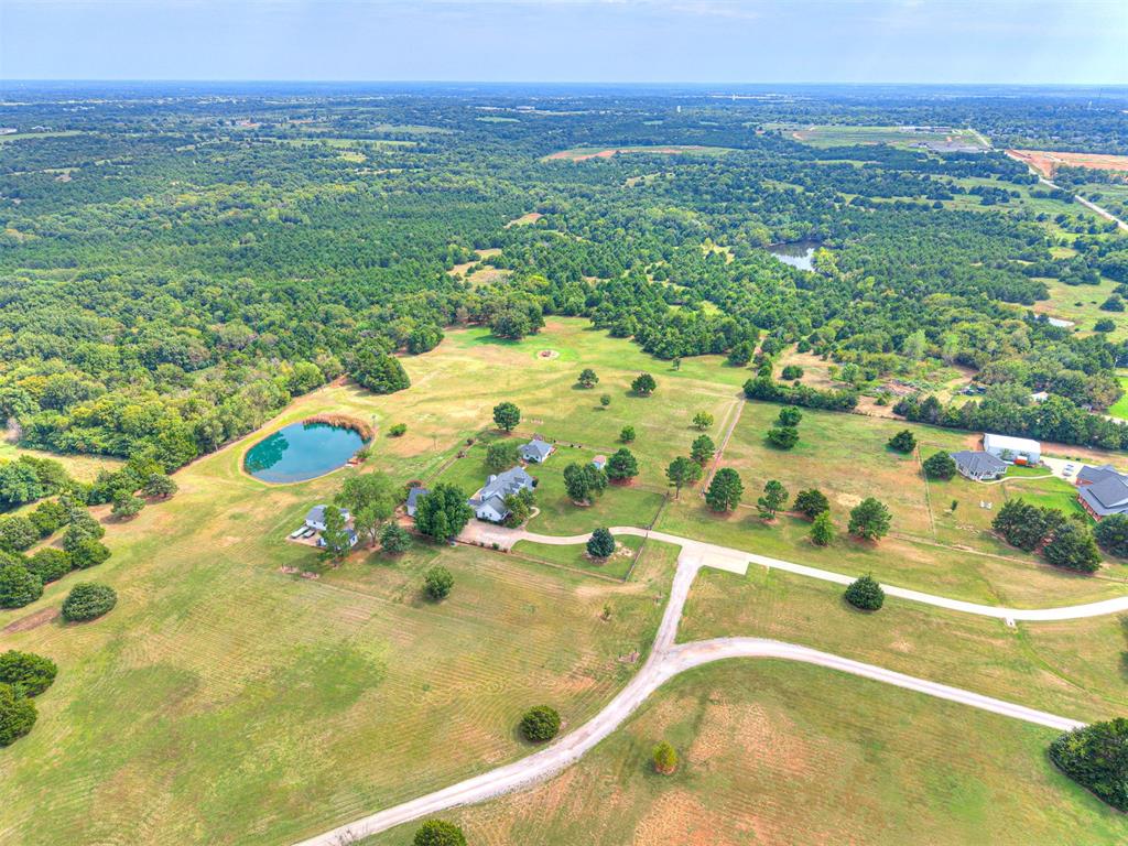 Talk about being able to own a personal PARK!!! Not only is the main home stunning with a great view of the pond, there are 2 shops, a stand alone guest house, and a studio apartment located above the detached 2 car garage on 13.81 acres. PLUS, the location just cannot be beat! As soon as you enter the property, you will see and feel the meticulous care. The house is private with over a 1,000 feet of a concrete drive and plenty of extra parking. The main home features a beautifully remodeled kitchen with marble counter tops, new flooring and new appliances. The butler's pantry is dreamy with an additional sink, a beverage cooler and plenty of extra storage. The main living and primary bedroom have been updated with paint and gorgeous wood flooring! The primary bedroom is large and leads to the remodeled, spa-like ensuite bathroom. This bathroom features floor to ceiling tile, double sinks, freestanding bathtub and a frameless shower. On the main level there is also a flex space area that features a double sided fireplace, a secondary dining room that is currently being used as the office, a craft area with the laundry room and a half bathroom. The upstairs has 2 bedrooms with a shared bathroom. The attic access is convenient and leads to plenty of extra storage. The detached garage is connected through a covered walk-way, and contains a walk-in storm shelter. It has a studio apartment (roughly an additional 360 sq ft of living space) on the second level with additional heated and cooled space that could be turned into a bedroom. The separate guest house is great with roughly 672 sq ft of living space! It features a screened in porch, a full kitchen with eat-in space, the shower is zero entry or curb-less, and this house even has its own storage shed.