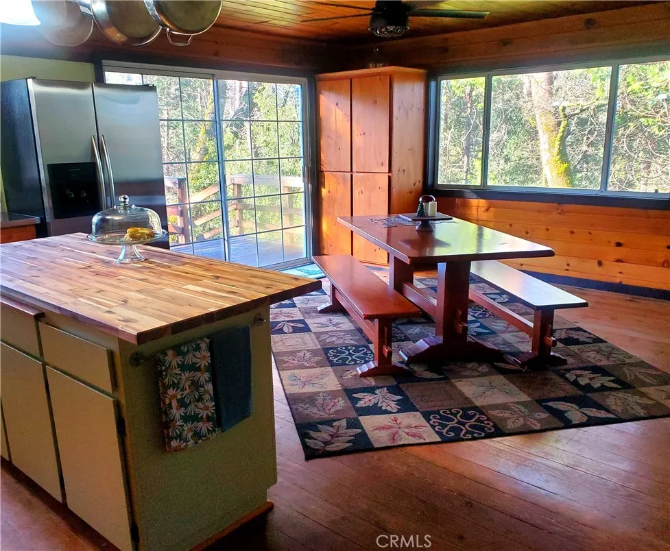 Seller to offer credit for rate buy down! This is the perfect mountain cabin at the end of the rainbow! Located near Yosemite, Bass Lake, the Sierra National Forest, and the Sierra Vista Scenic Byway, this home is perfect for outdoor enthusiasts of all kinds, or those who just want to escape the summer heat of the valley, or enjoy a bit of winter snow. This adorably updated hillside cabin has a bedroom/bathroom on each of its 3 levels, with a big back deck looking out over mountain views, a cozy propane woodstove, and the lovely rushing sound of nearby Prohibition Creek rising up from below. Wood floors, a skylight in the master bath, a wonderful window over the sink, an island kitchen, wood beam ceilings, and a lovely private wooded and mountain view out the back are just some of the things you'll love. The main home is 2br/2ba, with a 1br/1ba suite downstairs with a separate entrance from the back of the house. The lower level has a remodeled bathroom with two partly unfinished rooms, perfect for creating an attached apartment with a little work, or use it as a yoga, art, or music studio, or a home work space. The main entrance is on the 2nd story, which is level with the front of the house, and upstairs is a large lovely master suite with a skylight in the bathroom. The kitchen, dining room and living room are on the main entry level (2nd floor). Located in Cascadel Woods, the home is at a higher elevation for cooler summers, and surrounded by USFS lands with trails, waterfalls, swimming holes and more! This neighborhood is in an expired HOA, and the County now maintains