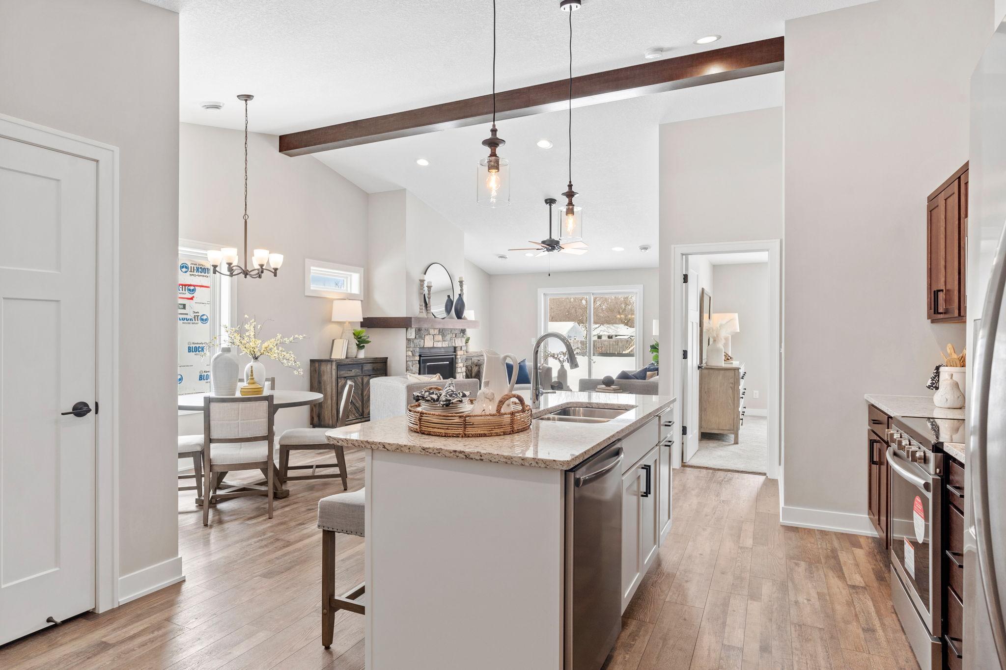 Welcome to Delaware Place! Hard to find slab on grade townhomes! Only 10 homes in this associated maintained development! All on one level! Huge owner suite with a private bath, double sinks, large walk-in closets, vaulted ceilings, stainless steel appliances, granite countertops, options like a gas fireplace, in floor heating, tiled shower and much much more. Model Open Sundays 12-3