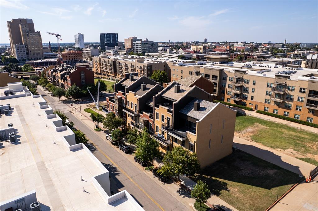An urban home designed for the way you want to live today. Located in Oklahoma City’s vibrant Deep Deuce District, this new three-story Maywood Brownstone combines modern luxury with timeless architectural style. Designed for both comfort and style, the home offers expansive living spaces, high-end finishes and the convenience of an elevator that serves every level. The layout spans three thoughtfully designed floors, providing room for both relaxation and entertaining. The private elevator makes moving between levels effortless, while the open floor plan connects the living, dining and kitchen areas in a way that feels inviting and airy. Twenty-two foot ceilings and abundant windows fill the main living space with natural light. The master suite is a true retreat with its spa-like bath featuring a soaking tub, walk-in shower, double vanity and custom finishes. A private patio frames skyline views of Downtown Oklahoma City for morning coffee or evening sunsets. Every detail of this Maywood Brownstone reflects quality, from elegant hardwood floors to designer lighting. Solid concrete construction with insulated foam keeps the home quiet and energy efficient. Additional upgrades include premium appliances, thoughtfully finished interiors and the convenience of a two-car attached garage, an uncommon find in downtown living. Living in Deep Deuce places you minutes from dining, shopping and entertainment. It’s a home that balances urban energy with everyday ease. The owner also has additional residences available and will do a long-term lease. Maywood Brownstones, ready for the way you want to live.