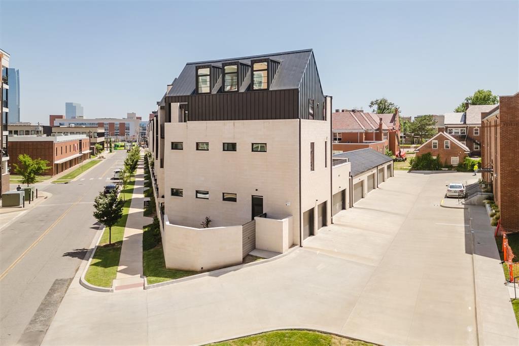Experience Villa Teresa- a state-of-the-art condominium development in the heart of Midtown, set to the backdrop of the downtown OKC skyline. 1327 N. Dewey Avenue is a spacious tri-level home, carefully designed with use the finest materials and finishes. Villa Teresa's contemporary architecture is embodied in this 3 bed, 3 full bath, 1 half bath, and soaring ceilings throughout. This exquisite home boasts 2030 SF of living space, two car garage, and front terrace as well as stunning views of Midtown from the living room and 3rd floor balcony. The design created by Fitzsimmons Architects is a modern reflection of the historic neighborhood. This unit boasts custom cabinets, Blanco Kitchen Faucet & Sink, Miele Appliance package, Toto & Symmons fixtures, Lutron Automated lighting system, elevator, automatic shades, custom drapery, heated primary bathroom floor and custom California Closet. Contemporary architecture & serene courtyards make up a self-contained sanctuary of tri-level townhomes & fashionable flats that have re-imagined the lifestyle of a Midtown resident.