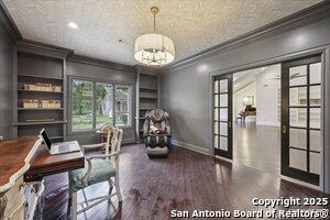 Step inside this stunning property perfectly situated on nearly 10 acres complete with 2 ponds. Upon entering, the spacious foyer and living room greet you with soaring ceilings and an expanse of French doors. The large chef's kitchen, 2 dining spaces and 225sf pantry make this home perfect for entertaining. The kitchen offers high end appliances, tons of storage, and unique custom details including stove hood and unique island. The butler's pantry is a showcase of design and function with storage, wine fridge, icemaker and more. The primary retreat features a gorgeous soaking tub and walk'thru shower with dual rainheads. The retreat also feature a must-see custom walk thru closet. From the primary bedroom step into a beautiful courtyard featuring it's own greenhouse.The attached apartment features a fully equipped kitchen, living room, two bedrooms, private entrance and covered porch, & parking. So many additional features make this a one of a kind estate.