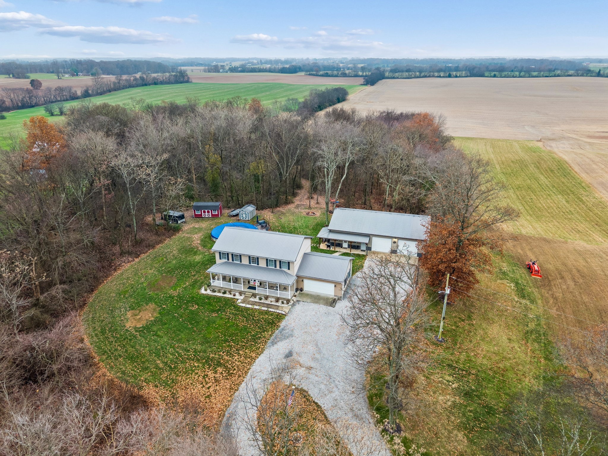 Take the winding driveway to your private retreat with this magnificent 4 bedroom, 2.5 bath home on 10 ACRES! As soon as you enter the home, you're greeted with high ceilings and an open foyer. Straight ahead you'll find the dining room and leading into the beautiful kitchen with lots of counter and cabinet space. Next, you'll wrap around into the cozy living room giving the downstairs a seamless flow. The primary bedroom is also on the main level containing a large walk-in closet and a completely remodeled bathroom with a stand up shower and 2 shower heads. Heading upstairs, you will find a spacious bonus room and 3 extra large bedrooms with a full bath. In the backyard is a 2,400 SqFt shop with 220v amp and its own half bath. This shop has an attached 1 bedroom 1 bath 800 SqFt apartment with a full kitchen, perfect for in-laws, a guest house, or extra rental income. There are beautiful trails throughout the wooded area of the property. Located about 45 minutes from Broadway, 15 minutes from Portland, White House, or Franklin Ky. The 10 acres consists of a 4 acre field, 4 acres of woods, and about 2 acres front and back yard.