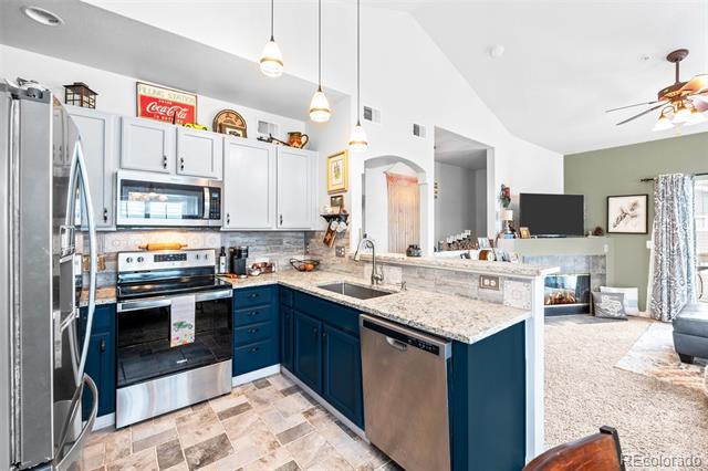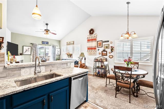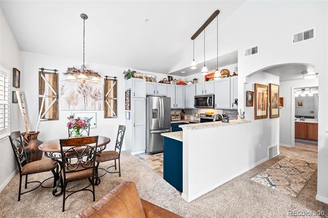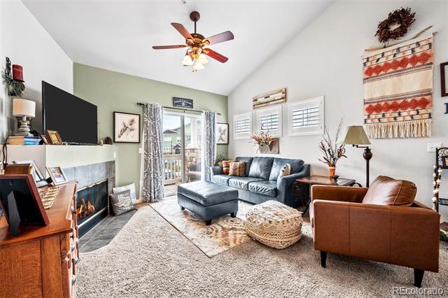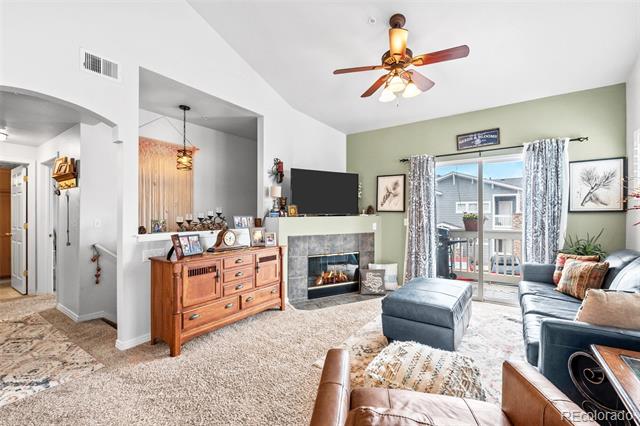 Townhome Style Living w/NO EXTERIOR STAIRS or Walk-ways! Avoid the Unpredictable Weather and ENTER RIGHT INTO YOUR HOME & PARK RIGHT IN FRONT w/Nearly 20 Shared Parking Spaces PLUS Your Own Reserved Space! Inside; Enjoy the VERY OPEN CONCEPT FLOOR PLAN with VAULTED GREAT ROOM and VAULTED SPACIOUS BEDROOMS! In Coveted Highlands at Stonegate; Featuring a Sunny Outdoor Balcony*a Beautifully Remodeled Kitchen w/SLAB GRANITE Countertops*Newer Stainless Steel Appliances, Under-Counter Sink, Stainless Faucet*Tile Flooring & Pantry! Other Highlights Include: Large REMODELED Bathrooms*QUARTZ Countertops*PLANTATION SHUTTERS*Paneled Doors*Gas Fireplace*Central AC and a Vaulted Primary Suite w/Enormous Walk-in Closet! Positioned on a PRIME SUNNY END Location with a Reserved Parking Space and Loads of Guest Parking! Just a Short Jaunt to DIA and DTC and Minutes From Park Meadows Mall & Historic Downtown Parker! Enjoy 3 Swimming Pools, a Club House, Miles of Trails and Multiple Parks!