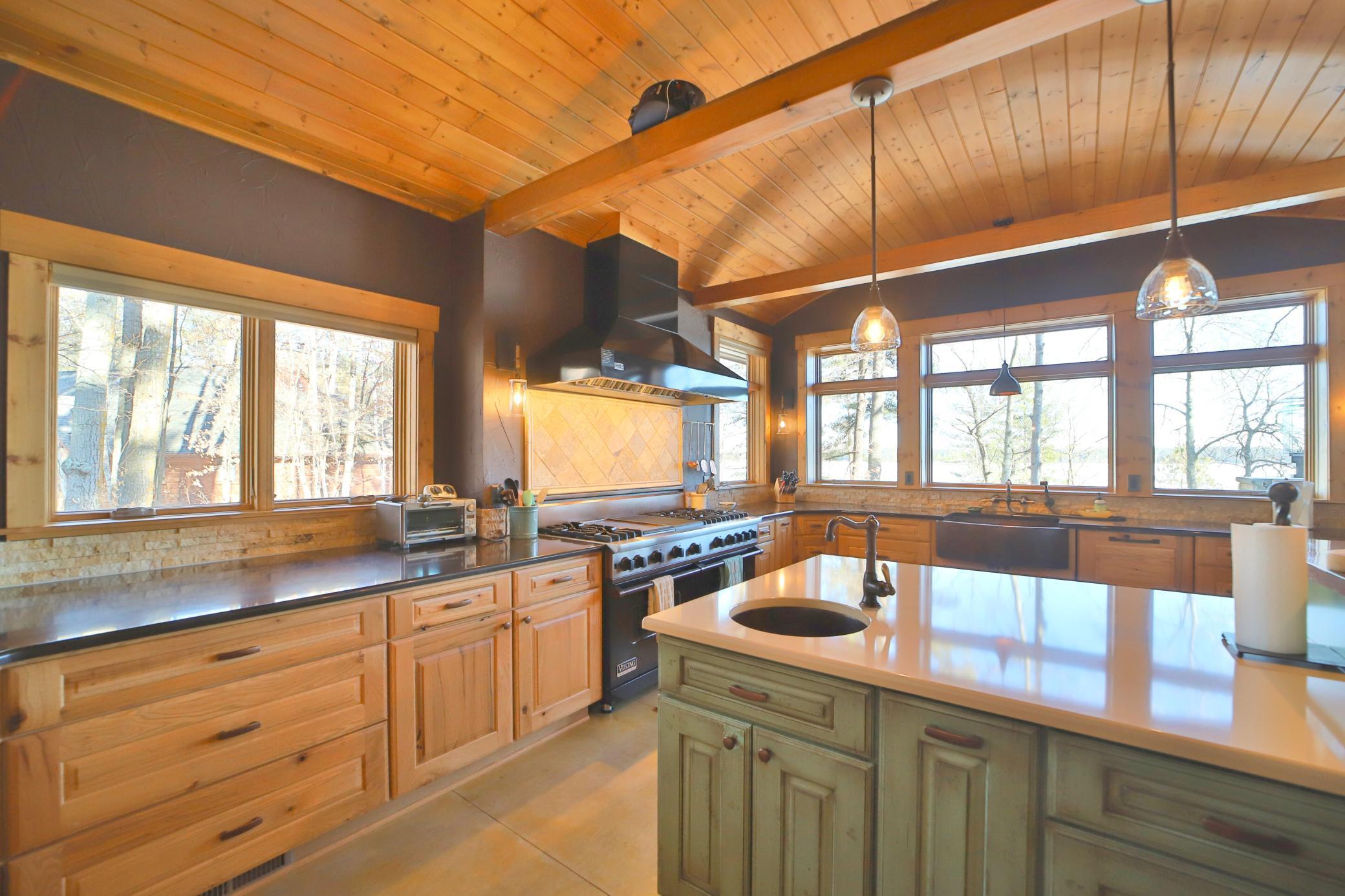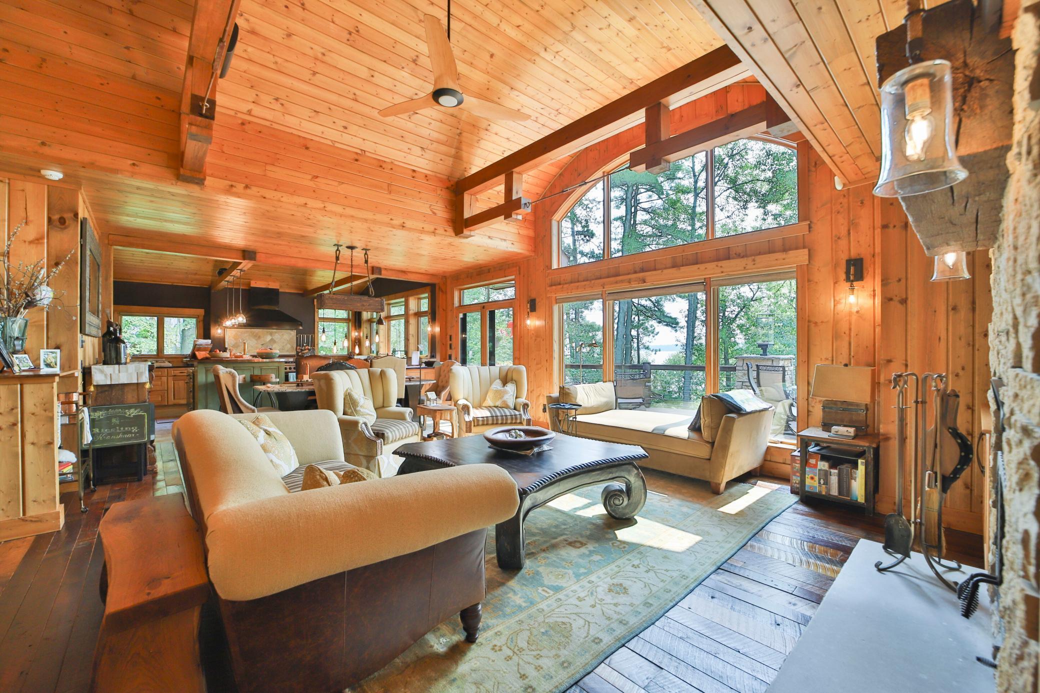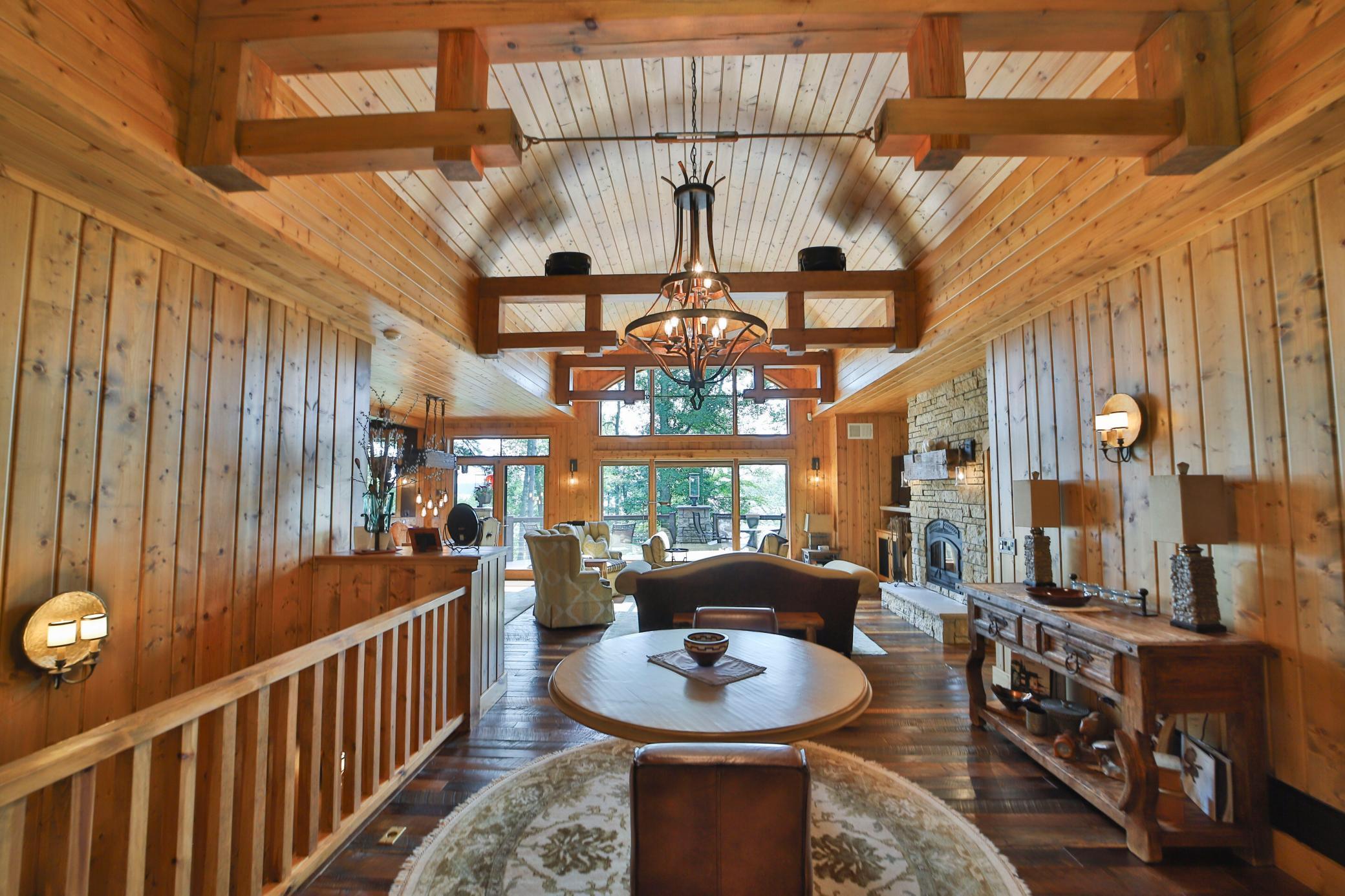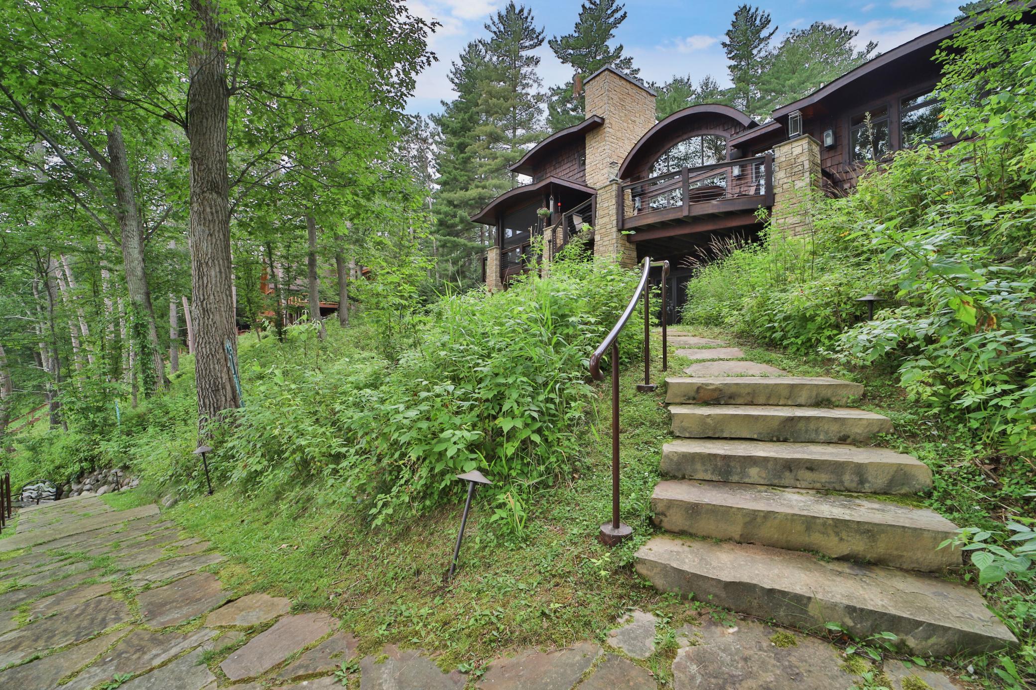 Don't miss this incredible 4+ bedroom, five bath Trout Lake home. Property features 150' of shoreline and sits on a private, wooded 2+ acre lot. Home has great details and features reclaimed wood floors, Cambria countertops in the kitchen and granite countertops in the bathrooms, many custom built-ins, vaulted beamed ceilings, an impressive two-story entryway, elevator, primary bedroom with a private bath and a loft/library area, screened-in sleeping bedroom off of the primary bedroom, tiled showers, wet bar, a full finished walkout basement, temperature controlled wine room, theater room, large lake-side deck, a year-round two bedroom, two bath guest house, generator, raised bed gardens, professionally landscaped, fire pit that is hooked up to natural gas and so much more.