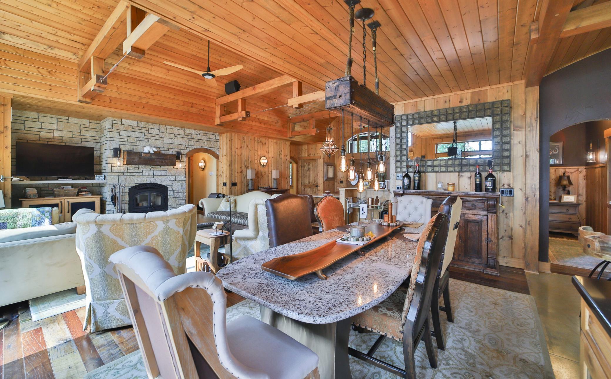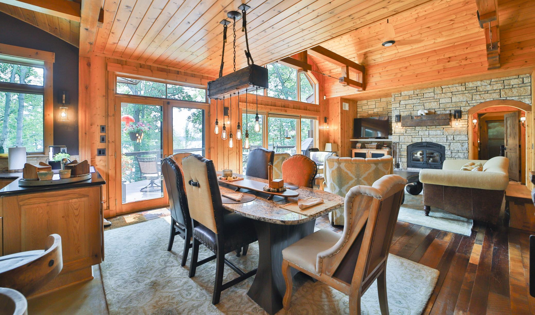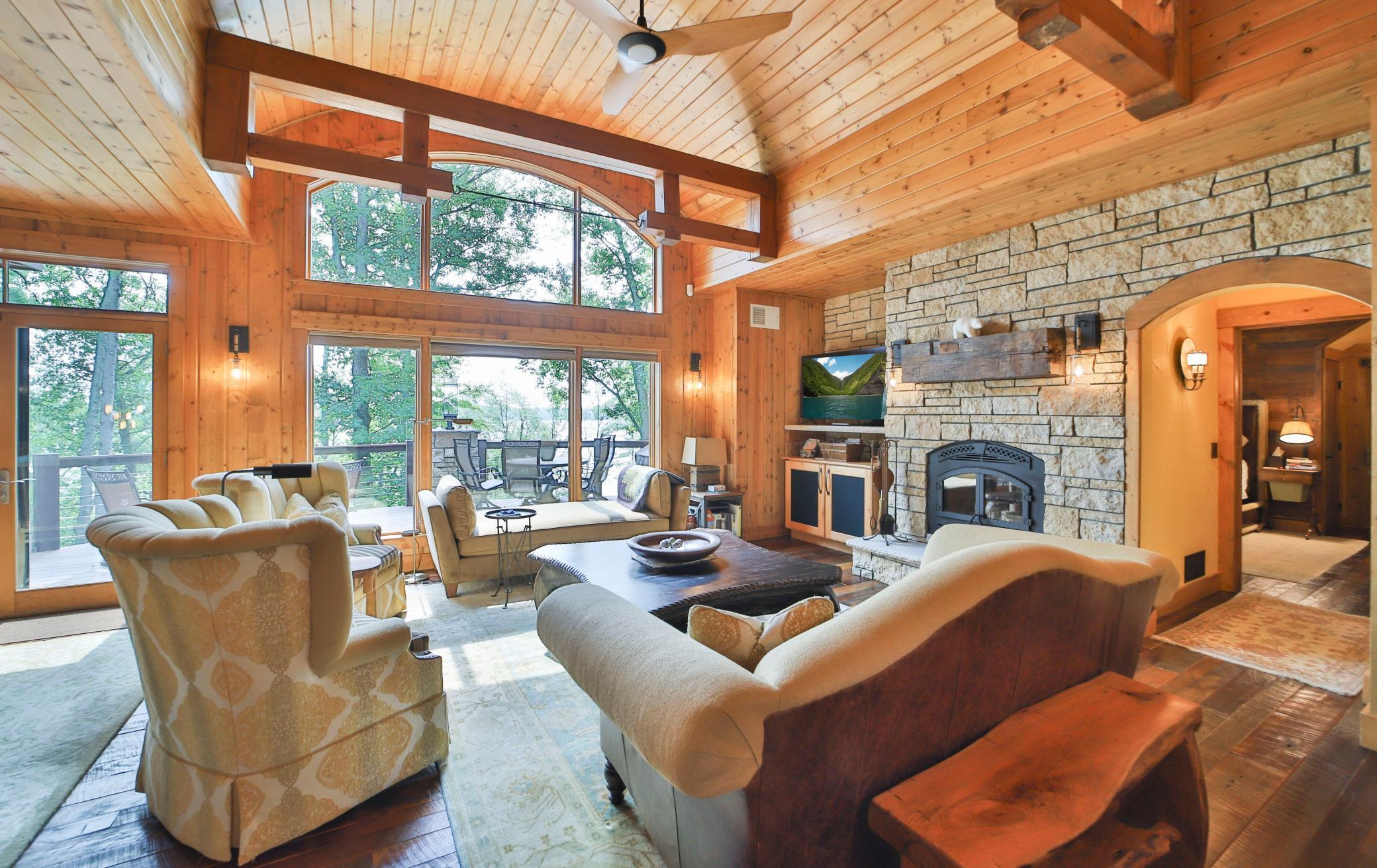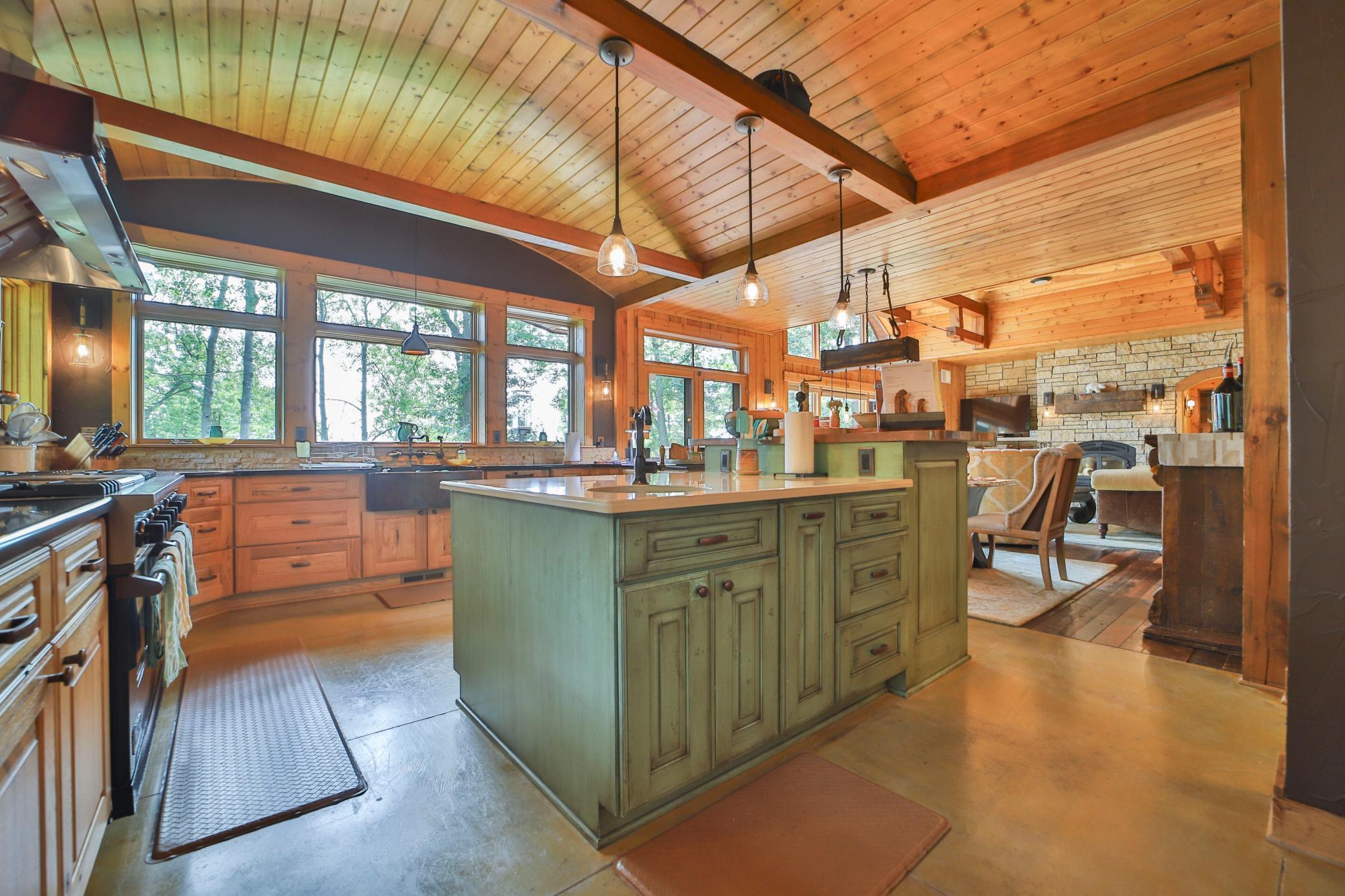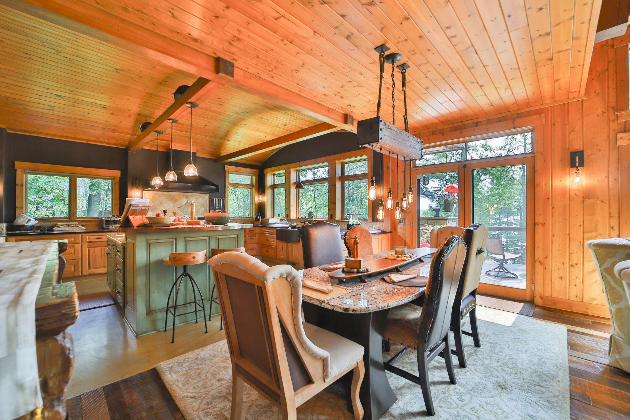 Don't miss this incredible 4+ bedroom, five bath Trout Lake home. Property features 150' of shoreline and sits on a private, wooded 2+ acre lot. Home has great details and features reclaimed wood floors, Cambria countertops in the kitchen and granite countertops in the bathrooms, many custom built-ins, vaulted beamed ceilings, an impressive two-story entryway, elevator, primary bedroom with a private bath and a loft/library area, screened-in sleeping bedroom off of the primary bedroom, tiled showers, wet bar, a full finished walkout basement, temperature controlled wine room, theater room, large lake-side deck, a year-round two bedroom, two bath guest house, generator, raised bed gardens, professionally landscaped, fire pit that is hooked up to natural gas and so much more.
