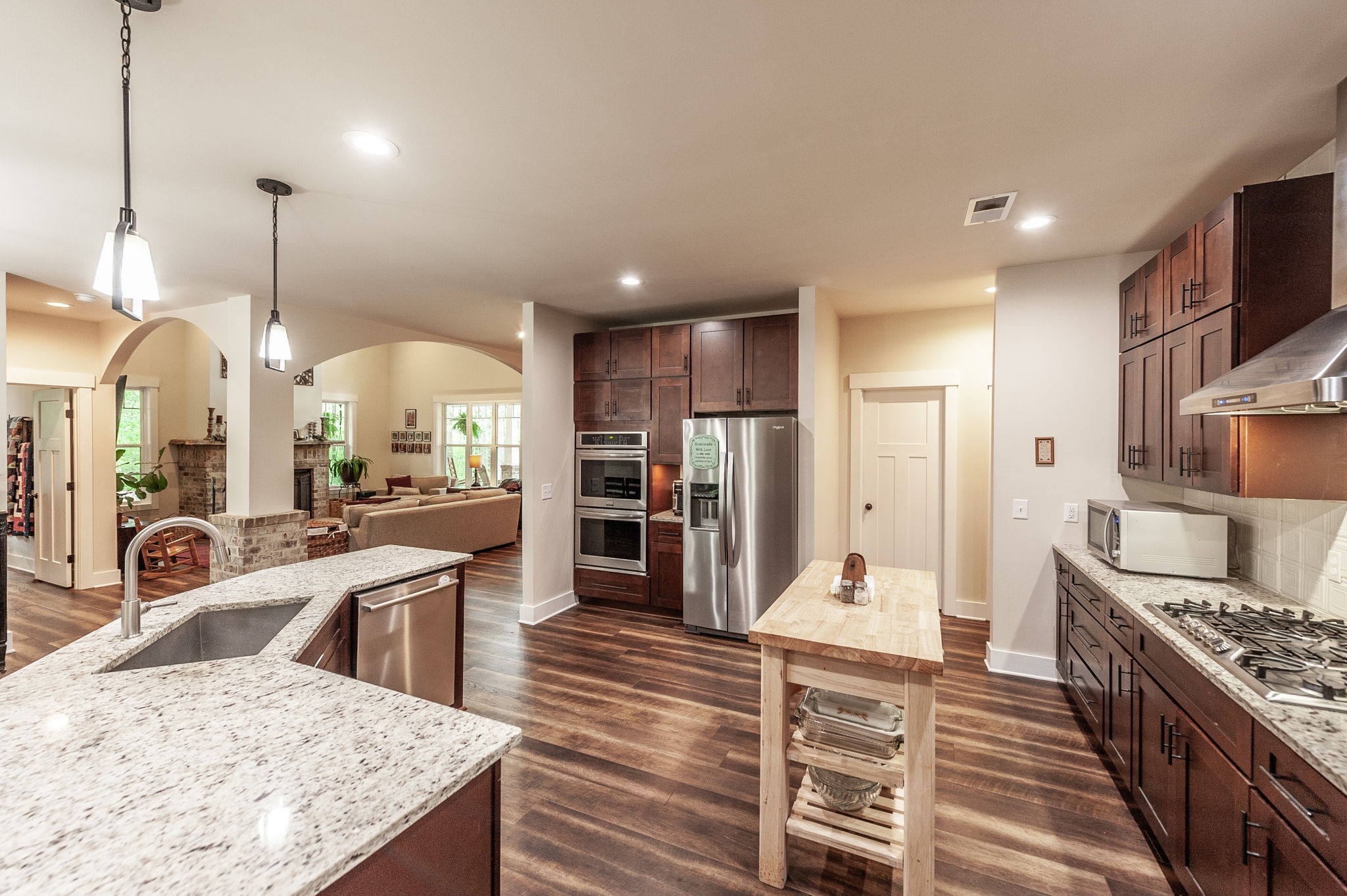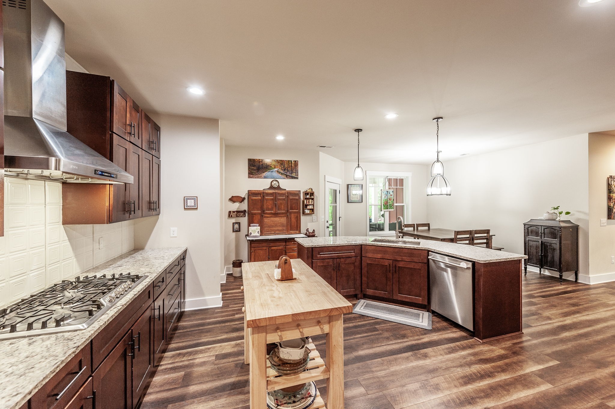 PREFERRED LENDER OFFERING A 1% LENDER CREDIT BASED UPON LOAN AMOUNT AND FREE APPRAISAL. Discover peace and privacy in this beautiful, custom-built home nestled on a sprawling 12-acre wooded lot. This home features a charming covered wraparound porch and patio, perfect for relaxing or entertaining year-round! Open-concept floor plan with soaring ceilings in the living room and a cozy wood-burning fireplace. Four bedrooms and an office that could be a 5th bedroom! The eat-in kitchen is equipped with stainless steel appliances, a gas range, double ovens, a central island, and ample cabinetry and pantry! Primary suite is complete with vaulted ceilings, a private sitting area, a spa-like bathroom with a tub, a walk-in tile shower, and double vanities. Upstairs, a versatile in-law suite or guest apartment awaits, featuring a full bathroom, kitchenette, and skylights! Additional highlights include a 344 sq. ft. workshop with electricity, fresh paint throughout, and plenty of space to build your dream detached garage! A rare opportunity for secluded living with all the modern conveniences!