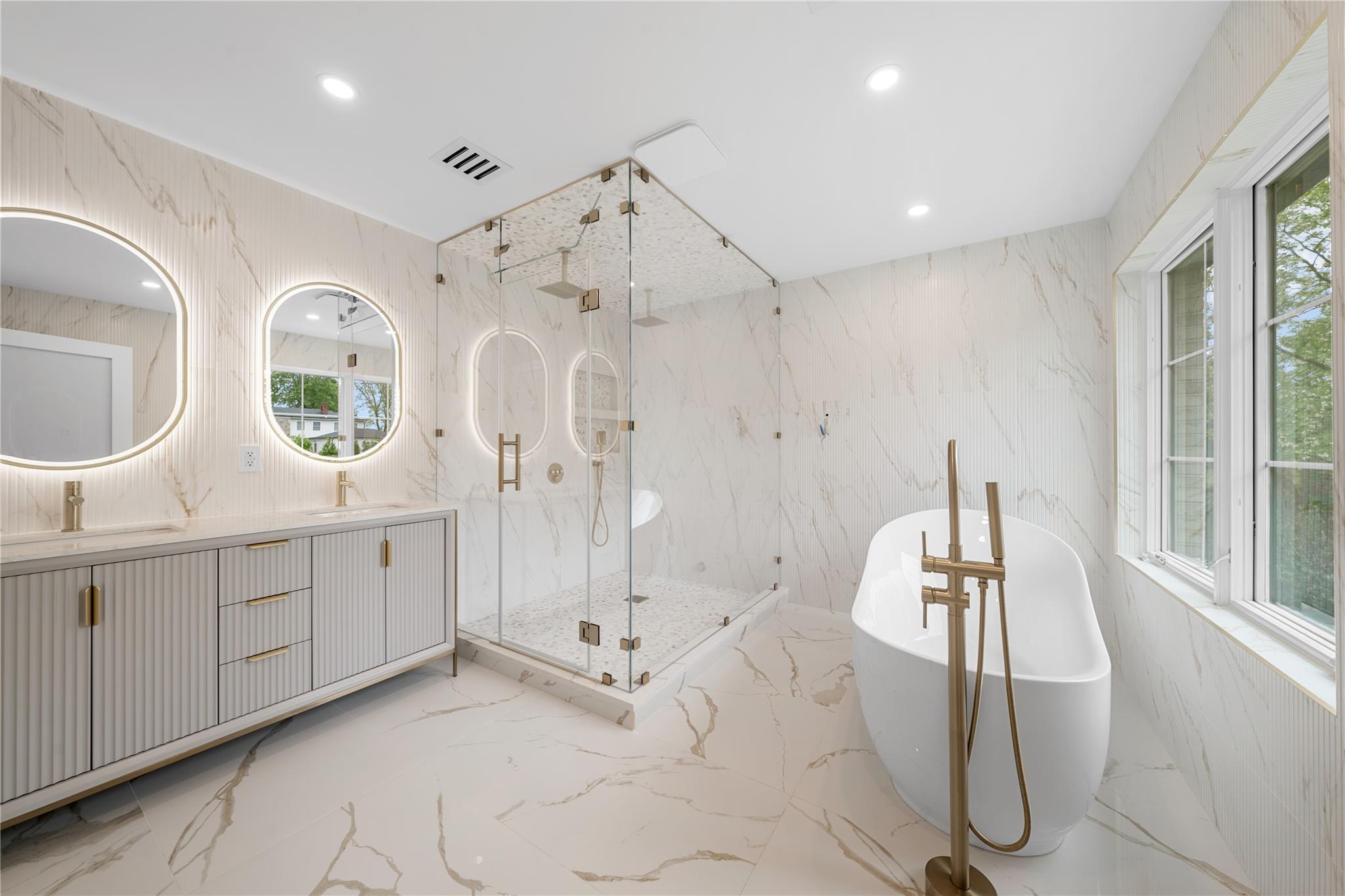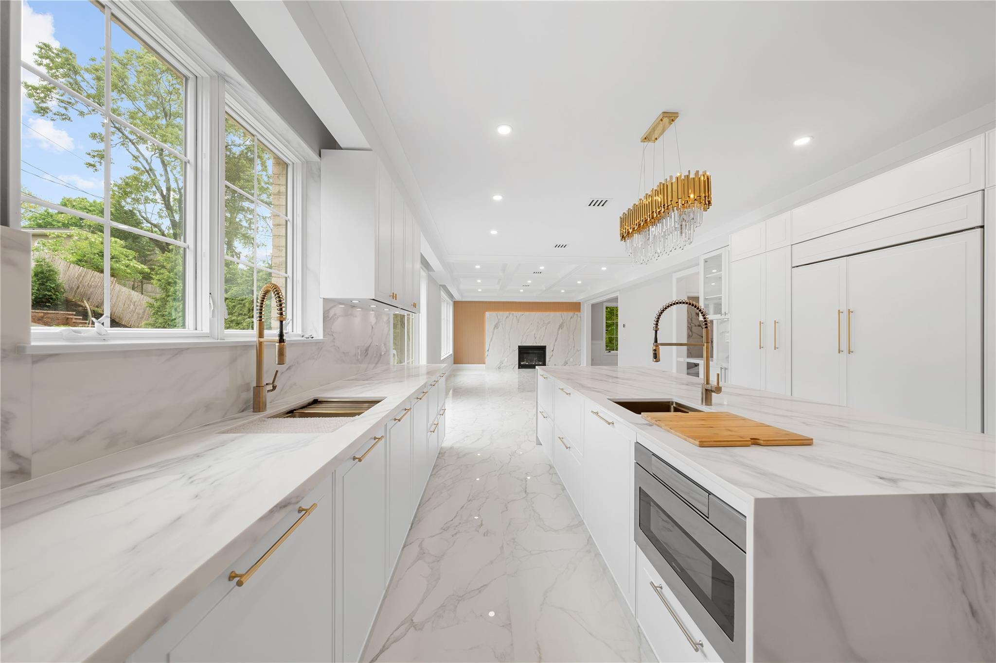 Coming Soon!! Don't Miss This – Exquisite New Construction in Roslyn Country Club Nestled within the esteemed Roslyn Country Club, this newly constructed 6-bedroom, 6.5-bathroom estate epitomizes luxury living. From its meticulously landscaped grounds to its thoughtfully designed interiors, every aspect of this home has been crafted with precision and elegance. Exterior Highlights: Professionally Landscaped Grounds: The property boasts a vast backyard adorned with a uniquely designed retaining wall, offering both beauty and functionality. Circular Paved Driveway: A grand entrance featuring a circular driveway leads to a sleek, modern garage door, enhancing the home's curb appeal. Outdoor Entertainment Potential: The expansive backyard offers ample space for a custom pool and a fully equipped outdoor kitchen, creating an ideal setting for hosting gatherings and enjoying outdoor living. State-of-the-Art Lighting: Exterior lighting has been thoughtfully integrated to illuminate the property's architectural features and landscaping, creating a captivating ambiance during evening hours. Interior Features: Grand Double-Height Foyer: Upon entry through the custom double iron doors, you're greeted by a soaring foyer that sets the tone for the home's expansive and airy design. Contemporary Glass Panel Staircase & Chandelier: A stunning glass panel staircase serves as a centerpiece, complemented by a beautiful chandelier that adds a touch of modern elegance to the entryway. Abundant Natural Light: Large windows throughout the residence flood each room with natural light, highlighting the home's exquisite details. Gourmet Kitchen: The heart of the home features Italian-made cabinetry, quartz countertops, a waterfall island, and top-of-the-line appliances, perfect for culinary enthusiasts. Elegant Dining Area: Adjacent to the kitchen, the dining space showcases coffered ceilings and a custom bar shelf, ideal for entertaining guests. Luxurious Living Spaces: The living room is anchored by a gas fireplace set against a stylish accent wall, complemented by intricate trims and moldings throughout. First-Floor Bedroom Suite: A spacious bedroom with an en-suite bathroom is conveniently located on the first floor, featuring sliding glass doors that open directly to the backyard. This design provides seamless indoor-outdoor access, enhancing the living experience and offering versatility for guests or multi-generational living. Radiant Heat Flooring: Experience comfort with radiant heat flooring spanning the entire first level, basement, and all second-floor bathrooms. Custom Closets: Each bedroom is equipped with custom-made closets, providing ample storage and organization. Master Suite Sanctuary: The master suite is a luxurious haven, boasting a spa-like bathroom complete with a soaking tub and a spacious shower stall featuring dual overhead showers. The master closet is thoughtfully designed with mirrored doors and ample space, offering both functionality and elegance. Finished Basement: Separate Outdoor Entry: The fully finished basement features a private entrance, offering versatility for use as a guest suite, home office, or entertainment area. Natural Light & Open Space: High ceilings and large windows ensure the basement is bathed in natural light, creating an inviting atmosphere that defies traditional basement expectations. Home Theater Potential: A dedicated room with double French doors awaits your customization as a state-of-the-art home theater, providing the perfect space for movie nights and entertainment. This exceptional property combines timeless elegance with modern sophistication, offering an unparalleled living experience in Roslyn Heights. Don't miss the opportunity to make this dream home yours. Schedule your private tour today!