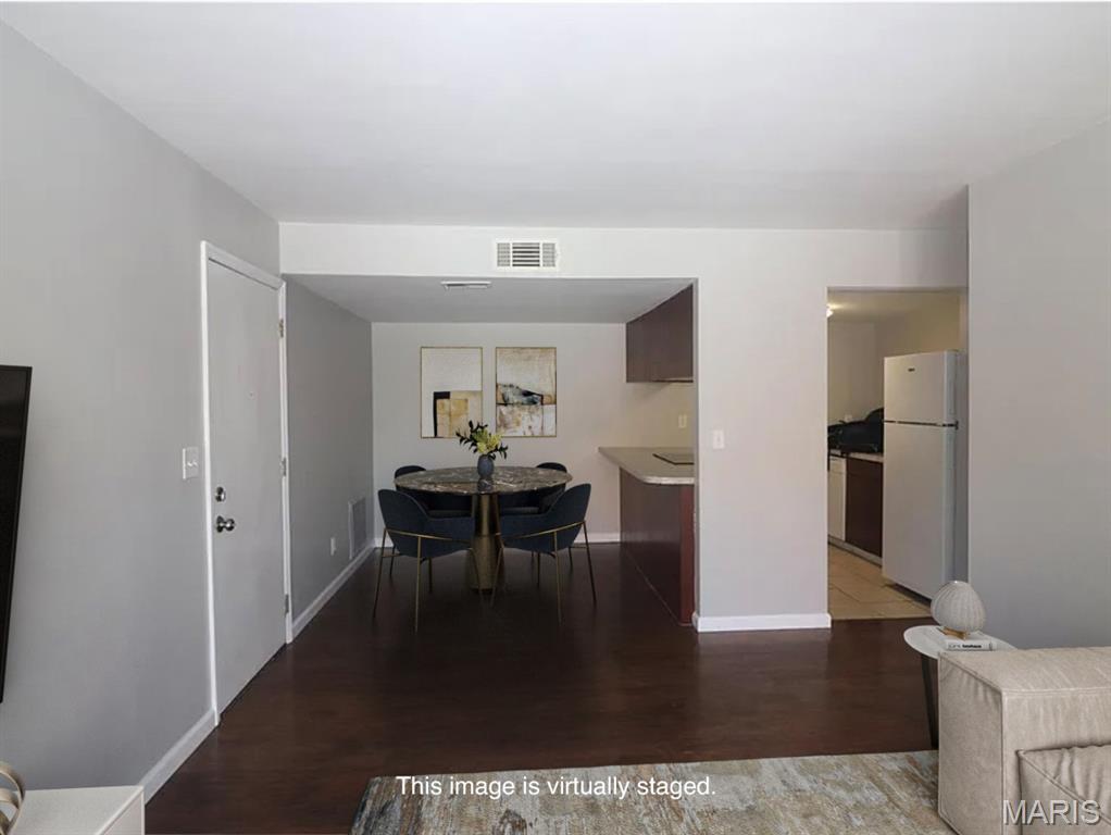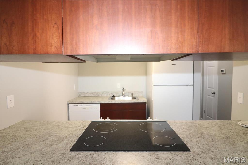 Updated condo, in the Mehlville School District. Heatherbrook Condos off Forder Road. 2 bedrooms and 1 bath. Second Floor. This condo is clean, clean, clean. Laminate wood floors. Brand new carpeting. Freshly painted with neutral colors throughout. Large living room with extra wide sliding glass door that leads to private balcony. Separate dining room. The kitchen has ceramic tile floor, a new dishwasher and a new garbage disposal and the refrigerator stays. Two large bedrooms, one with a walk in closet. The bathroom is updated . There are "In-Unit" full size washer and dryer, that stay. The HVAC System was replaced in 2022. Only 2 years old. The electrical wiring is up to code. Passed St. Louis County Occupancy. No FHA, Pets allowed. Can be rented with board approval. Beautiful Pool and Tennis Courts for the Summer. Water, trash and sewer included in condo fee. Close to shopping, restaurants and I-55 and I-255. Location: Upper Level