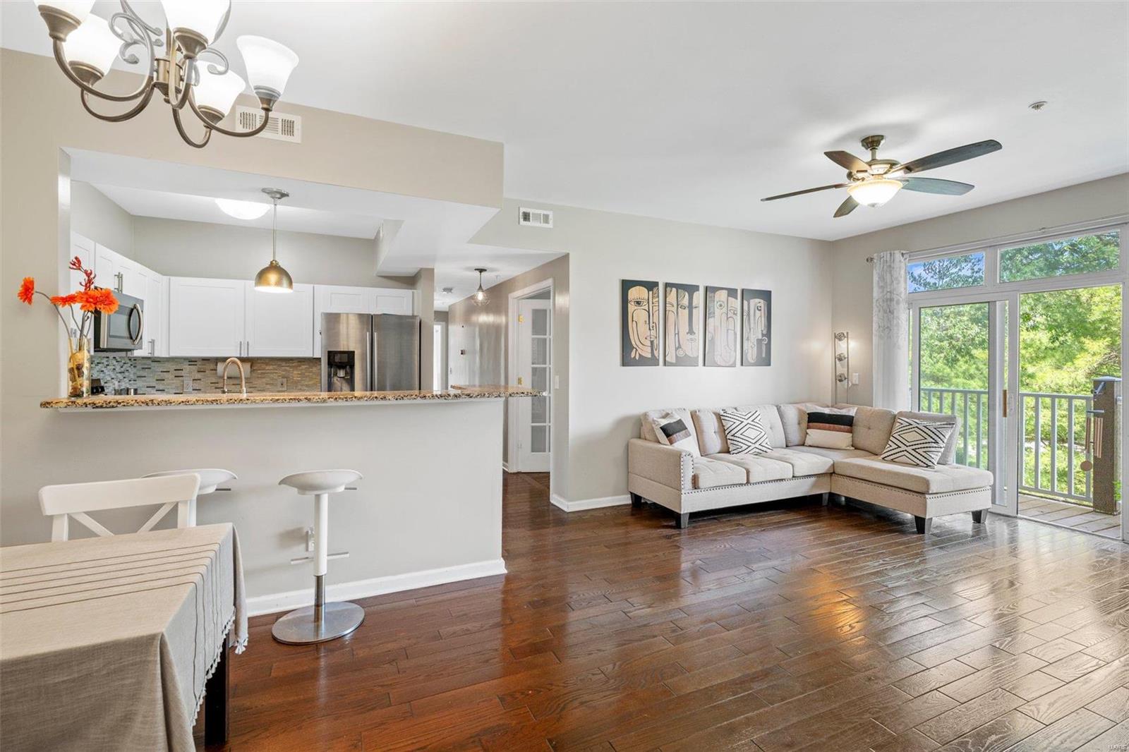A 3-bed, 2-bath condo located in the highly sought-after Mehlville School District. With close proximity to Dierbergs, Walmart, South County Mall and Costco is ideal for those who appreciate an active lifestyle. If you prefer to bike, no worries the oversized elevator has plenty of room. This home boasts a modern design with spacious interiors, featuring an updated kitchen, an open concept living/dining room as well as a beautiful deck with an extra storage area. Beautiful hardwood throughout the home. All of the windows include breathtaking views of the beautiful natural common areas from your home providing a serene and picturesque backdrop for your daily life. The primary is flawless and stunning w/a freshly updated bathroom. This is a must see located just 4 minutes from Mehlville High School. Updated with plenty of smart home features, a new roof and fully renovated in 2018 with all appliances staying and a low HOA. Has kickout Please Continue to SHOW!