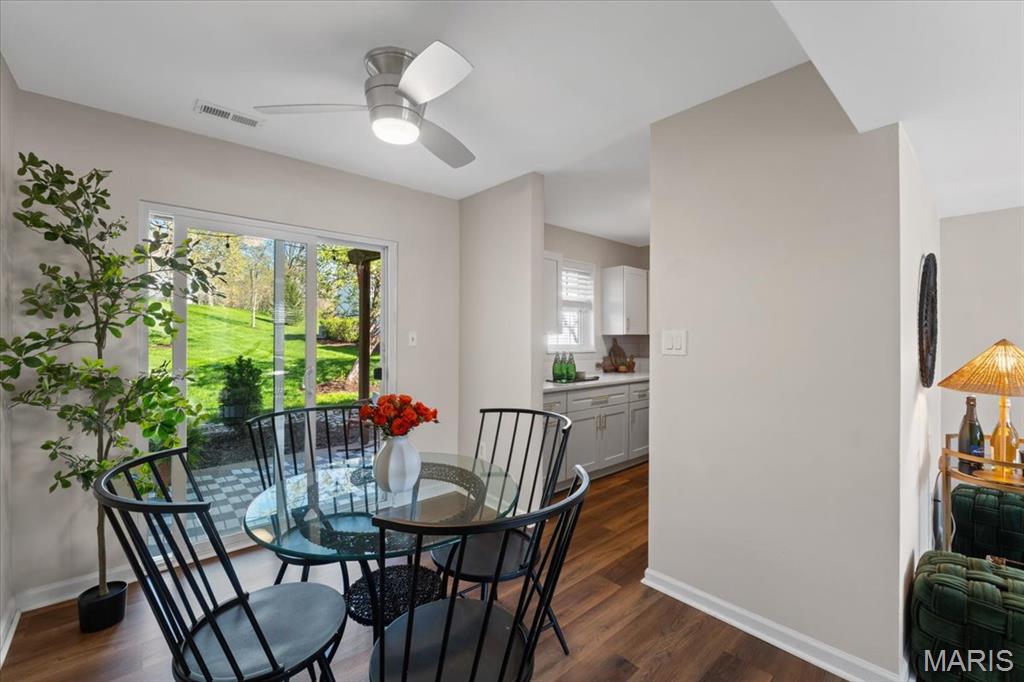 Step inside to an open, airy layout with a brand-new white kitchen (2025) boasting stainless steel appliances, updated countertops, and a beautiful view. The dining area flows seamlessly to the patio, creating the perfect indoor-outdoor connection for entertaining or relaxing.