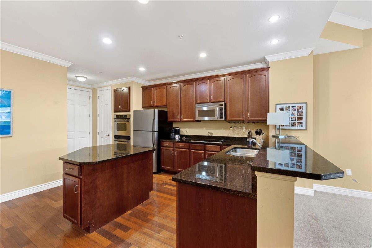 Motivated Seller. Midas to restore hotel as an upscale 216- room Marriott brand adding local Spots Bar & Grill facing the Enterprise Center and concerting on floor of hotel rooms into 50 Luxury Bonvoy by Marriott Apartments. This gorgeous 2 bed/2.5 bath condo in historic St. Louis Edison Building with sweeping views of the St. Louis Arch and downtown skyline. Your private sanctuary offers a sky-lit atrium and an open floor plan that's perfect for easy entertaining or peaceful relaxation. Upgrades galore: Brand new geothermal HVAC, granite countertops, 42” cherry cabinets, crown moldings, cherry floors, double convection ovens (plus built-in microwave), ceramic tiled baths, granite gas fireplace, custom shelving, separate garden bath/shower, walk-in closets, laundry room, French doors, surround sound and much more! Amenities: 9th floor storage, secured indoor parking, fitness center, sun deck, BBQ area.
