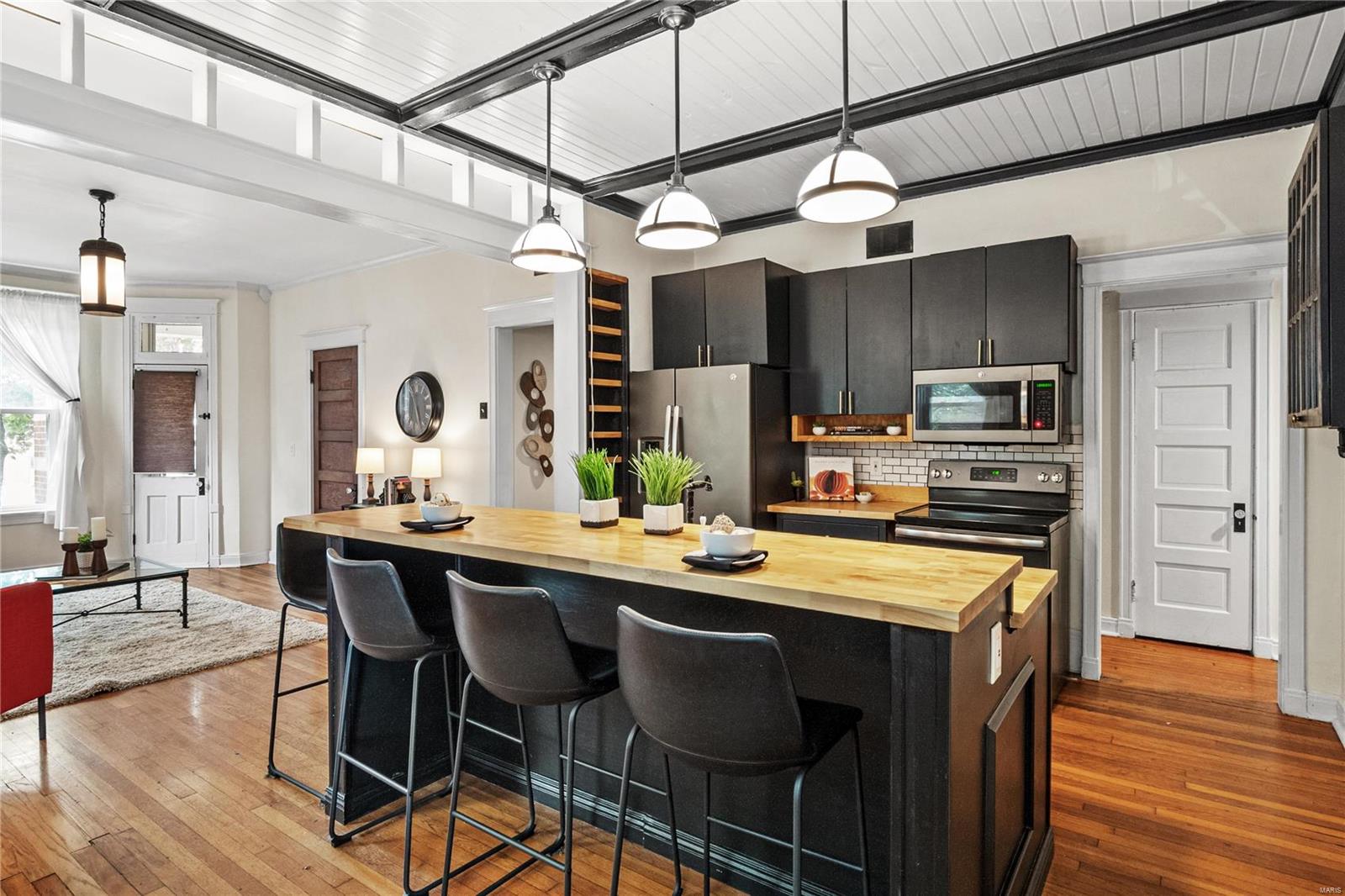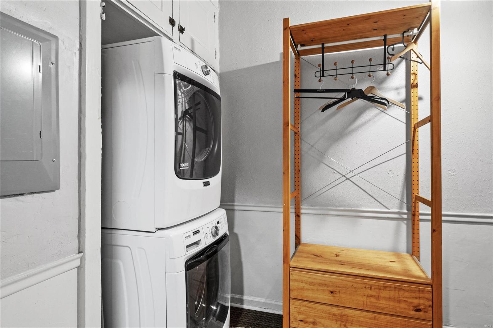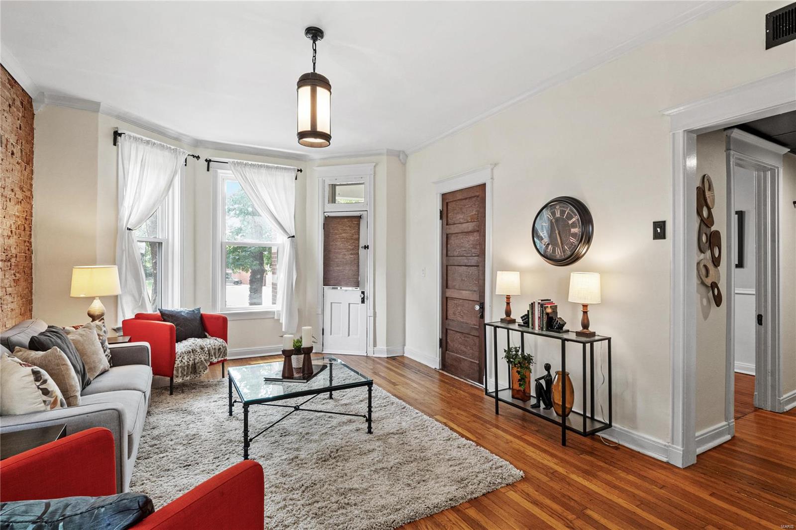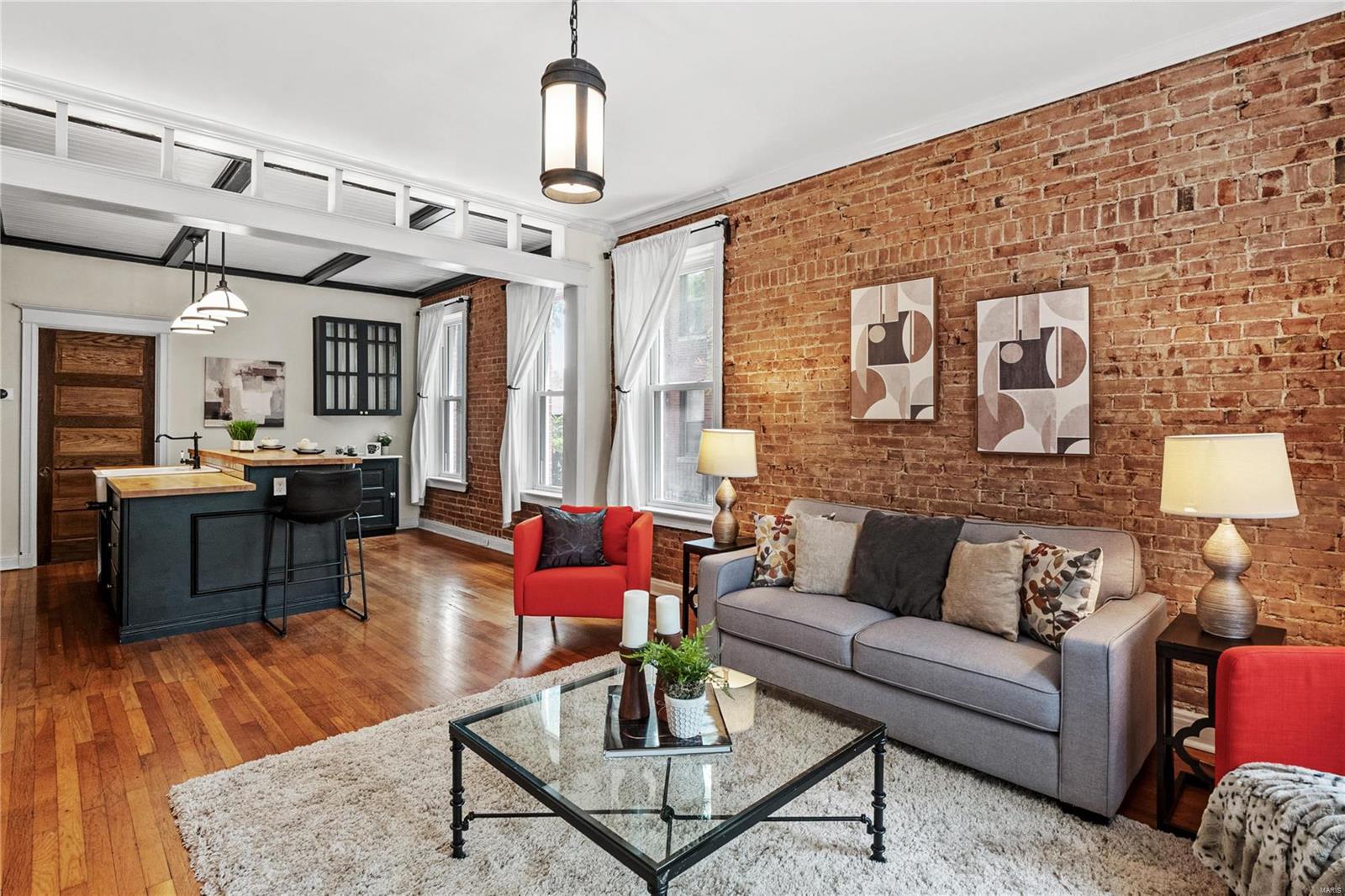 This trendy contemporary stylish condo features a large living room, separate dining, and a spacious primary bedroom. Modern and updated end unit conveniently located in this Central West end neighborhood. Enjoy the ability to walk to several nearby shops and restaurants! Boasting beautiful wood flooring throughout, with updated bathrooms that shout chic and sophistication. The kitchen is updated with sleek modern style. New electric range, counter, and desirable sink. This property also features a covered balcony and off-street parking on a first come basis. Could make a great rental!