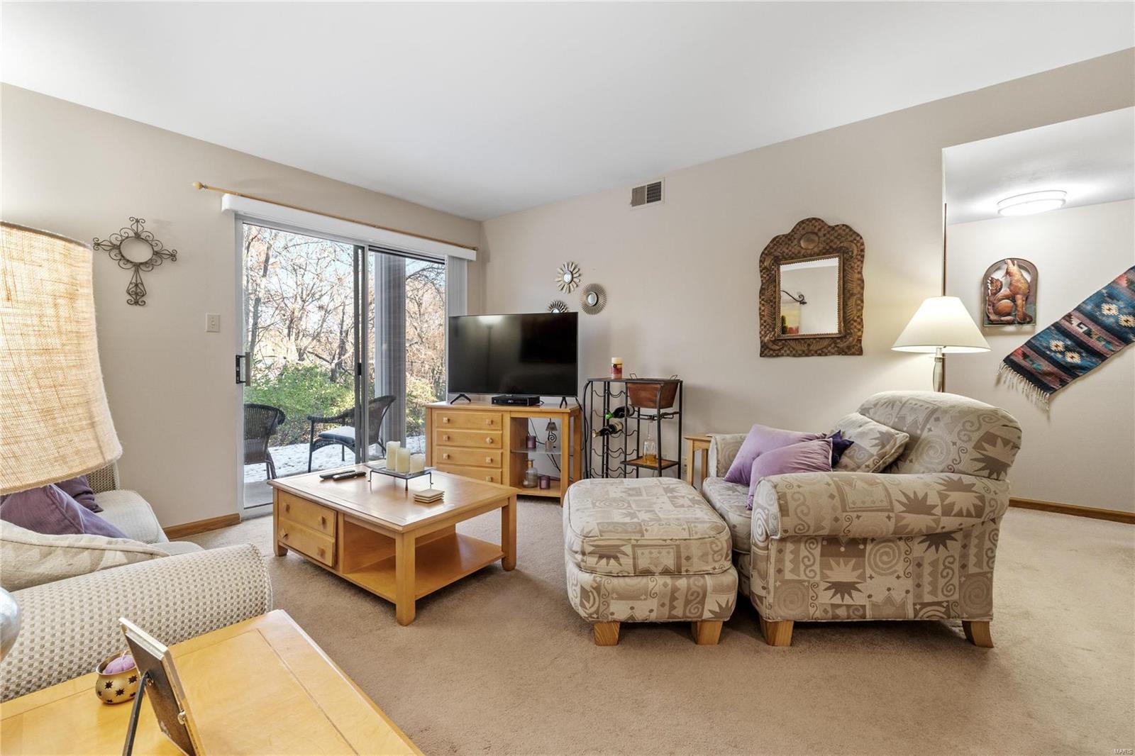 Welcome home to your ground floor, open concept condo featuring 2 bedrooms and 2 full baths. Located in a beautiful Shrewsbury and backing to Wehner Memorial Park, residents have easy access to the park via the walking trail. The eat in kitchen flows seamlessly into your spacious living room with an abundance of natural light. Through the adjoining hallway you'll find the primary suite, second bedroom, and hall bathroom with tub/shower combo. The covered patio includes an extra outdoor storage room as well. Ownership includes 1 carport space + guest parking, in-ground pool for residents, low condominium fees, and easy access to Hwy 44. Nearby shops, restaurants, and entertainment make this maintenance free condo even more attractive! Come see for yourself!