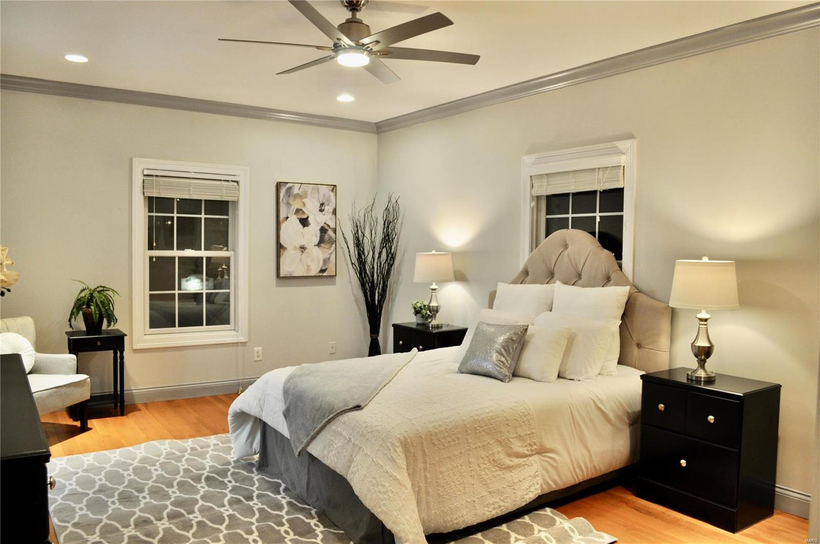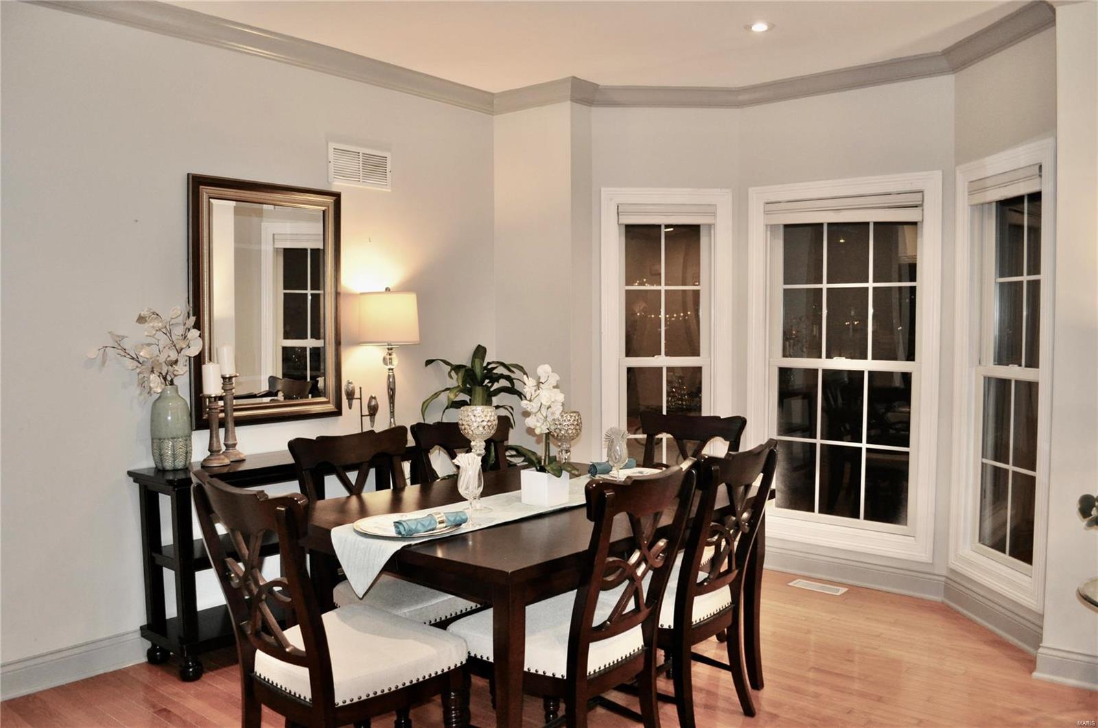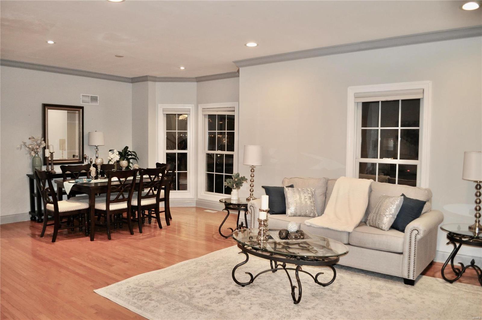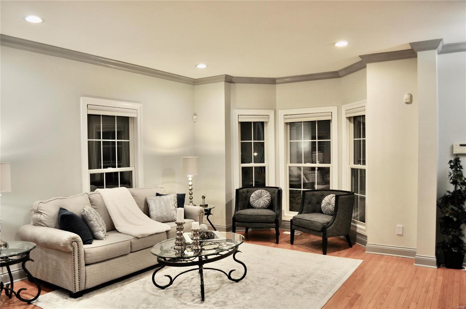 Welcome to this beautifully appointed Townhouse located in highly sought after, University City. Sparkling hardwood floors greet you as you enter this lovely condo. The living/Dining room features bay windows & beautiful white millwork. Spacious kitchen & hearth room features 42-inch white cabinets, newer gas range, upgraded stainless steel appliances, quartz counters, modern glass backsplash, a gas fireplace, moldings & sliding door allowing access to the deck. Second floor includes master suite with walk-in closet & luxury bath with adult height double sinks, updated shower & Jacuzzi tub & tile floors. The second bedroom has attached full bath & large walk-in closet. Additional space is found on the third level including a bedroom, bath & loft area. Lower level has a two car garage & plenty of storage space. Additional features include custom built walk-in closets, upper laundry unit, zoned HVAC & more. Centrally located with easy access to all St. Louis has to offer.
