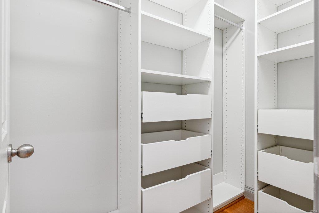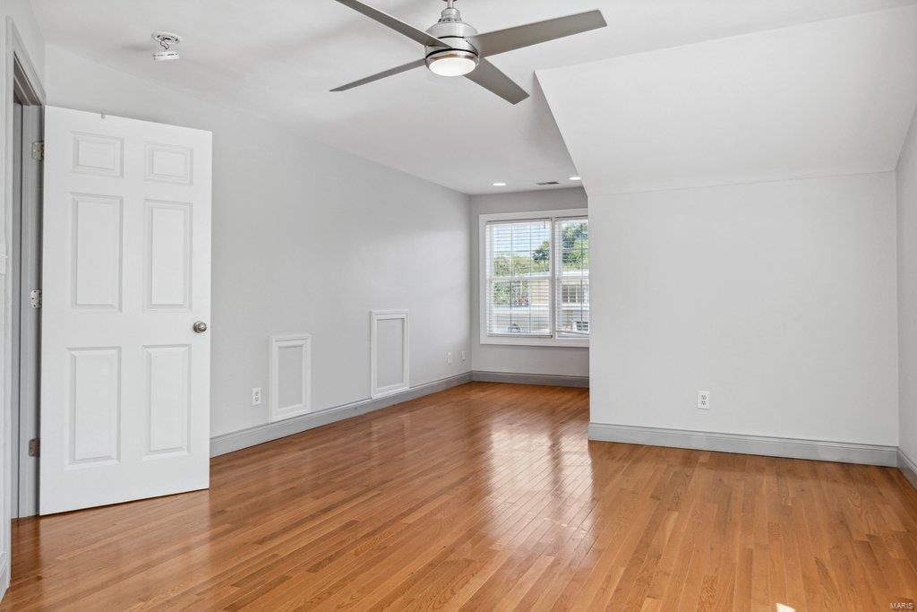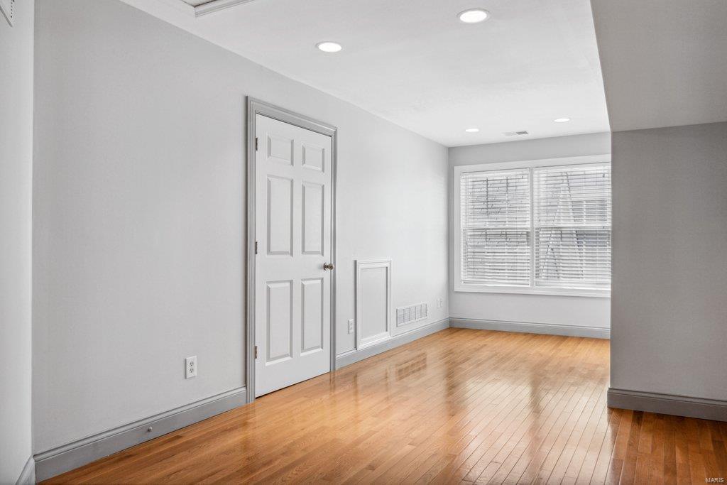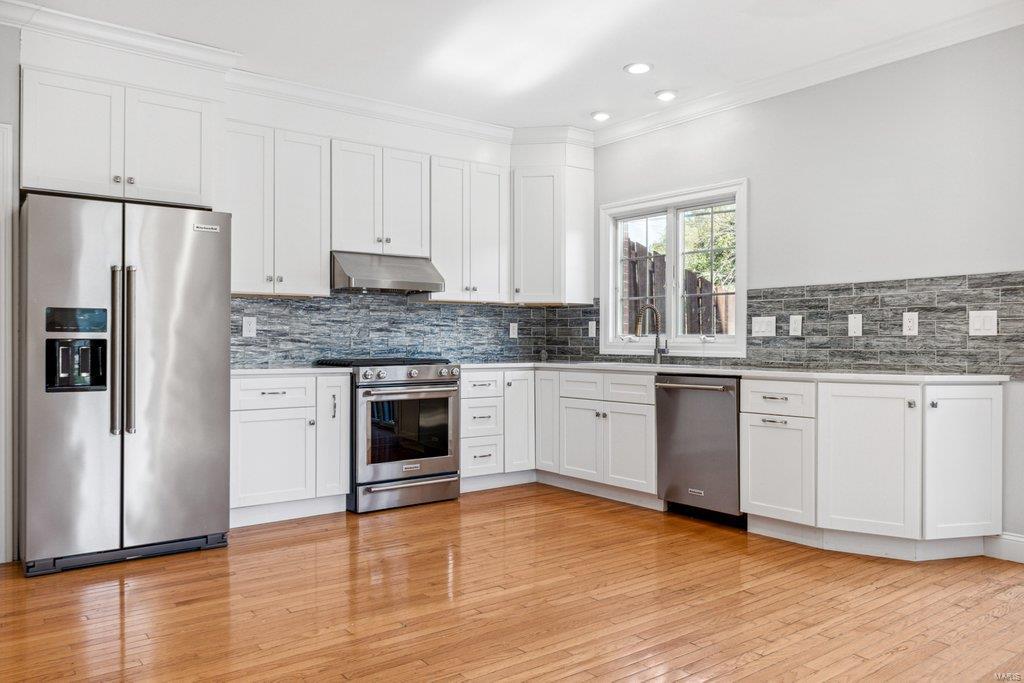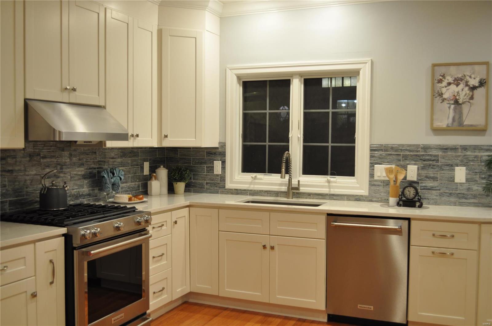 Welcome to this beautifully appointed Townhouse located in highly sought after, University City. Sparkling hardwood floors greet you as you enter this lovely condo. The living/Dining room features bay windows & beautiful white millwork. Spacious kitchen & hearth room features 42-inch white cabinets, newer gas range, upgraded stainless steel appliances, quartz counters, modern glass backsplash, a gas fireplace, moldings & sliding door allowing access to the deck. Second floor includes master suite with walk-in closet & luxury bath with adult height double sinks, updated shower & Jacuzzi tub & tile floors. The second bedroom has attached full bath & large walk-in closet. Additional space is found on the third level including a bedroom, bath & loft area. Lower level has a two car garage & plenty of storage space. Additional features include custom built walk-in closets, upper laundry unit, zoned HVAC & more. Centrally located with easy access to all St. Louis has to offer.
