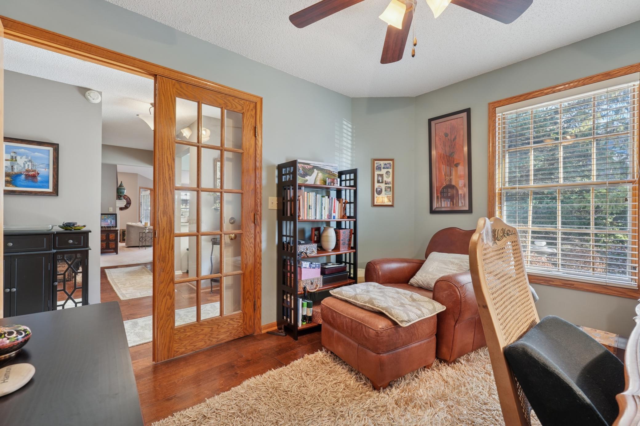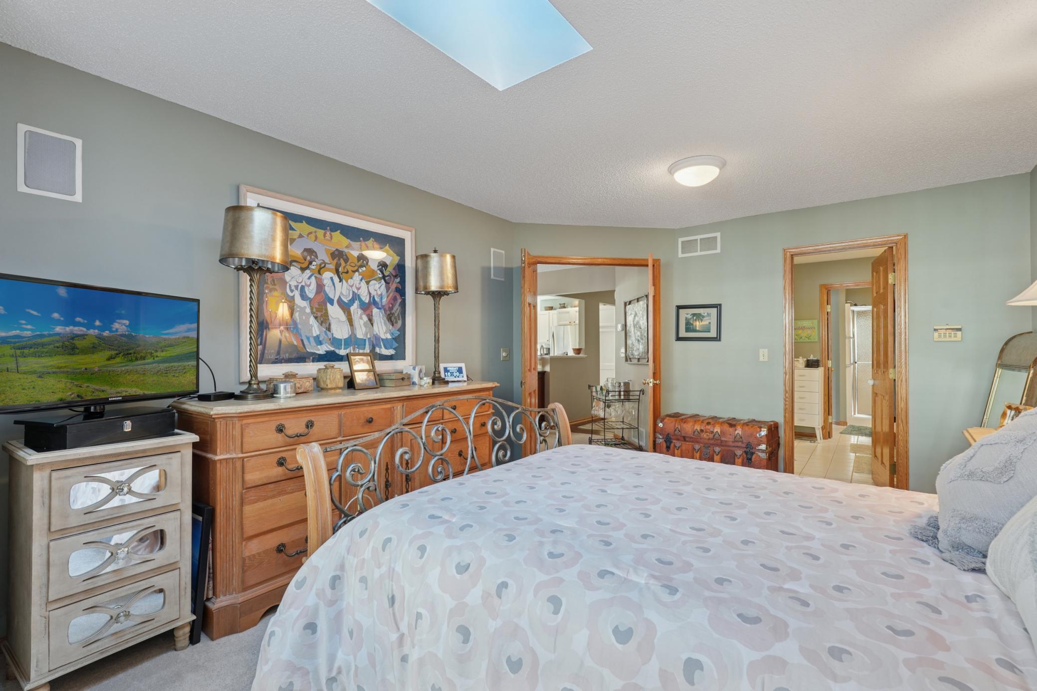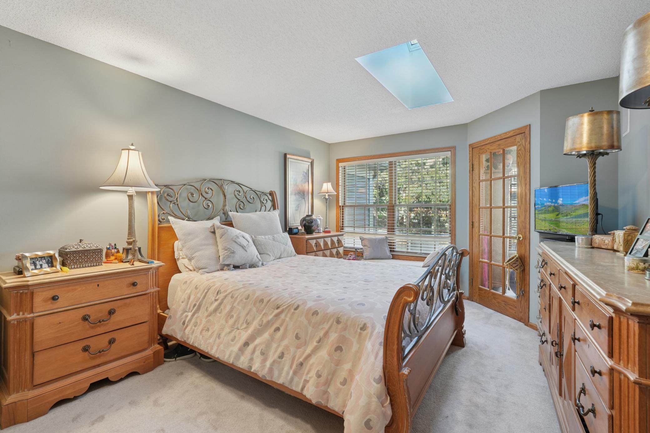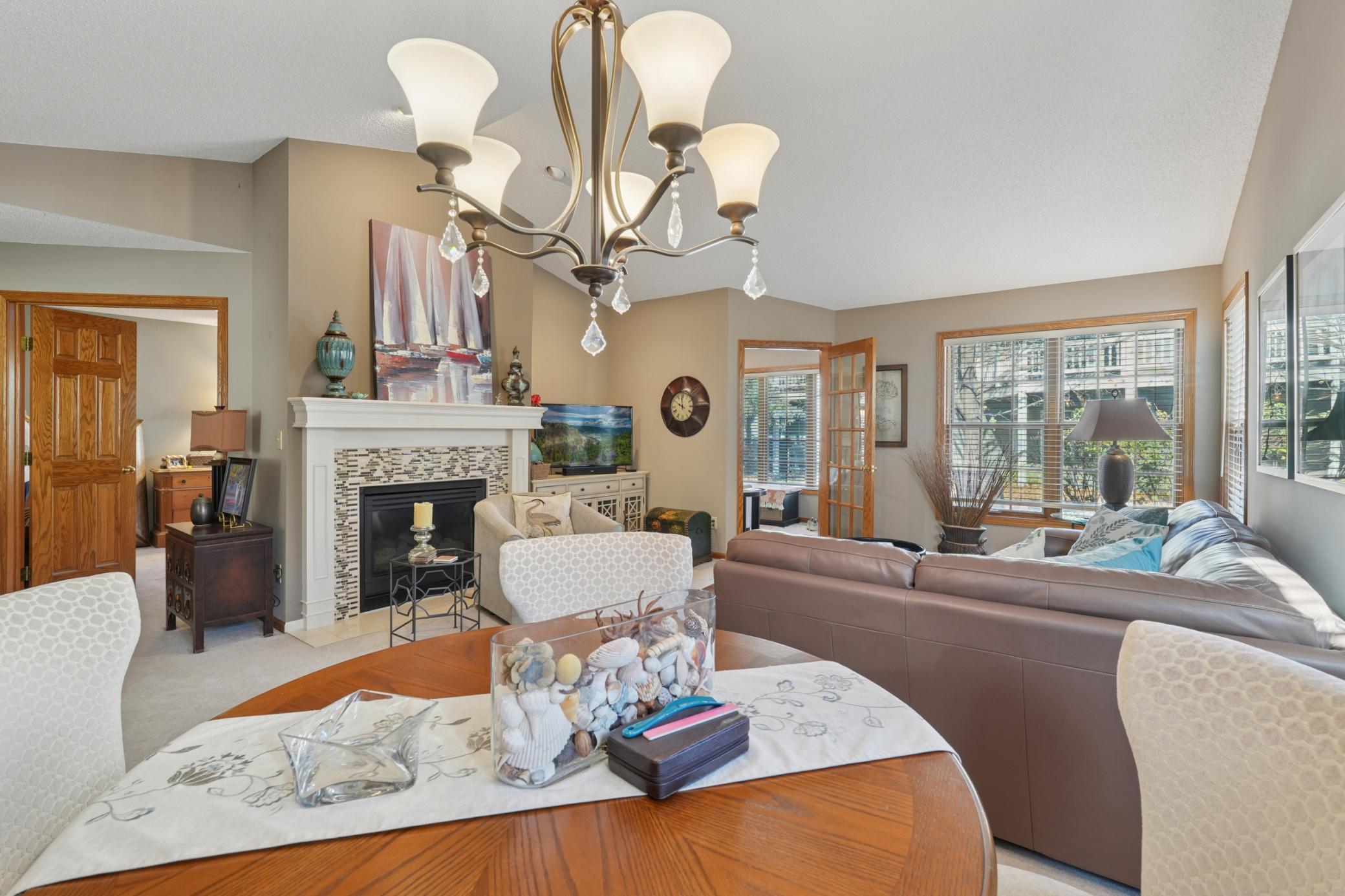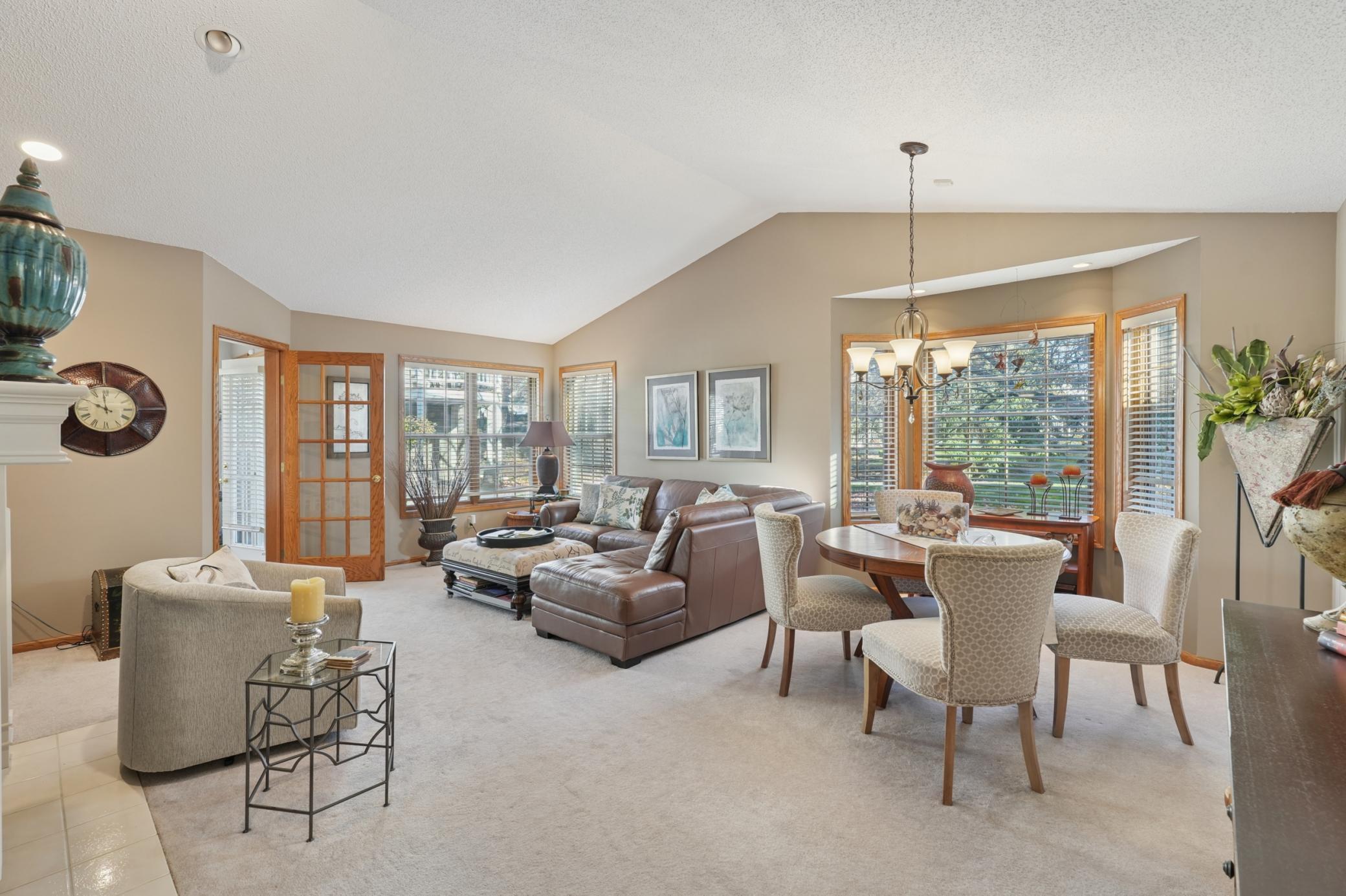 Beautifully updated one-level living in the Townhomes of Evergreen. This elegant 2-bedroom, 2-bath residence blends refined finishes with serene, tree-lined surroundings. Vaulted ceilings and an open great-room design create sophisticated entertaining spaces, complemented by an eat-in kitchen with enameled cabinetry, hardwood floors, and stainless appliances. A stunning sunroom - accessed from both the great room and the primary suite - opens to a private patio nestled among mature trees, offering a tranquil outdoor retreat. The oversized primary suite features a walk-in closet and en-suite bath. Completing the home is an oversized two-car garage with additional pull-down storage. Newer roof, gutters, and siding.